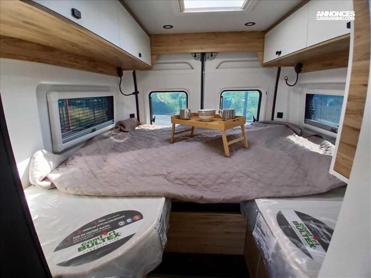 AUTORADIO 6.7" DAB, BAIE 280X380, BAIE SUR LES PORTES AR, BATTERIE SUPPL., CAILLEBOTIS DANS LA DOUCHE, CAMERA DE RECUL, CHAUFFAGE TRUMA COMBI DIESEL, CLIMATISATION, COUCHAGE DANS SALON AVANT, DOUCHE EXTERIEURE, ESP TRACTION SYSTEM, FEUX DIURNES + ANTIBROUILLARD, FREIN DE PARKING ELECTRIQUE, FRIGO BAS 140L, INVERSEUR GAZ CHAUFF. ROULANT, JANTES ALLIAGE 16" NOIRE, MOUSTIQUAIRE, NICHE DEGAGEE, NORME EURO. EMISSION EUROD 6D.4, OCCULTATION CABINE COULISSANTE, PANNEAU SOLAIRE 120W, PEINTURE PARE CHOC, PRE DISPOSITION CHAUFFAUGE ADDITIONNEL, REGULATEUR DE VITESSE, RESERVOIR EAUX USEES ISOLE ET CHAUFFE, RESERVOIR GAZOLE 90L, RETROVISEURS RABATTABLES, SKYDOME, STORE BANNE, SUPER PACK FOURGON, SUR TAPIS, VEHICULE NEUF D EXPOSITION