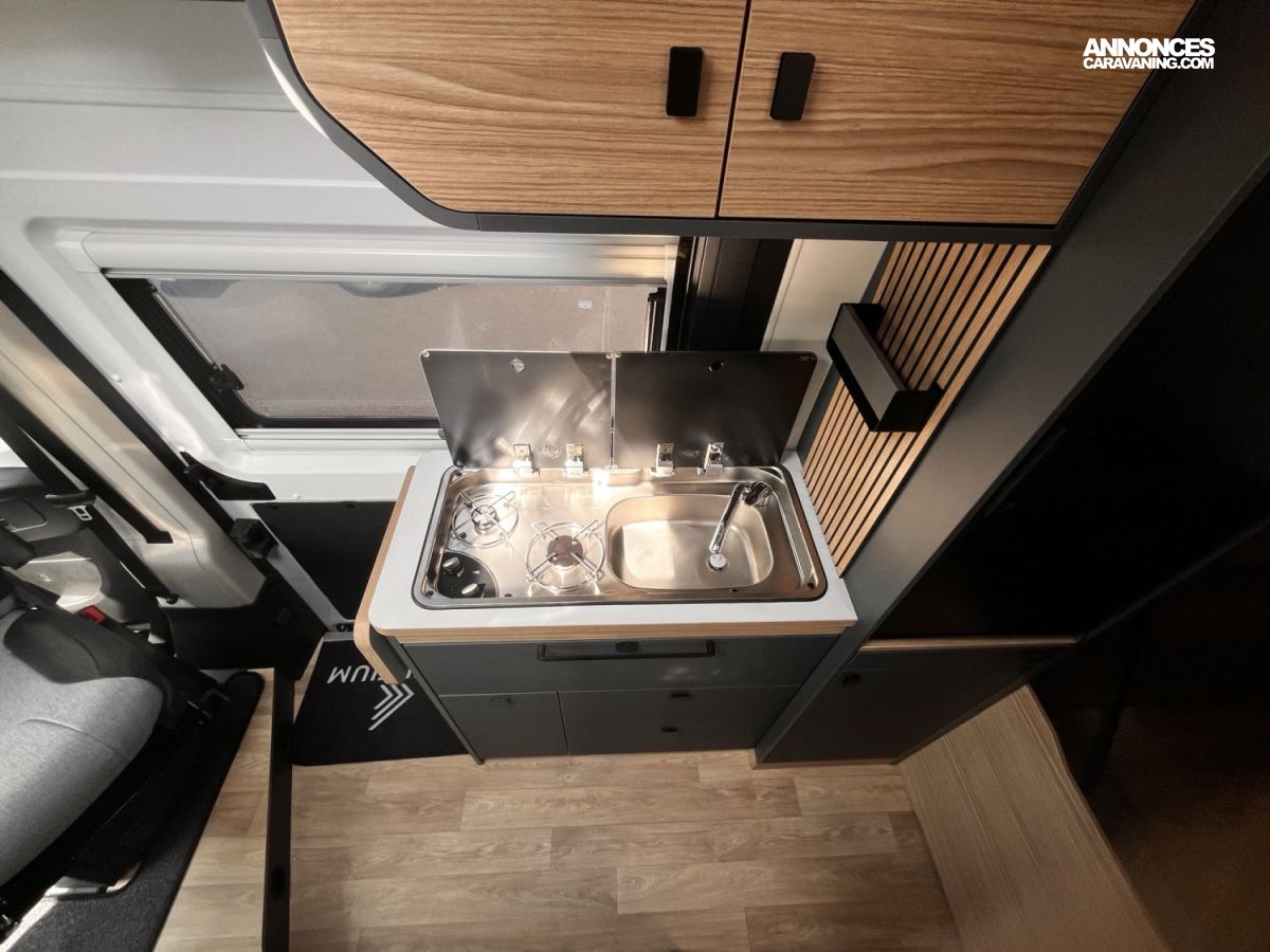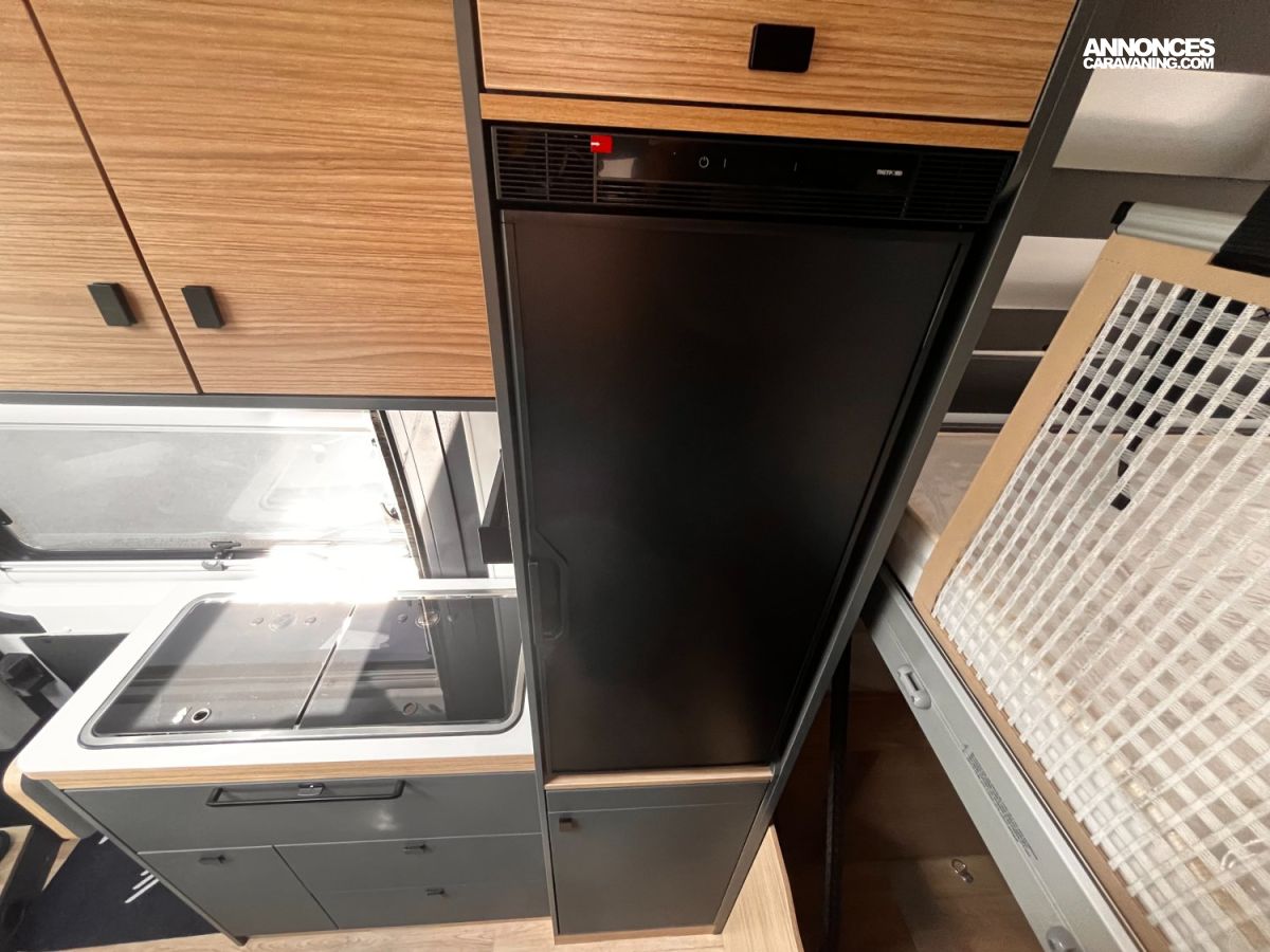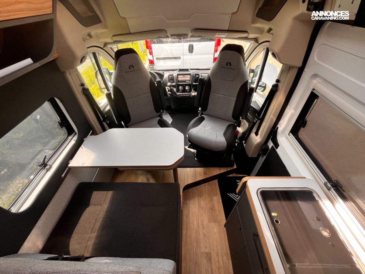 Compact et modulable, le Bavaria K?633?M – modèle 2024 (6,36?m) sur châssis Fiat Ducato 2,2?L 140?ch combine lit de pavillon électrique personnel, un vaste salon lumineux pour 4 et une cuisine astucieuse. Salle d’eau 3-en-1 ergonomique et grande soute. Ideal pour voyager librement avec confort.