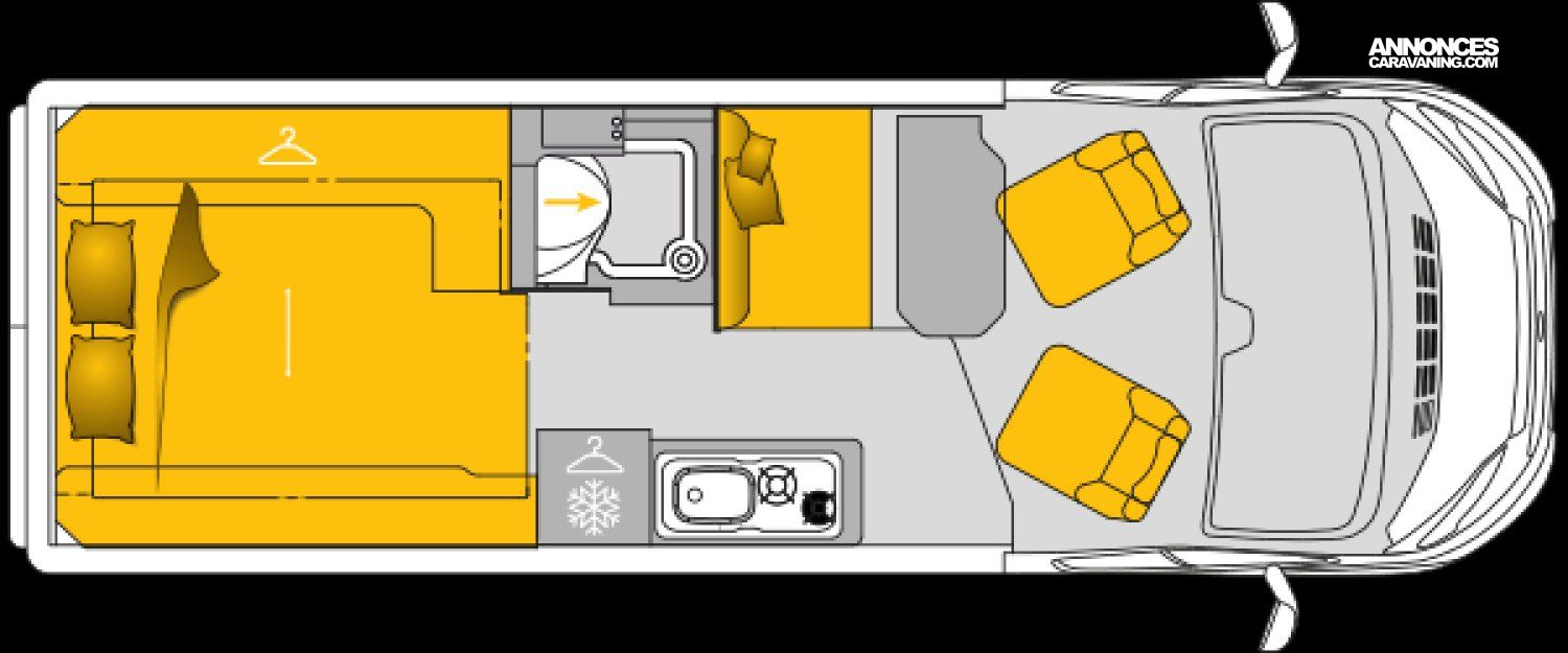 Housse de siège en tissus, Mobilier Annecy, Abs, Douchette eau froide/chaude dans soute arrière, Moquette dans la cabine, Sellerie silver, Système Isofix