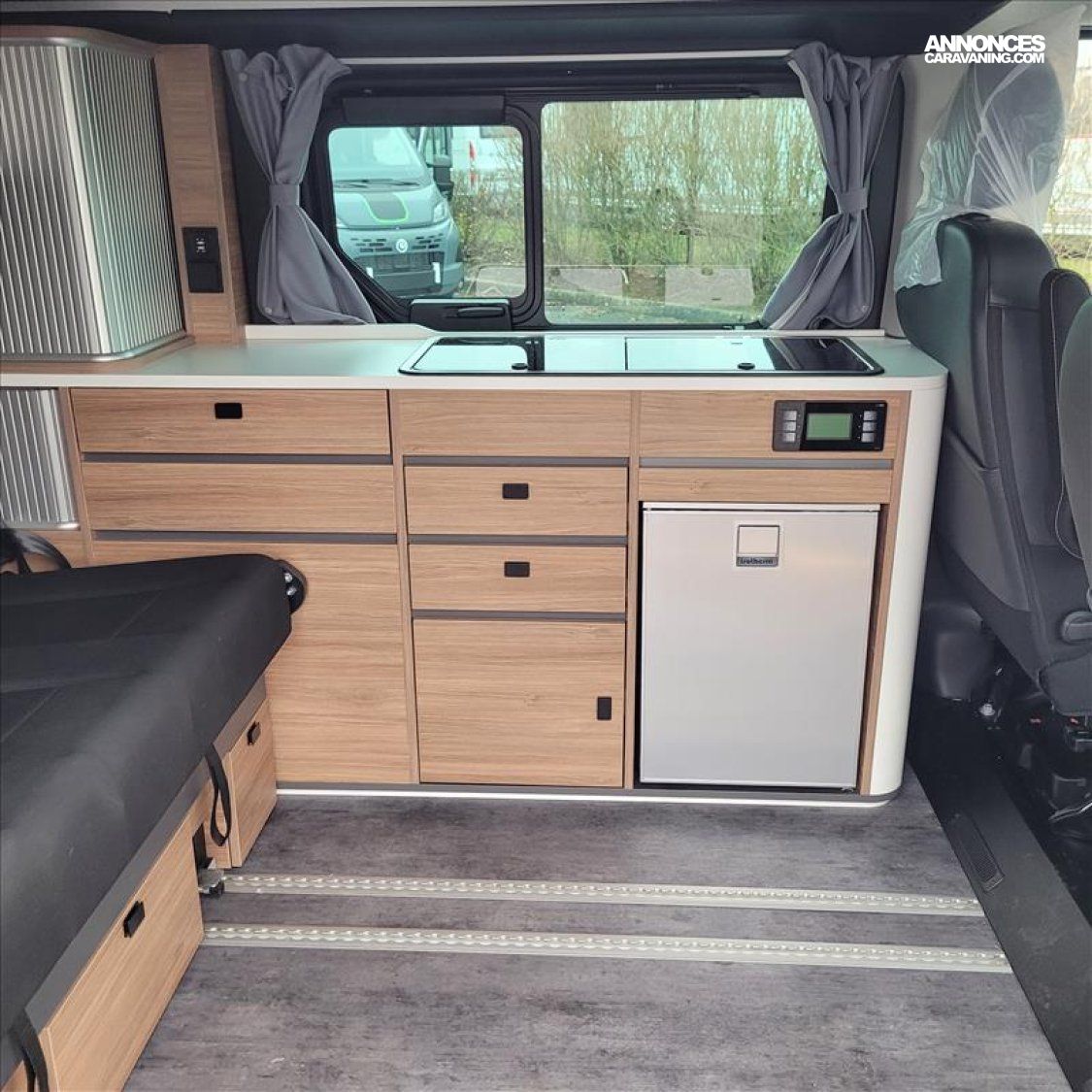 Feux AV FULL LED, Douchette extérieure, ESP Contrôle dynamique de trajectoire, Hayon AR vitré dégivrant, Prise 12V et USB, Rideaux occultants, Sièges de cabine avec accoudoir et pivotants, réglables en h, ABS - antiblocage des roues au freinage, Vitrage surteinté latéral + arrière, Jantes tôle 16", Lève vitres électrique, Banquette avec système ISOFIX, Airbags conducteur et passager, Baies latérales gauche et droite vitrés ouvrantes