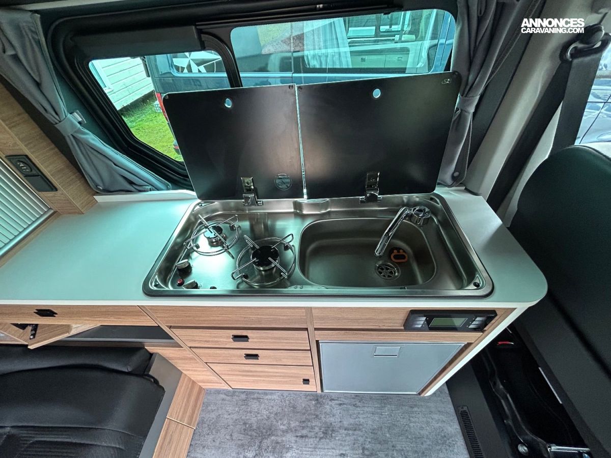Vous profiterez de son chauffage stationnaire au gasoil , de son store extérieur d'un plan de cuisson, un réfrigérateur à compression 36 l et de nombreux et astucieux rangements.