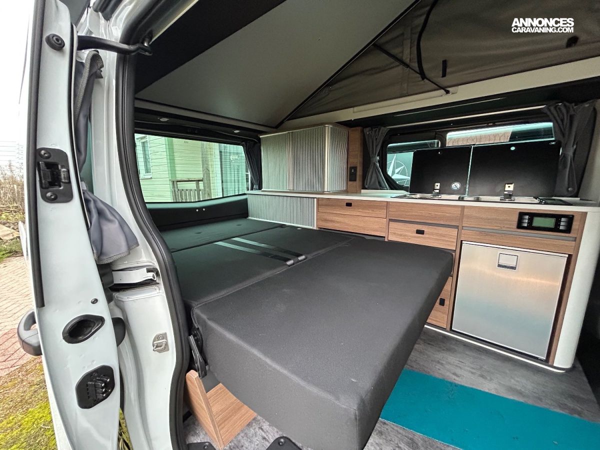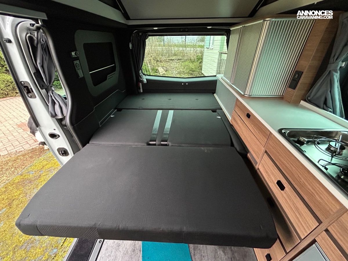 Vous disposerez d'un vrai van en 4 places routes et 4 places couchage , en effet 1 lit double dans le toit relevable et 1 lit double bas en transformation de la banquette .