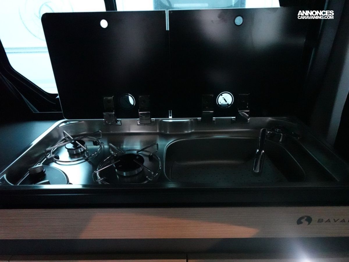 Réchaud 2 feux + évier avec couvercle en verre