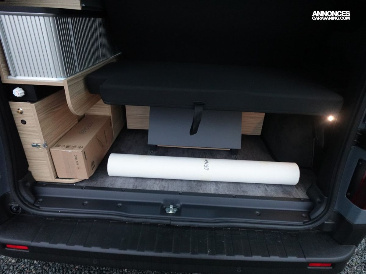Grands tiroirs de rangement sous la banquette arrière
