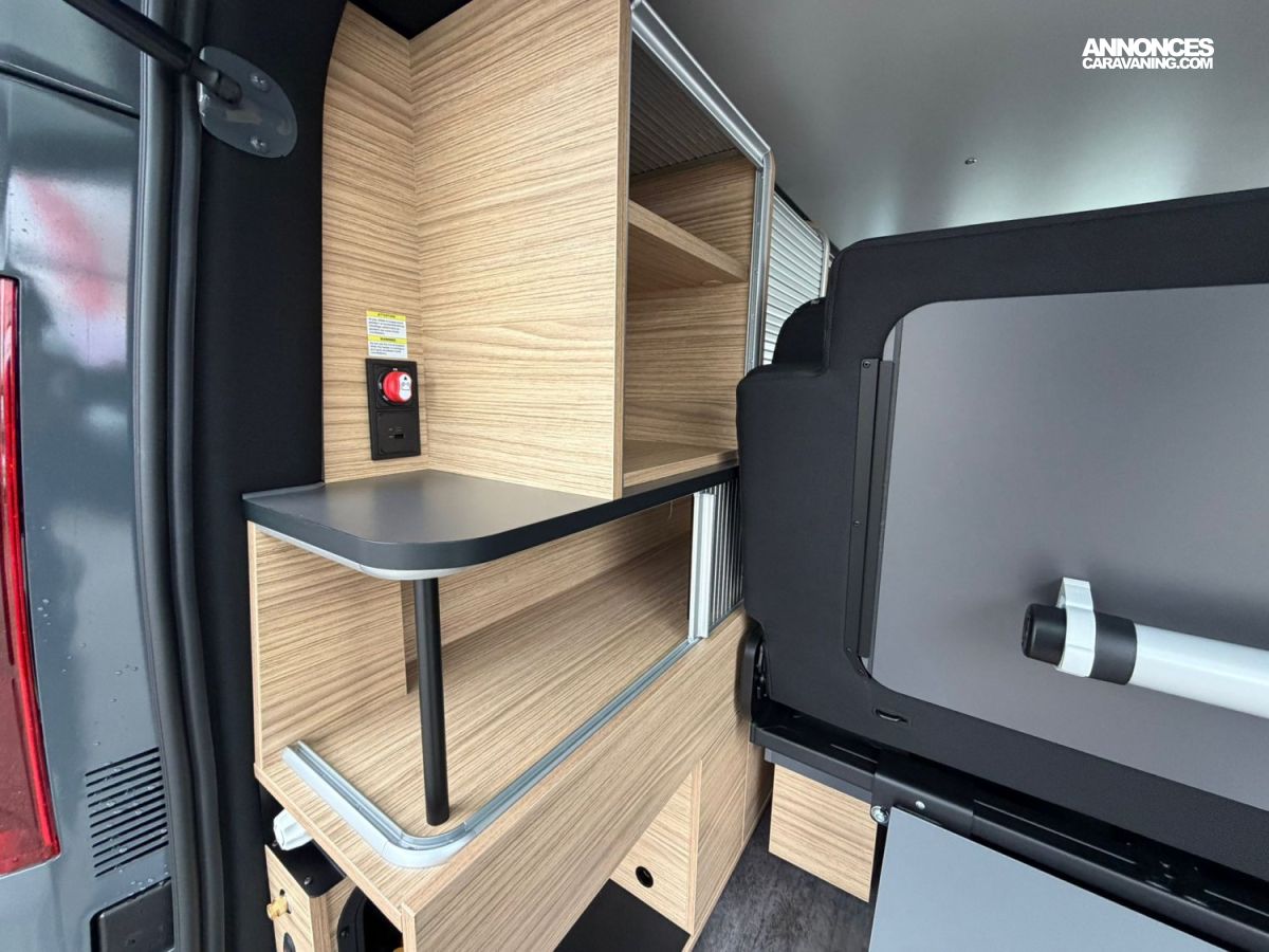 BOITE AUTOMATIQUE - EDC 9 RAPPORTS, PEINTURE CARROSSERIE GRIS URBAIN, ABS - ESP, GRAND TOIT RELEVABLE, CHAUFFAGE GASOIL 2000 W AVEC KIT ALTITUDE, RADAR DE RECUL, CAMERA DE RECUL, BATTERIE AGM, 2 PANNEAU SOLAIRE 100 W, HILL START ASSIST, ISOLATION EN FIBRE DE POLYESTER, BANQUETTE ISOFIX, REFRIGERATEUR COMPRESSION 51 L