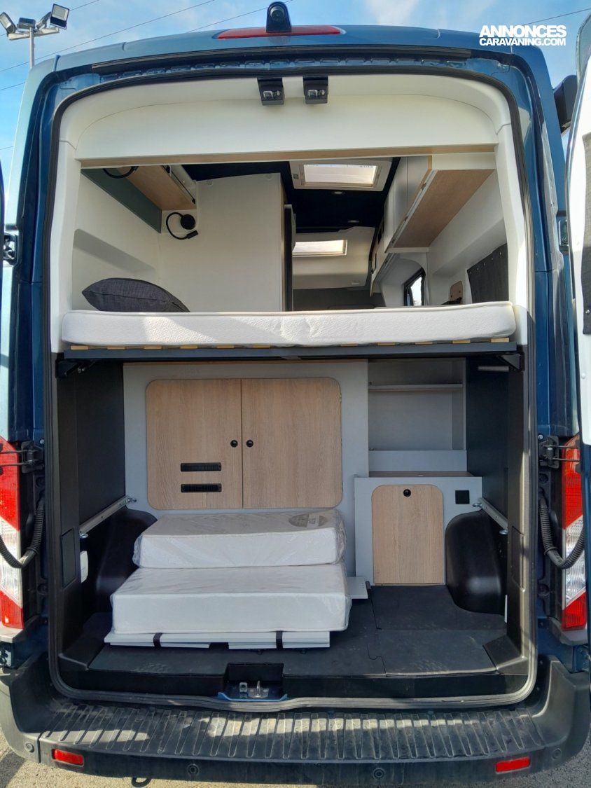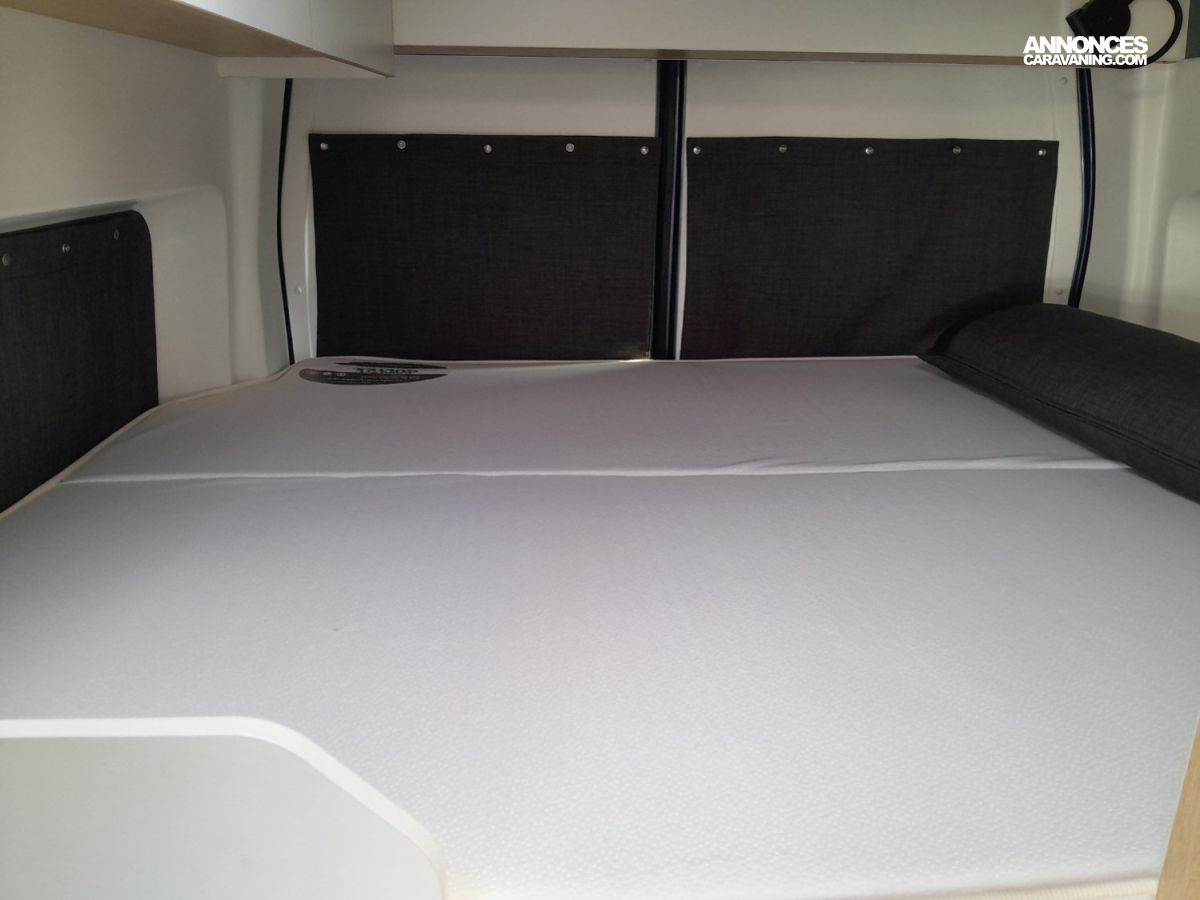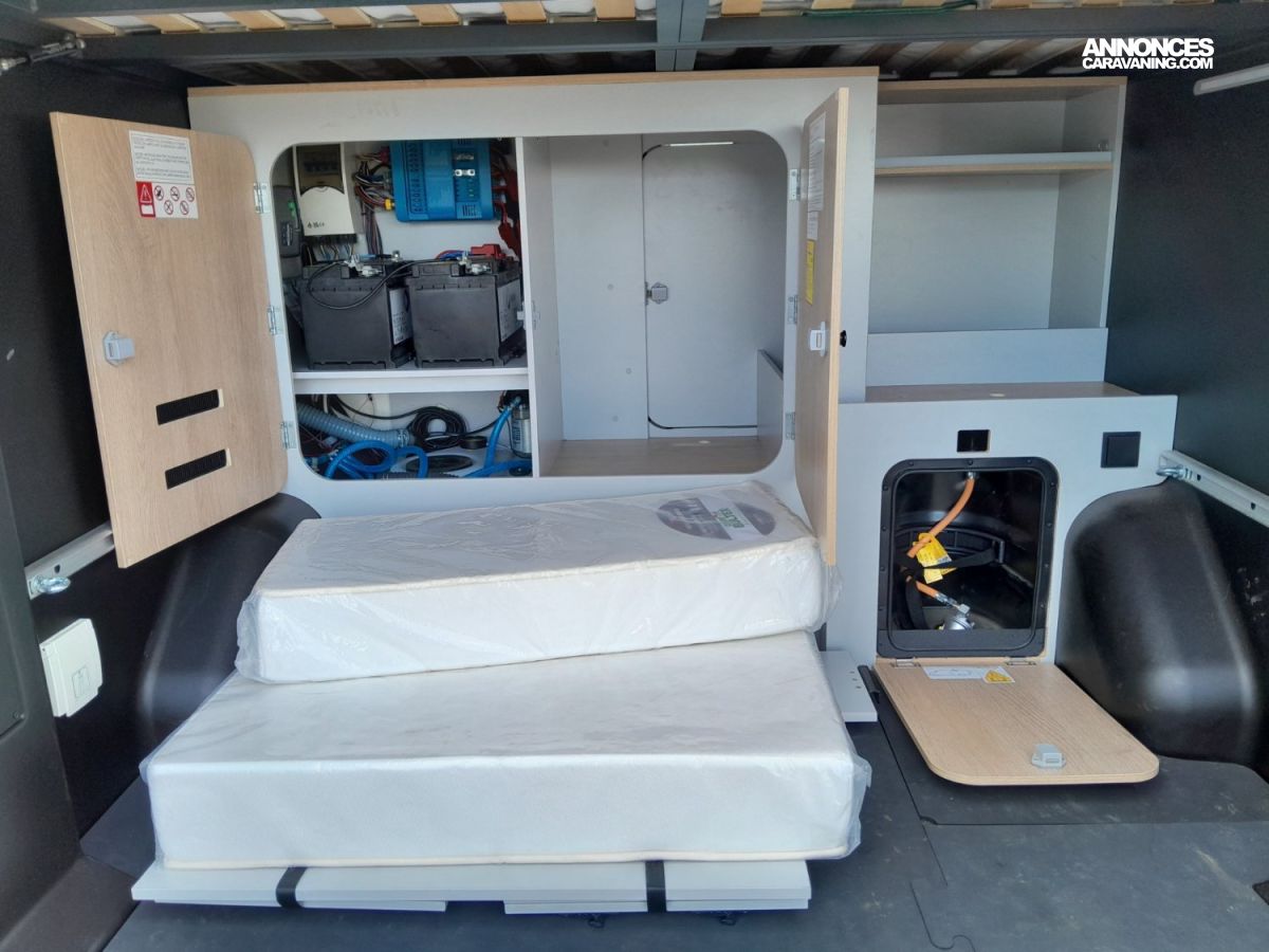 grande soute avec rails d'ancrage, caméra de recul, store, 2 batterie cellule, commande au volant, double DIN PIONEER avec android auto, occultants et moustiquaires.