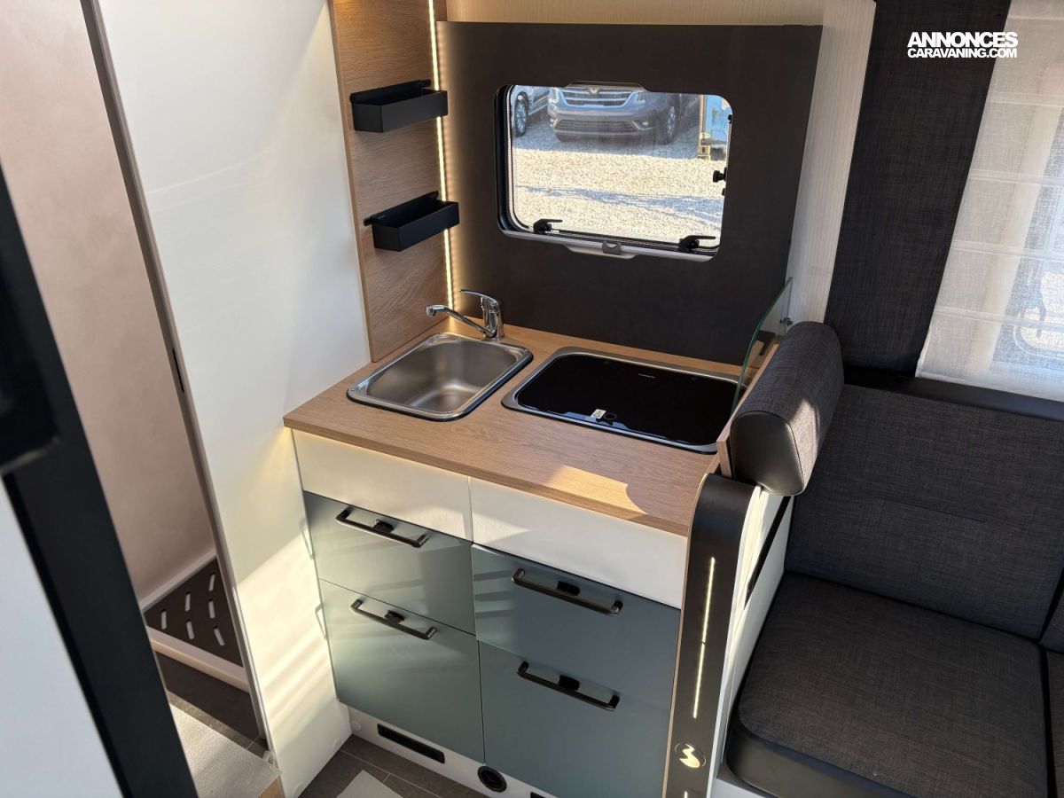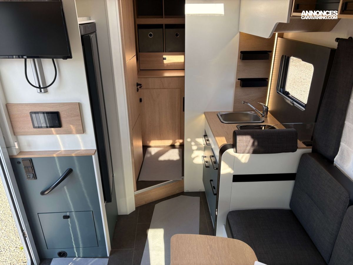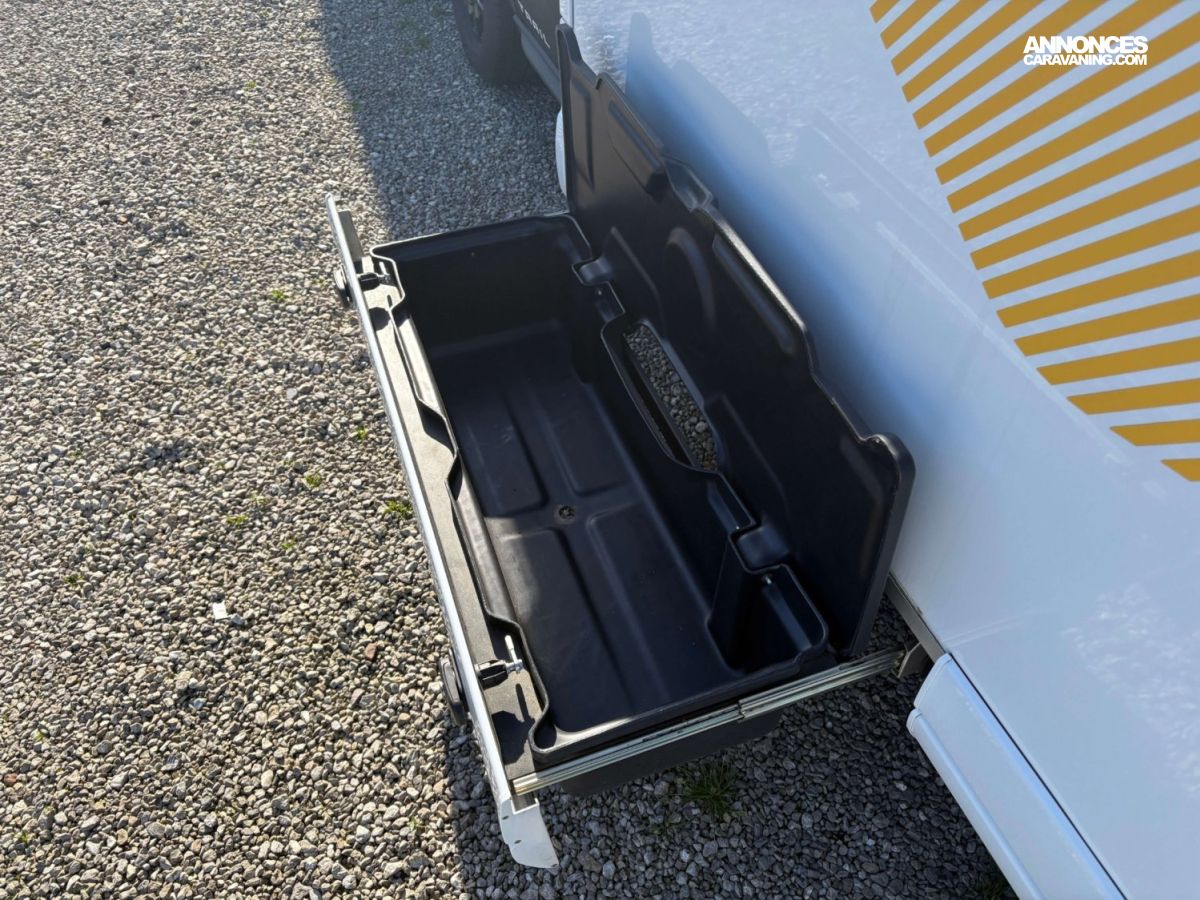 Safety Pack, Chauffage Truma 4, Réfrigérateur Trimix 133 L, Store, Tiroir bas de caisse, Réservoir eaux usées hors gel, Caillebotis, Chauffage : Truma 4000, Douchette extérieure, 2x panneaux solaires 100W HP, Cabine gris magnétic, Convertisseur, Occultations coulissantes, Pack déco Trail, Pneus 4-saisons + TPMS + frein elec, Radio Pioneer 9’’ + caméra recul