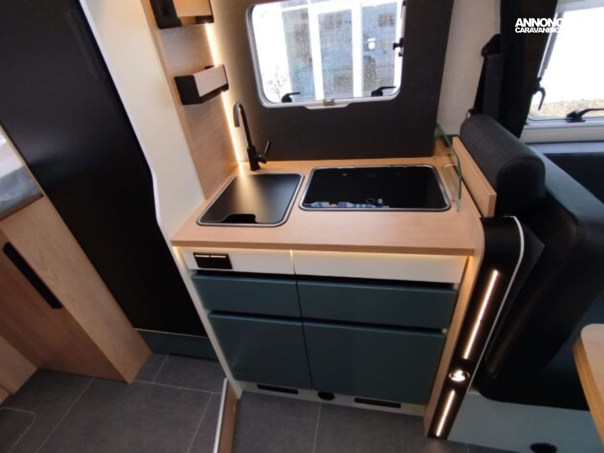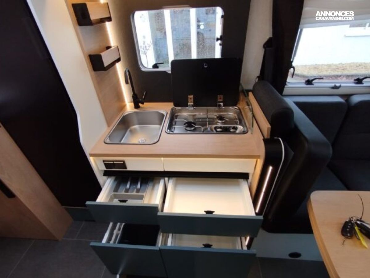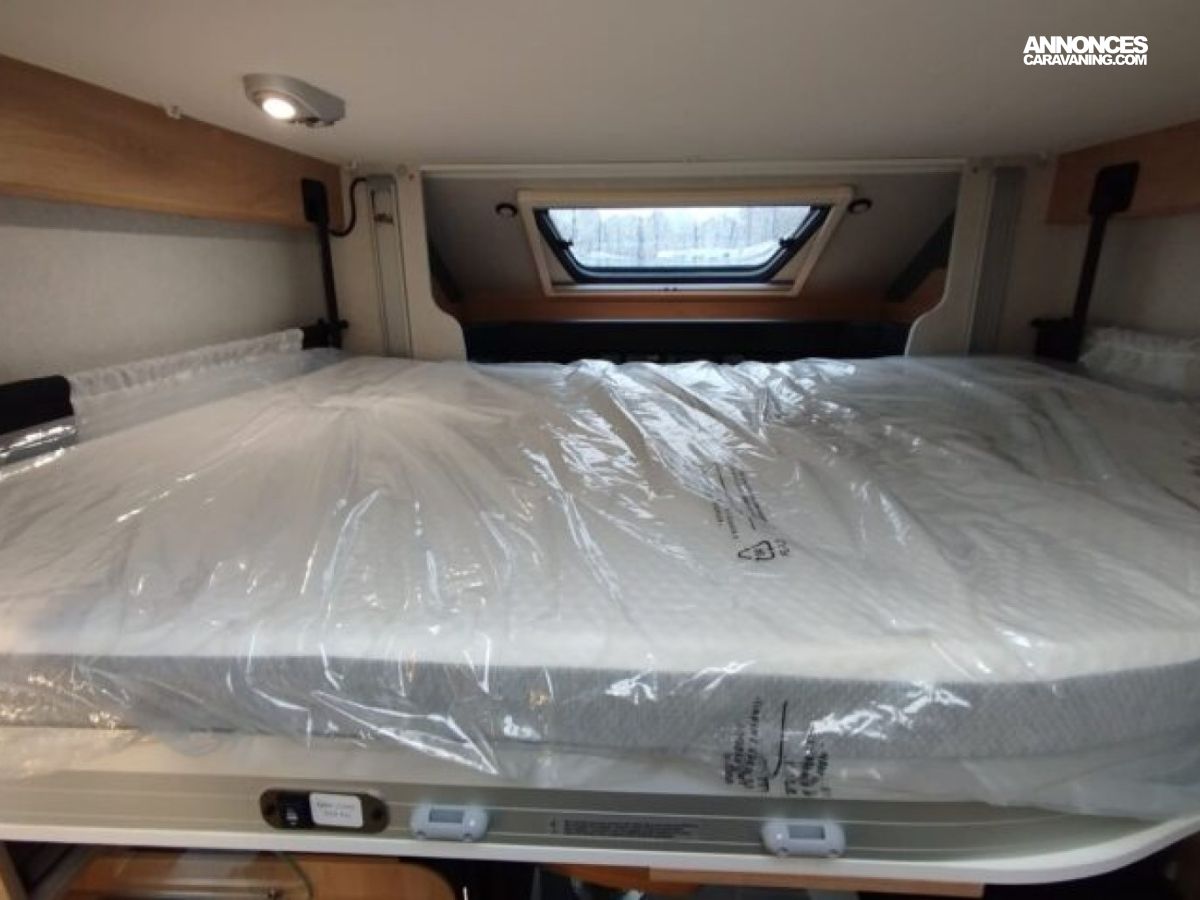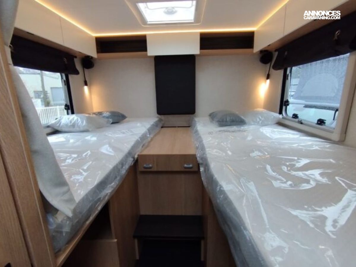 Soit : éclairage, prise 230V et rails en soute, douchette, store banne, caillebotis, inverseur automatique, crash sensor, réservoir eaux usées hors-gel, poubelle intégrée et porte-serviette