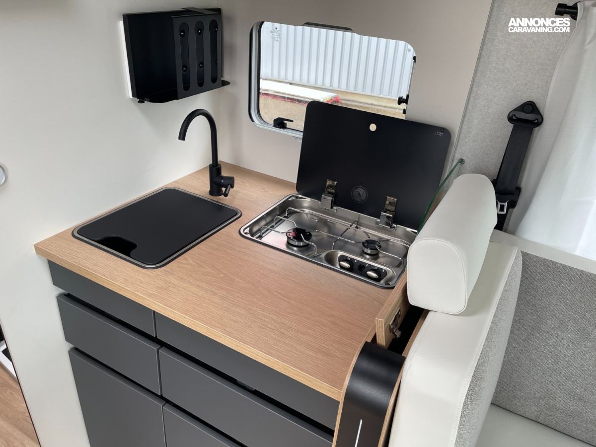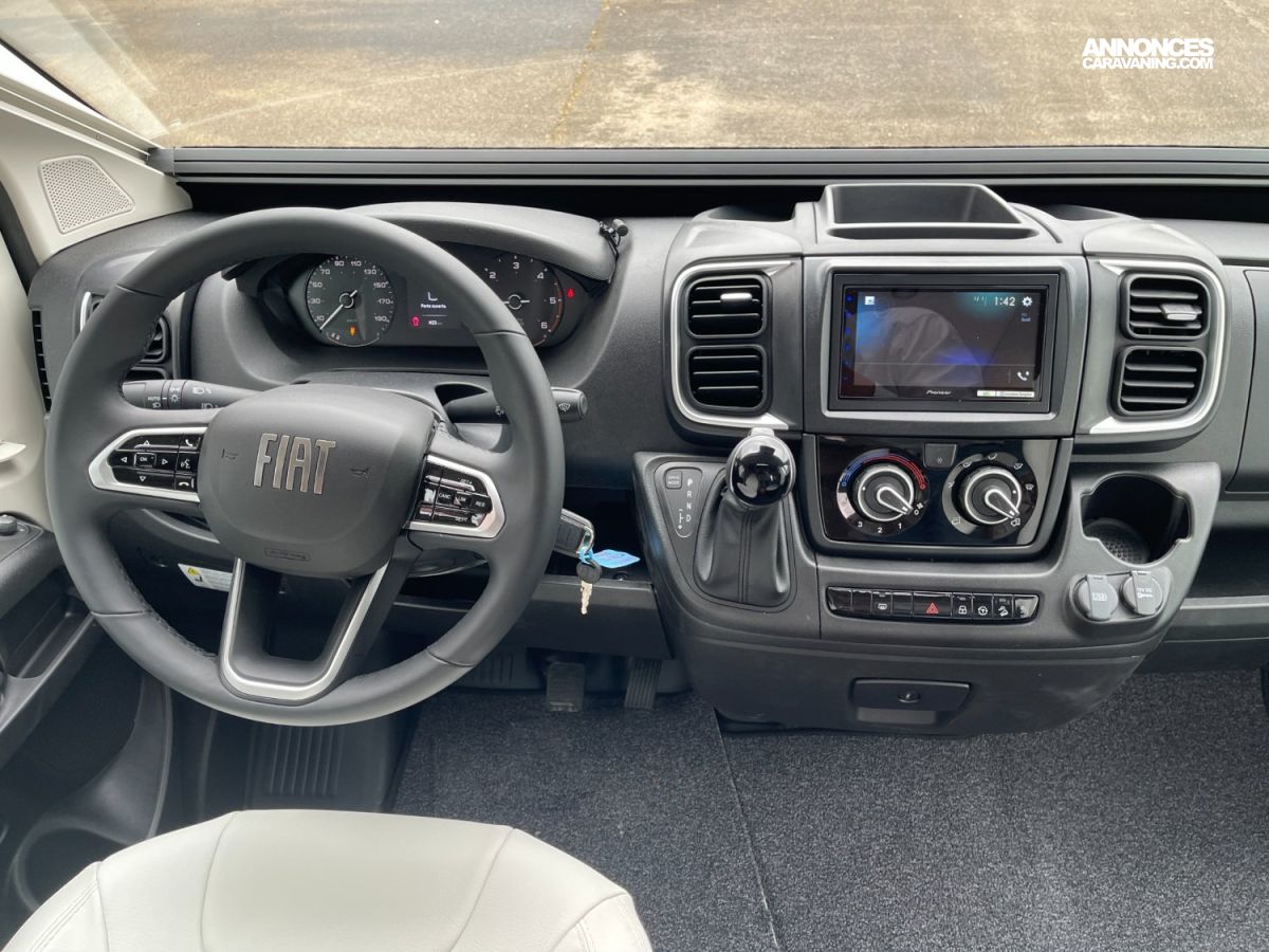 DAB, Android Auto/Apple Carplay, 2 panneaux solaires 100W monocristallin PERC Hte performance, Truma Combi D E / boitier 6000W, Convertisseur 12V/230V pur sinus 1500W, Booster pour charge batterie rapide 40A, Table centrale repliable, Réfrigérateur à compression, Caillebotis et porte serviette repliable, Réservoir gazole 90L, Éclairage, rails et prise 230V en soute, Caméra de recul, Haut-parleurs en cabine et en cellule, Fermeture centralisée, Douchette eau chaude / eau froide en soute, Autoradio Pioneer 7, 1 batterie lithium200Ah, Store banne noir avec LED intégrée, Capteur d epression des pneus, Frein de parking électrique, Allumage automatique des feux, Volant en cuir, Aérateurs gris alu, Tiroir bas de caisse, Réservoir d'eaux usées hors gel, Jantes alliage 16"
