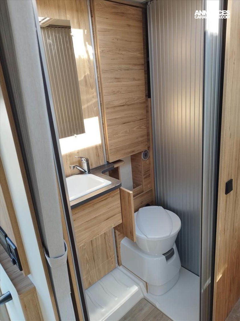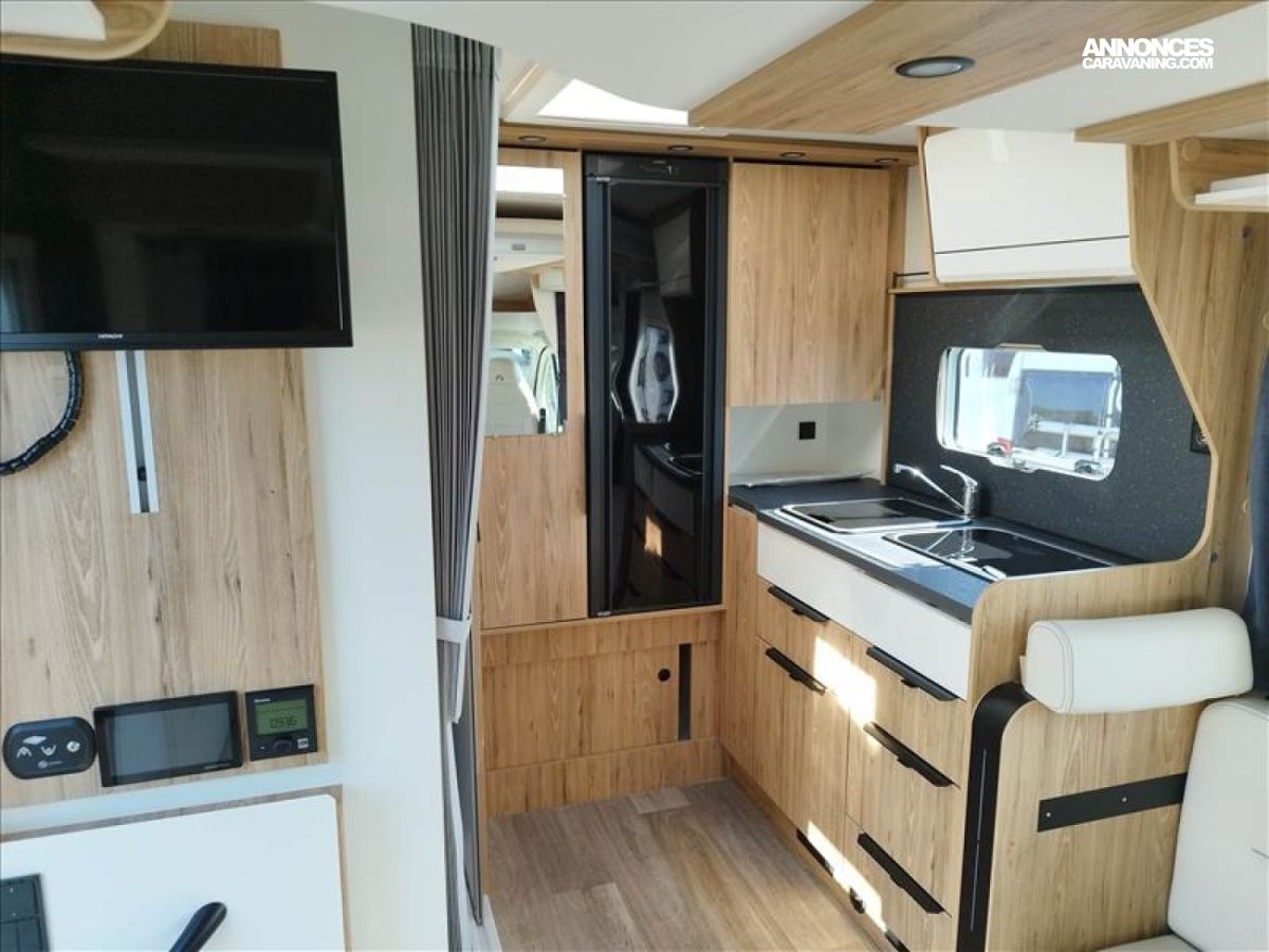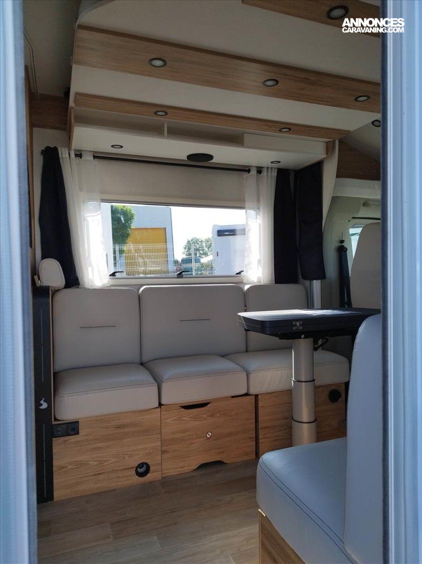Commandes radio au volant, Marchepied électrique, Booster pour charge batterie rapide., ABS, ASR, ESP, Traction+, Autoradio Pioneer 2Din 9”, Simple détendeur - Crash Sensor TRUMA, Panneau solaire 100 W, Tableau de bord alu, Volant et pommeau en cuir, Moquette cabine, Occultations plissées, Prises 230 V, 12 V et double USB, Réservoir Diesel 90 L, Batterie cellule 95 Ah AGM, Porte cellule vitrée