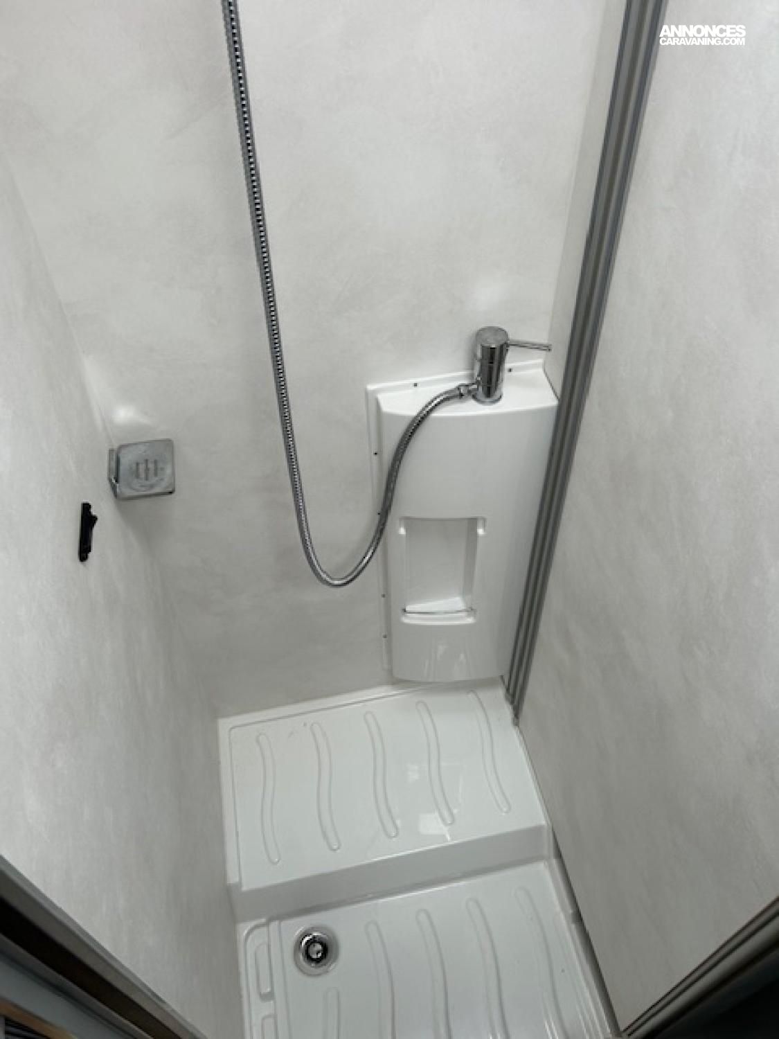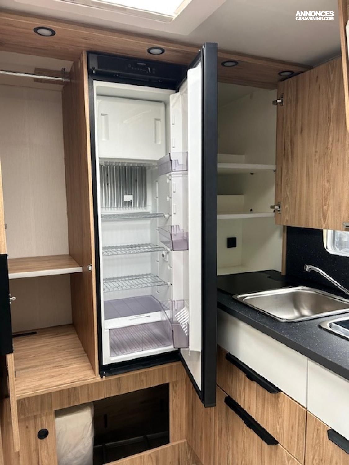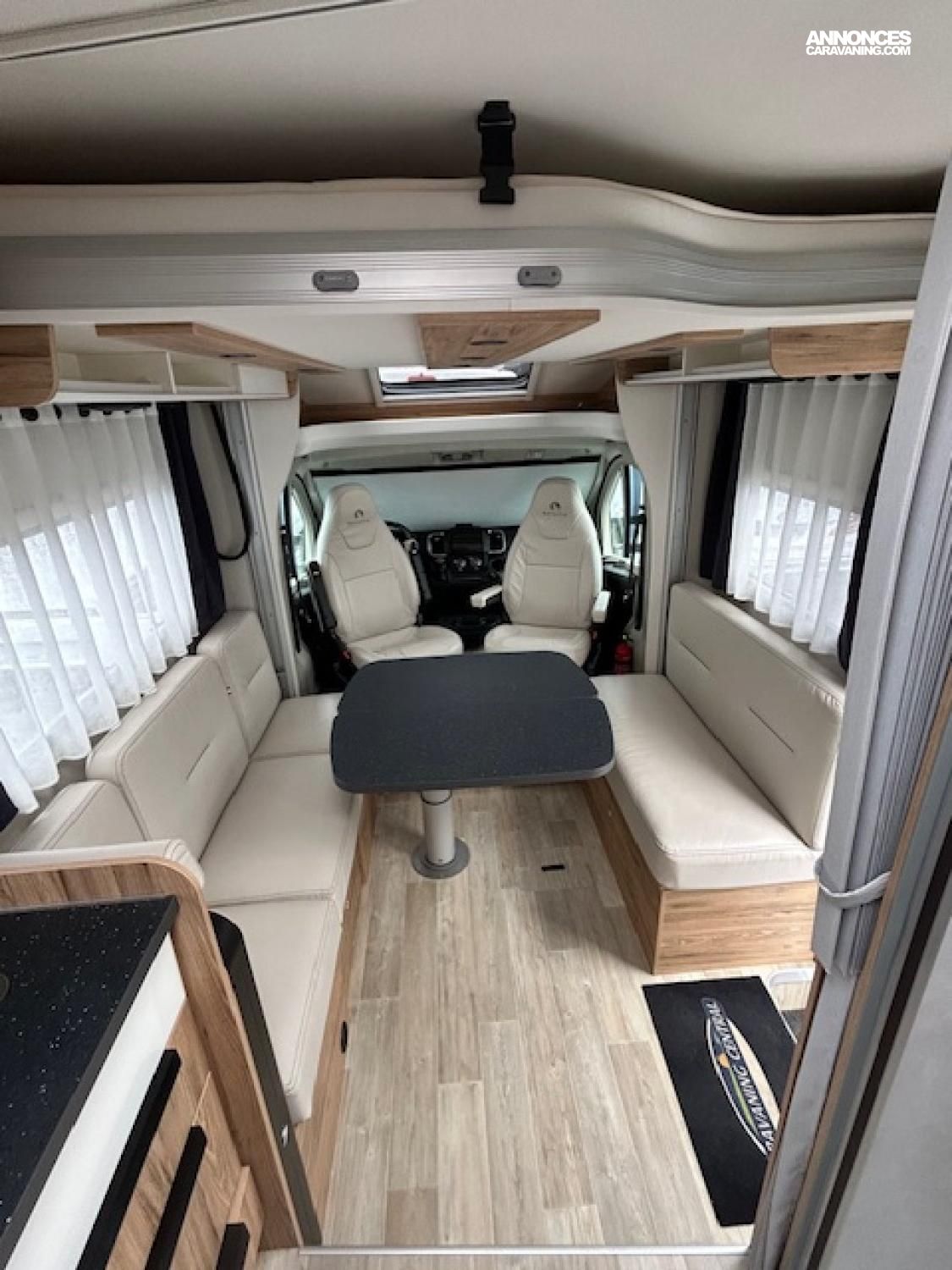 Ce camping-car de petite longueur (6,20M) offre une incroyable habitabilité avec son salon face/face et sa grande table, sa cuisine avec de nombreux placards et un grand réfrigérateur de 133L, sa salle d'eau avec un système de paroi de douche mobile.