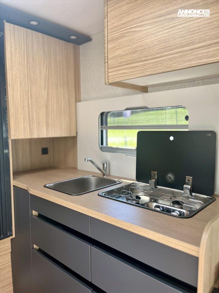 Climatisation manuelle de la cabine, Coffre à gaz pour 2 bouteilles de 13 kg, Combi 4 Truma® chauffage/boiler 4000 W (gaz), Matelas confort plus et sommier à lattes, Moquette dans la cabine, Occultations de la cabine, coulissantes, Pavillon en polyester anti-grêle, Phares antibrouillard et feux diurnes LED, Pneumatiques 4 saisons, Prises 230 V et USB, Réfrigérateur avec gestion automatique, Régulateur et limiteur de vitesse, Réservoir diesel 90 L, Skydôme, Traction+ : augmente la motricité sur les terrains difficile
