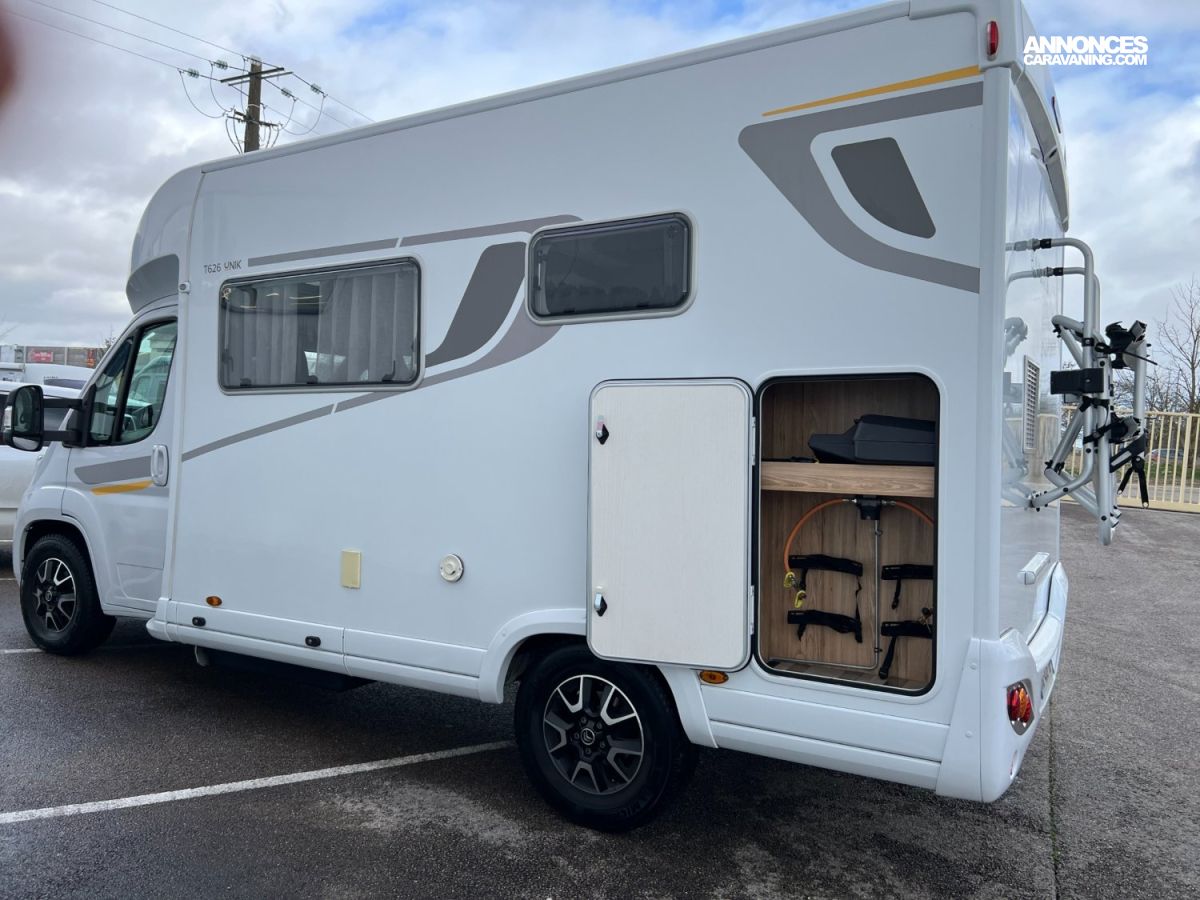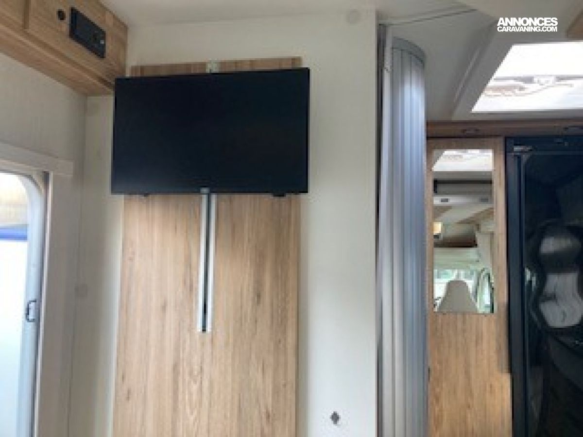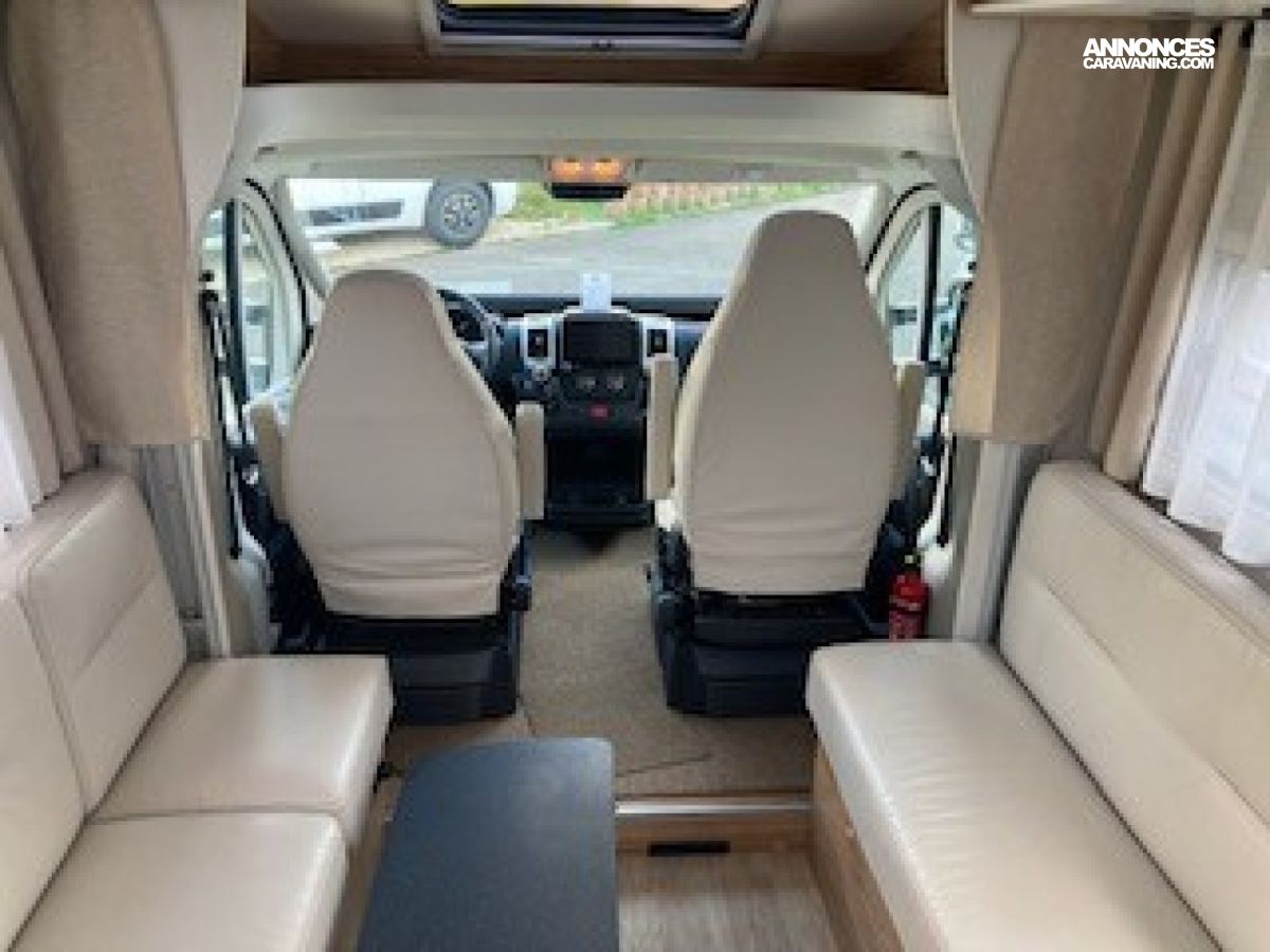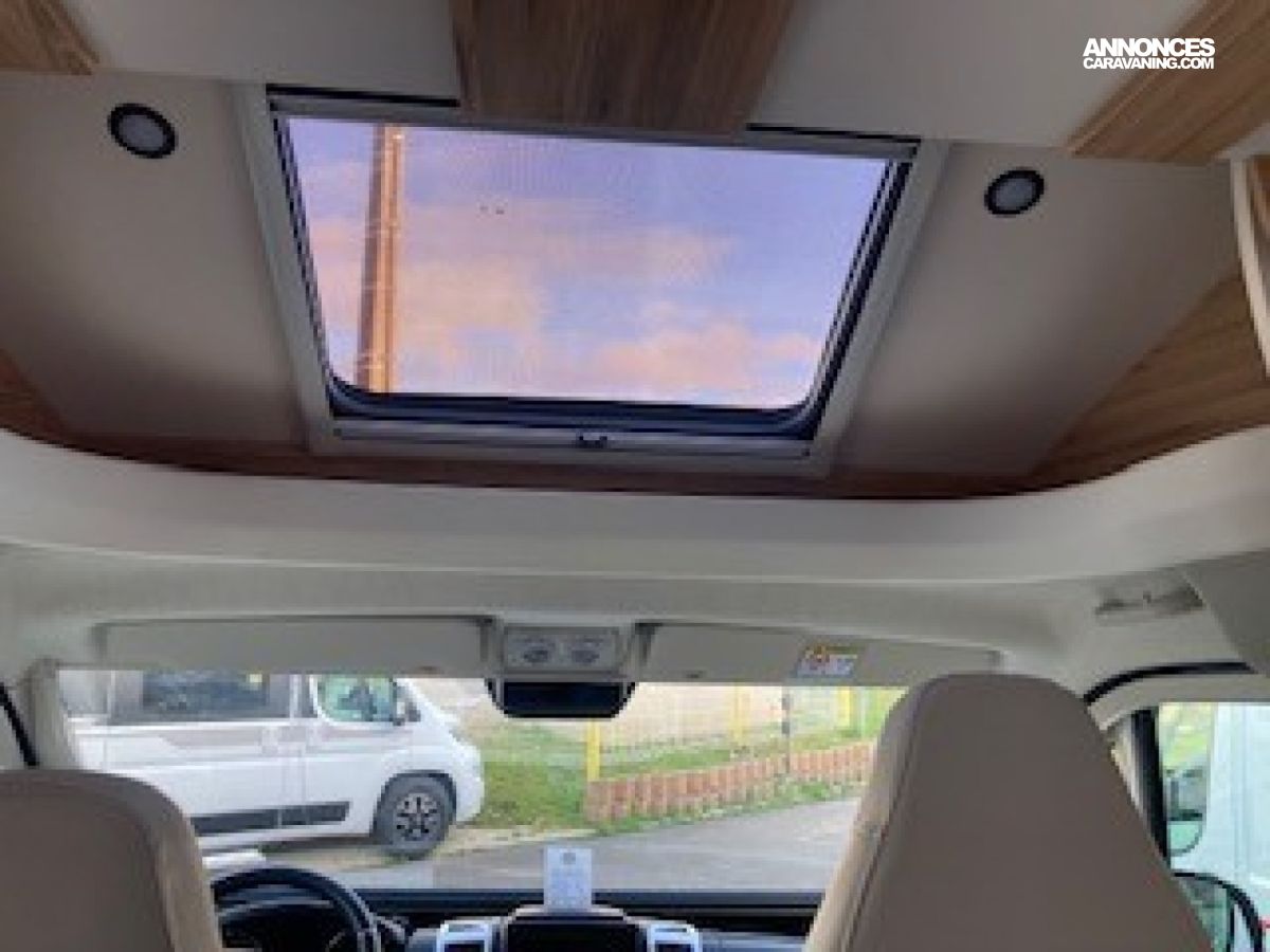 Panneau solaire 100 W, Pare-chocs avant peint couleur carrosserie, Réfrigérateur gestion automatique et caches grilles, Régulateur et limiteur de vitesse, Rétroviseurs électriques et dégivrants, Sellerie simili uni Lin, Sièges cabine houssés, pivotants et réglables en hauteur, ABS, ASR, ESP, Traction+, Kit anti-crevaison, Meuble Country et blanc brillant, Plan de travail et crédence mika noir, Projecteurs anti-brouillard et feux diurnes LED, Jantes aluminium 16’’, Tiroir bas de caisse, Verrouillage centralisé et vitres électriques, Volant et pommeau en cuir., Airbags conducteur et passager, Store banne, Autoradio 2Din 8” /caméra de recul et hp, Cerclages des optiques et calandre noires, Climatisation cabine manuelle, Commandes radio au volant