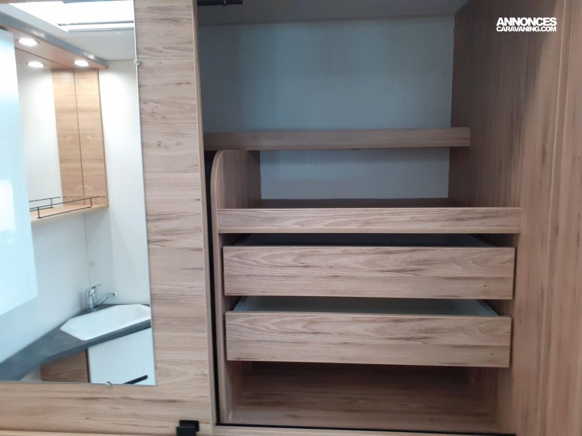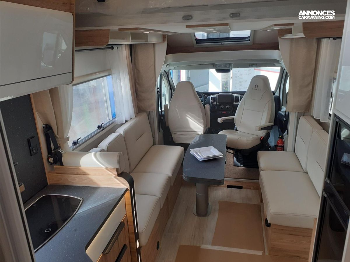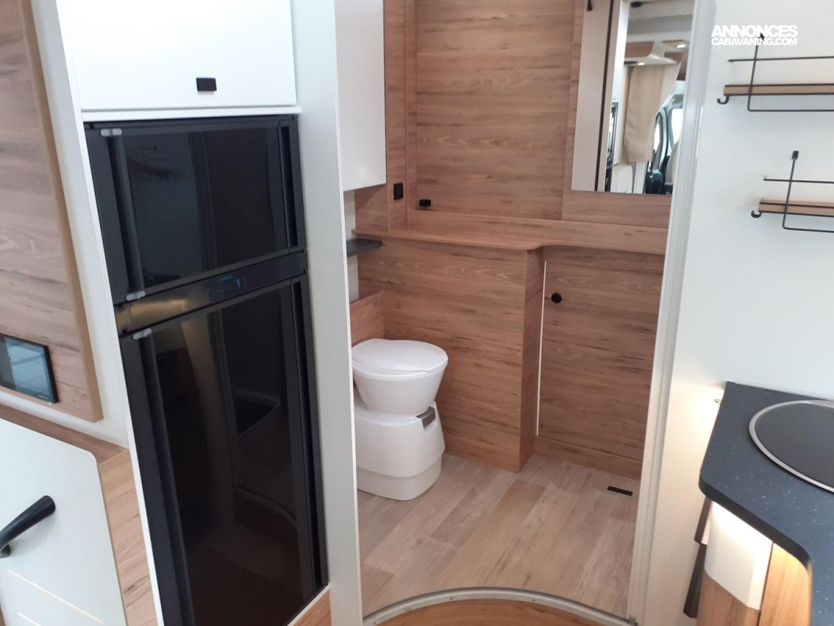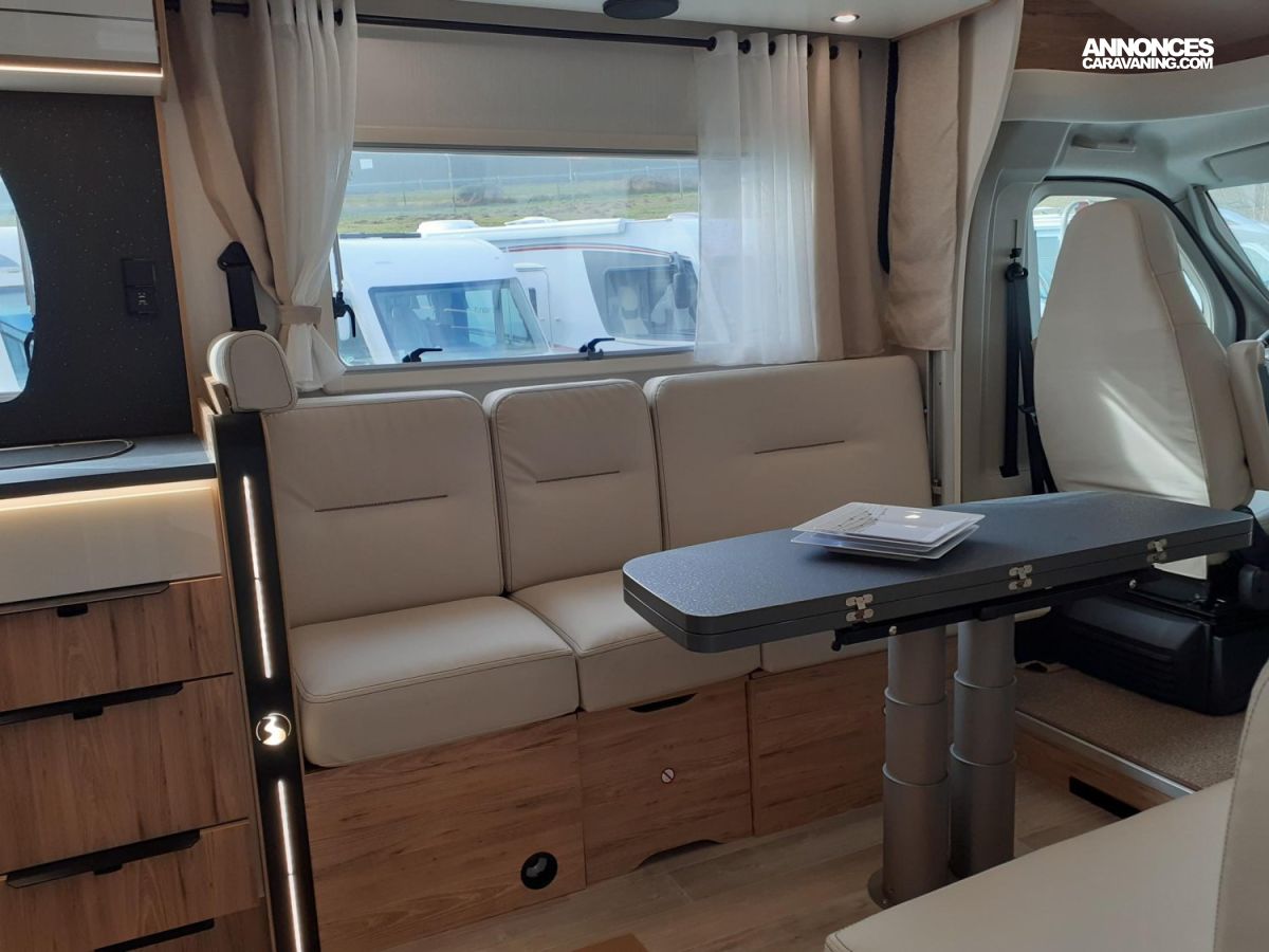 Moustiquaire porte d'entrée, Occultation cabine, Régulateur de vitesse, Réservoir diesel 90 L, Booster batterie, Caméra de recul, Chauffage Combi 4E, Clim porteur, Panneau solaire 100 W, Plan travail MIKA NOIR, Porte cellule centralisée, Jantes tole 16", Lit pavillon, Marchepied électrique, Airbag conducteur, Airbag passager, Batterie AGM 95, Boite 6 vitesses, Skydome, Traction system, WC DOMETIC, Crash Sensor TRUMA