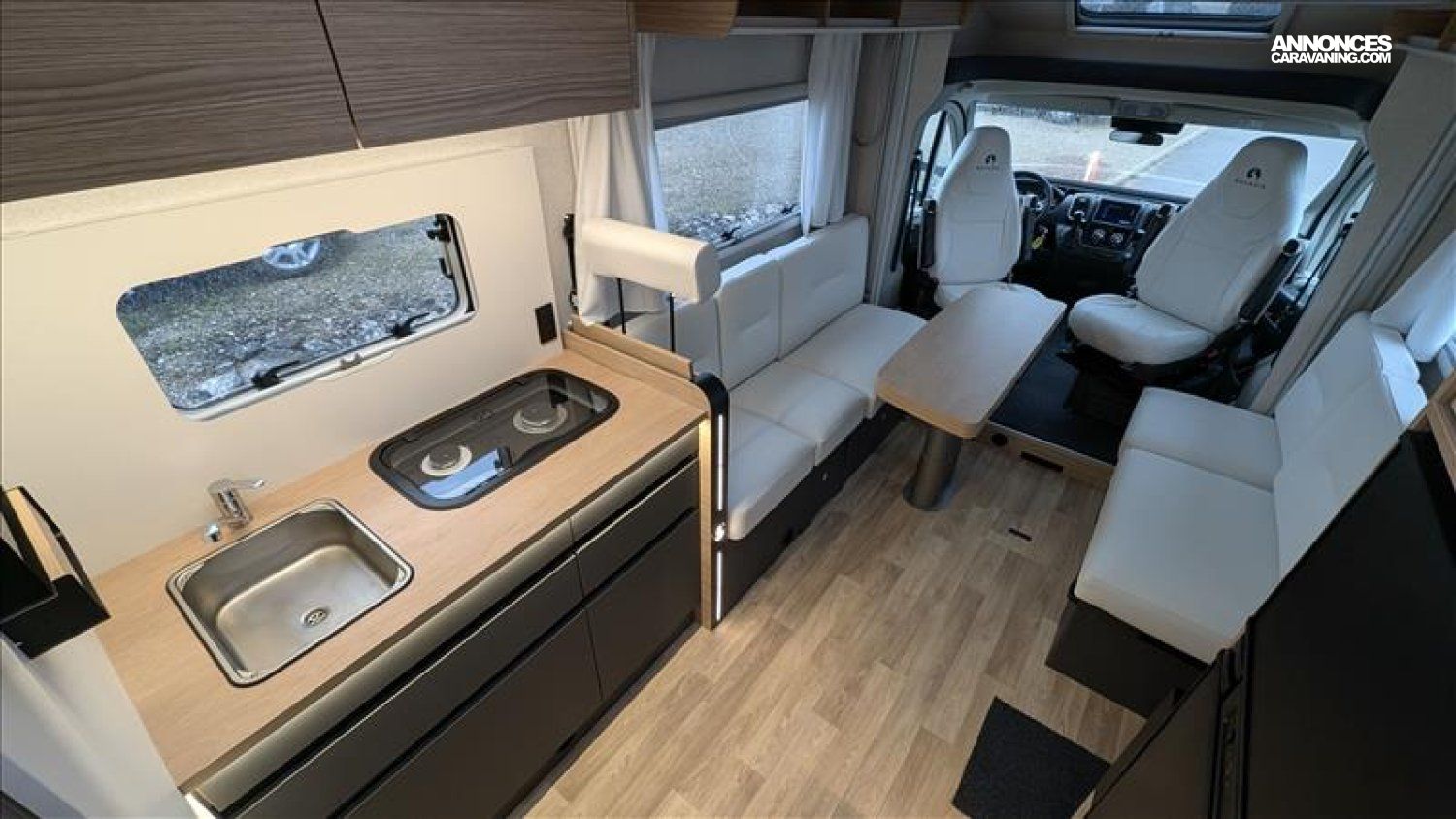 Dans le royaume des cimes enneigées, où les montagnes se dressent majestueuses et les vallées chantent des mélodies de liberté, le camping-car Bavaria T 690 D Nomade devient votre fidèle compagnon de voyage. Imaginez-vous, bercé par le murmure des sapins, dans le confort d'un maxi salon spacieux, où chaque instant se transforme en un poème de sérénité. La grande penderie, telle une caverne secrète, abrite vos trésors et vos souvenirs, prêts à être découverts à chaque nouvelle aventure. Avec le Bavaria T 690 D Nomade, chaque virage sur les routes sinueuses des montagnes devient une ode à la découverte et à la liberté. Embarquez pour un voyage où le confort et l'élégance se marient avec la nature sauvage, et laissez-vous envoûter par la magie des hauteurs.