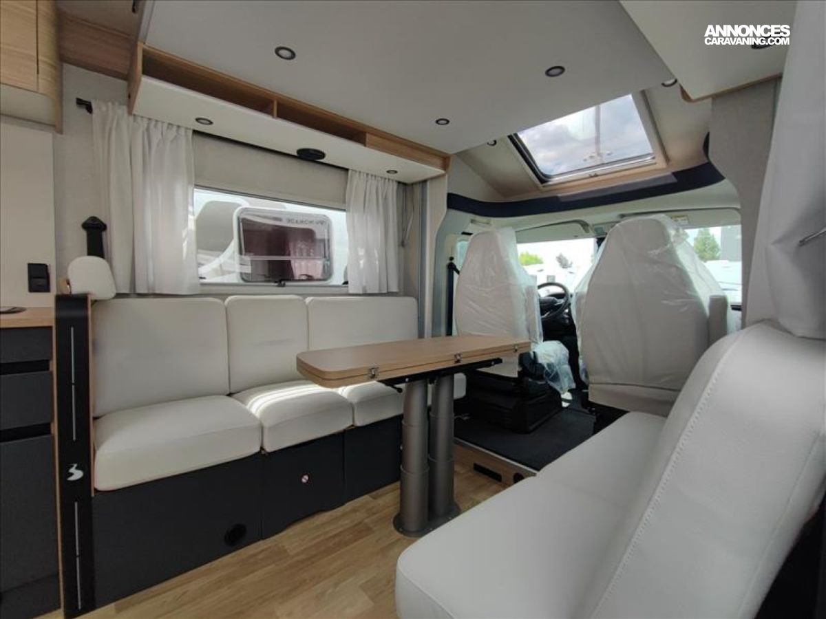 SIEGES CABINE CONFORT, REGULATEUR DE VITESSE, BATTERIE AUXILAIRE, INDICATEUR PRESSION DES PNEUX, ABS, STORES OCCULTANTS CABINE, ANTI DEMARRAGE, CAPTEURS DE LUMIERES, PORTE CELLULE AVEC BAIE, MOUSTIQUAIRE DE PORTE, VERROUILLAGE CENTRALISE CABINE, COMMANDES AU VOLANT, CHAUFFE EAU, RECHAUD 2 FEUX, STOP & START, ANTI BROUILLARD, ASR, FEUX LEDS, JANTES ALU, ESP, DOUBLE AIRBAGS, DOUCHE EXTERIEURE, CLIMATISATION MANUELLE PORTEUR, VITRES ELECTRIQUES, STORE EXTERIEUR, RETROVISEURS ELECTRIQUES, CAMERA DE RECUL, PANNEAU SOLAIRE 100 W, INVERSEUR GAZ, TIROIR BAS DE CAISSE, ANTI PATINAGE TRACTION+, CHAUFFAGE TRUMA COMBI 4, PRISE USB, RIDEAU ISOTHERME CABINE, REFRIGERATEUR 135 L, AUTORADIO, FREIN A MAIN ELECTRIQUE, MARCHEPIED ELECTRIQUE