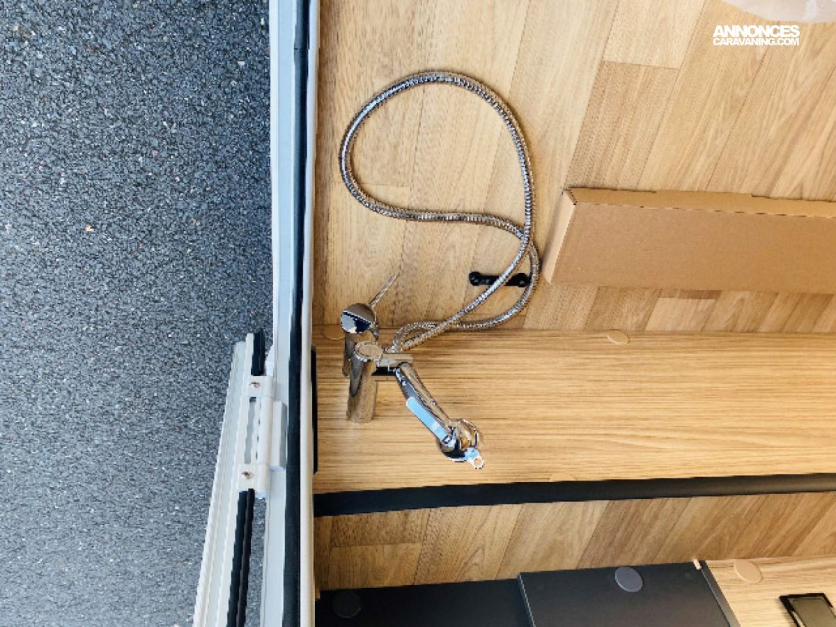 Calandre Noir, Chambre spacieuse lit central + lit pavillion, Douchette exterieure, Fiat ducato 2.2 L 140 cv - Boite automatique, Pack Nomade, Reservoir gazoil 90L, Store exterieure, Tiroir bas de caisse