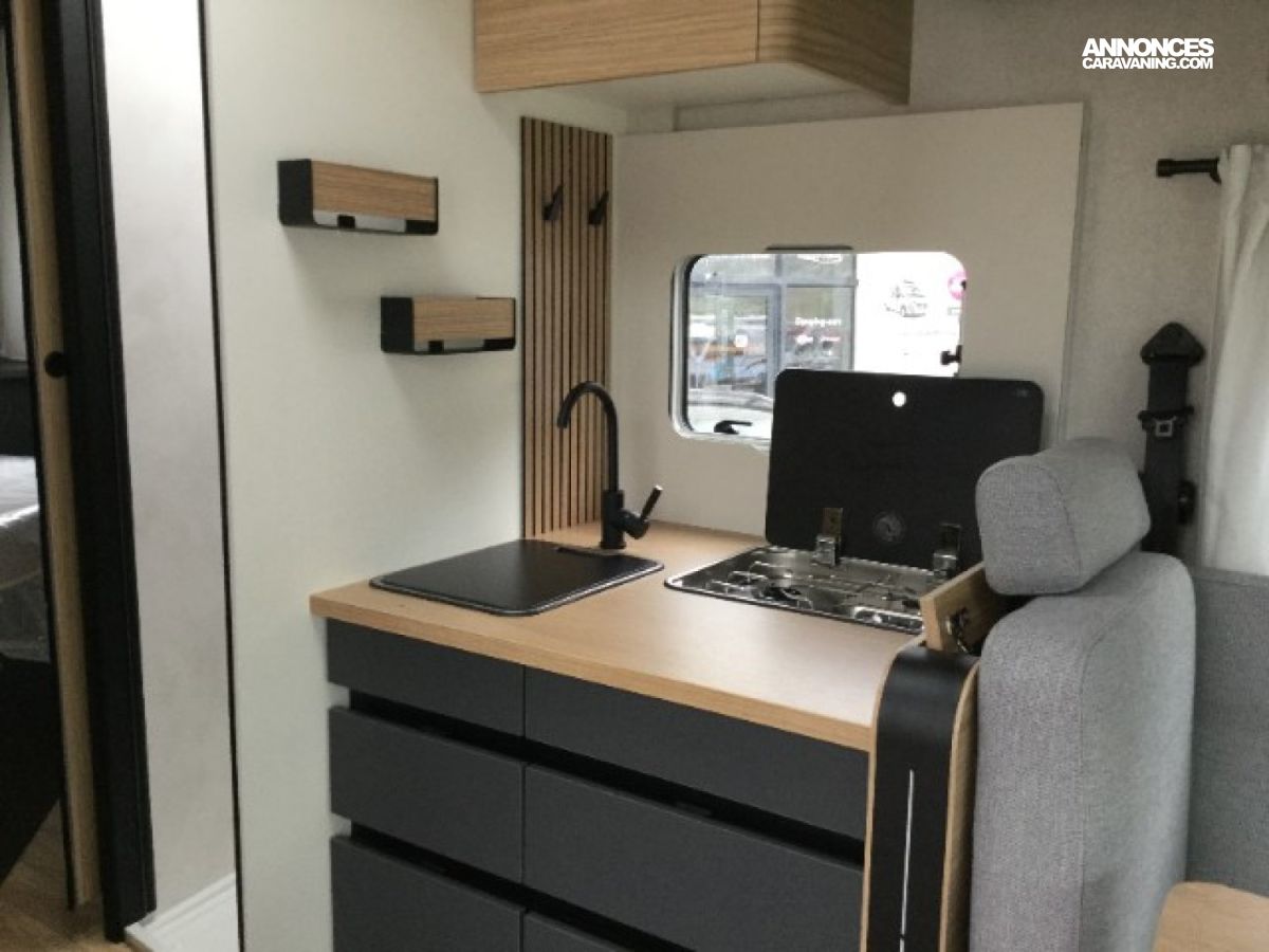 2 PANNEAU SOLAIRE MONO. 100W, AMBIANCE MOBILIER ANNECY, BATTERIE LITHIUM 200AH, CAMERA DE RECUL, CLIM MOTEUR, Couleur cabine noire, Douchette extérieur eau froide / eau chaude, Lit pavillon électrique, Poste multimédia 7", REFRIGERATEUR A COMPRESSION, STORE EXTERIEUR, STORE REMIS, TABLE CENTRALE PAPILLON, Tirroir bas de caisse, TISSUS GALET, TRUMA COMBI DIESEL 6E, VEHICULE NEUF D EXPOSITION