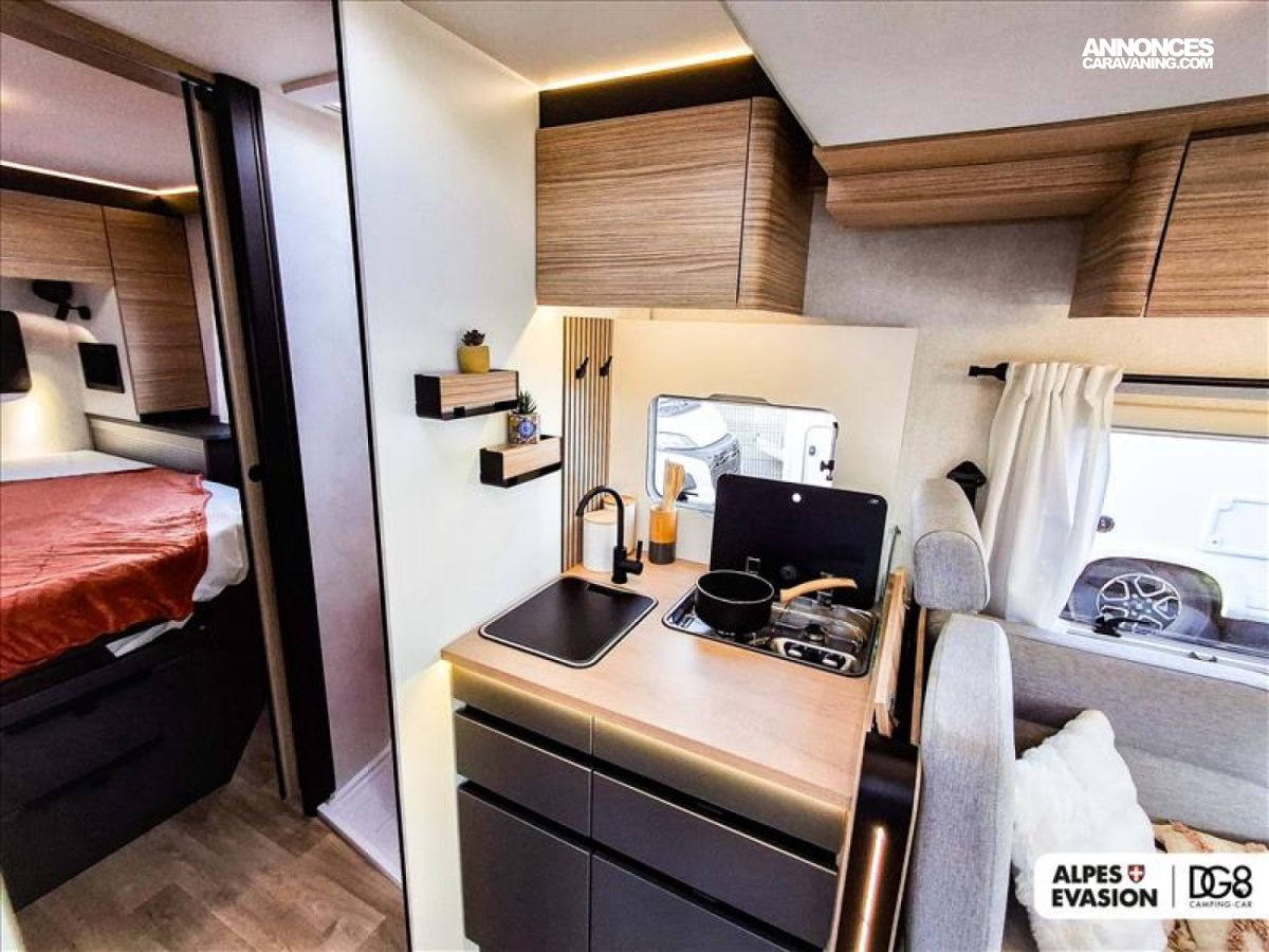 2 PANNEAUX SOLAIRES 100 W, AUDIO 7 DAB, BATTERIE LITHIUM 200 AH, CABINE NOIRE, CAMERA DE RECUL, DOUCHE EXTERIEURE, MODELE NEUF D EXPOSITION, MOTEUR 140 CV BOITE AUTOMATIQUE, REFRIGERATEUR A COMPRESSION, STORE, TRUMA COMBI DIESEL 6 E