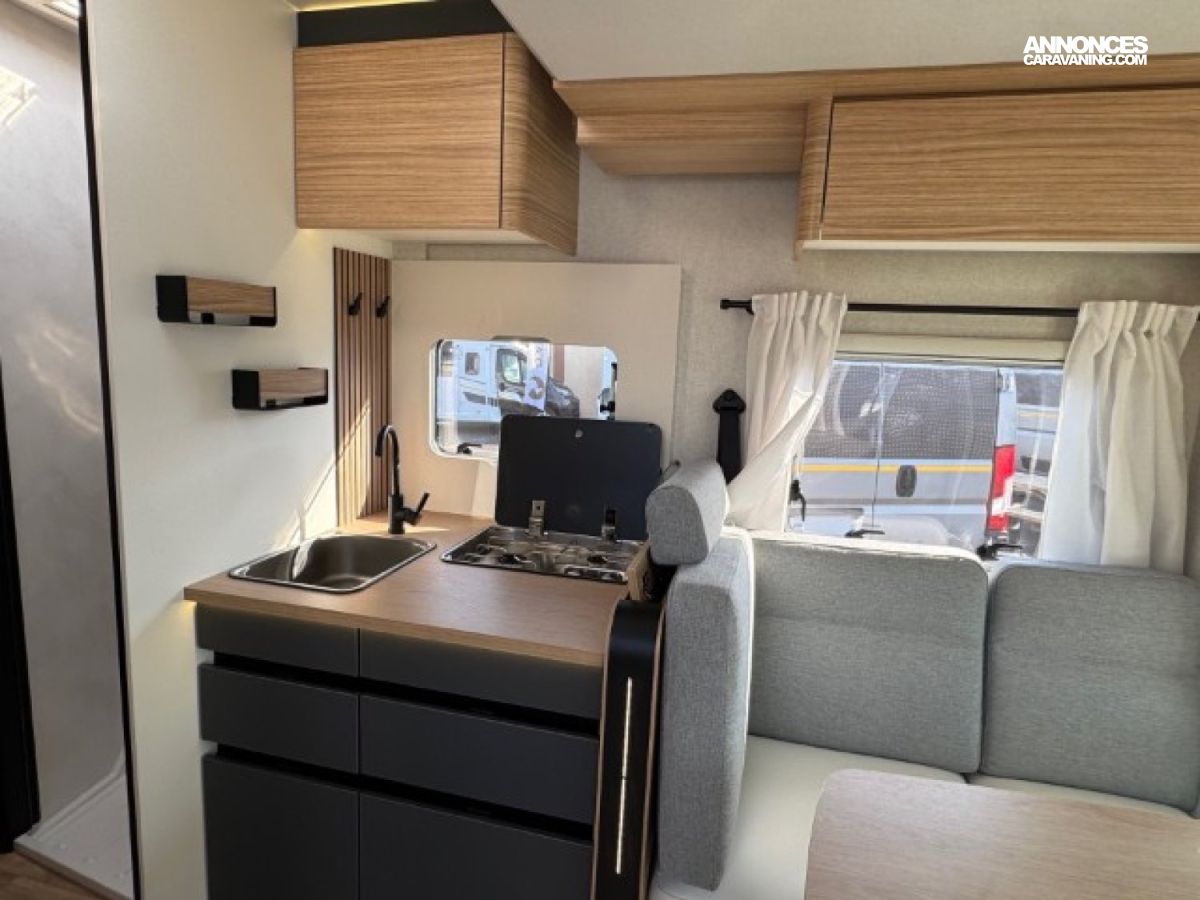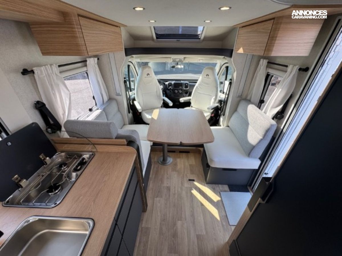AMBIANCE PYLA, BATTERIE LITHIUM 200AH ET 2 PANNEAUX SOLAIRES 100 W MONOCRIS, BOOSTER POUR UNE CHARGE RAPIDE DE LA BATTERIE, CABINE NOIRE, CAMERA DE RECUL, CHAUFFAGE HYBRIDE TRUMA D 6E (DIESEL/230V), DOUCHETTE EAU FROIDE/ CHAUDE DANS LA SOUTE ARRERE, LIT PAVILLON ELECTRIQUE AVEC SOMMIER A LATTES, MOTORISATION 2.2 L - 140 CH - BOITE AUTOMATIQUE, PACK JANTES (JANTES ALLIAGE 16'' + VOLANT SIMILI + AERATEUR, PACK MEDIA 7" : AUTORADIO 7" PIONEER, DAB, APPLECAR/ANDROID, REFRIGERATEUR A COMPRESSION THEDFORD 150 OU 158L SELON MODEL, SELLERIE BI-TON ET BI-MATIERE SIMILI ET TISSU "SAND", STORE BANNE, TIROIR BAS DE CAISSE