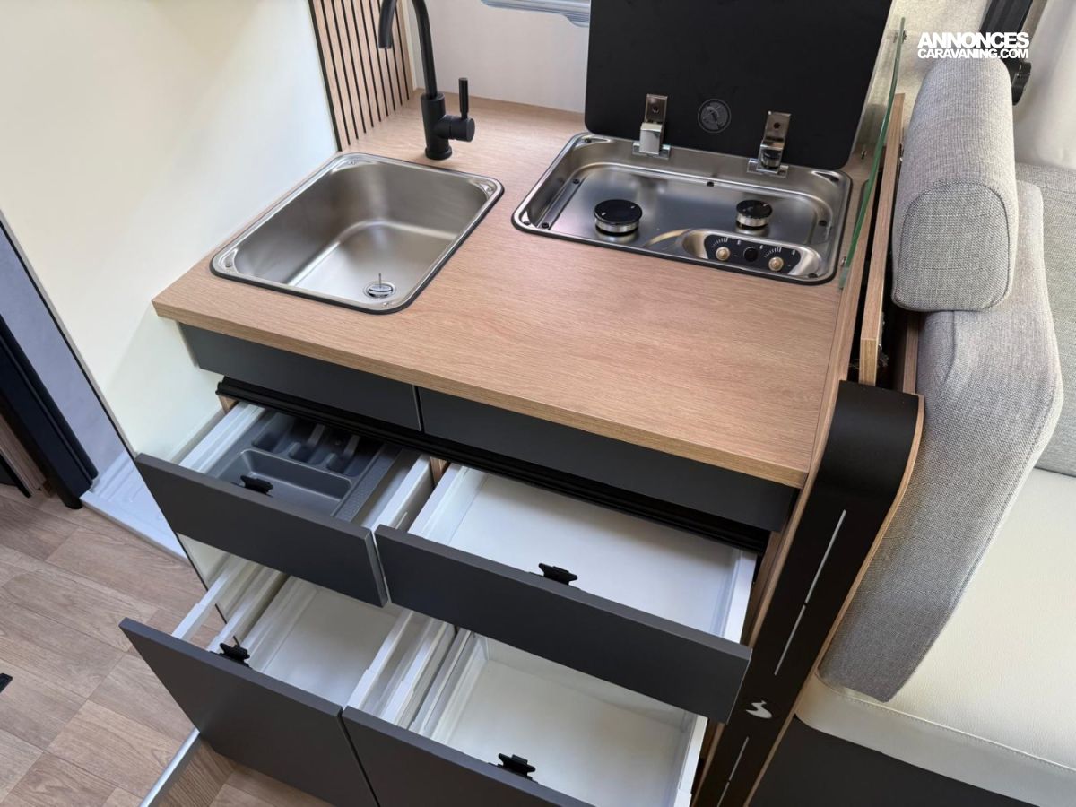 -Caméra de recul, HP dans la cabine et dns la cellule, 140 CV, BOITE AUTOMATIQUE, CABINE NOIRE, 2 PANNEAUX SOLAIRES 100W, TOPCon haute performance, CHAUFFAGE HYBRIDE TRUMA D 6E (DIESEL/230V), REFRIGERATEUR A COMPRESSION THEDFORD, STORE EXTERIEUR + TIROIR BAS DE CAISSE, DOUCHETTE EAU CHAUDE/FROIDE EN SOUTE, LIT DE PAVILLON ELECTRIQUE AVEC SOMMIERS A LATTES, PACK JANTES :, -JA 16", volant simili, aérateurs gris aluminium, PACK MEDIA :, -autoradio 7" Pioneer, DAB, AppleCar/AndroidAuto, BATTERIE LITHIUM 210 AH, BOOSTER DE CHARGE