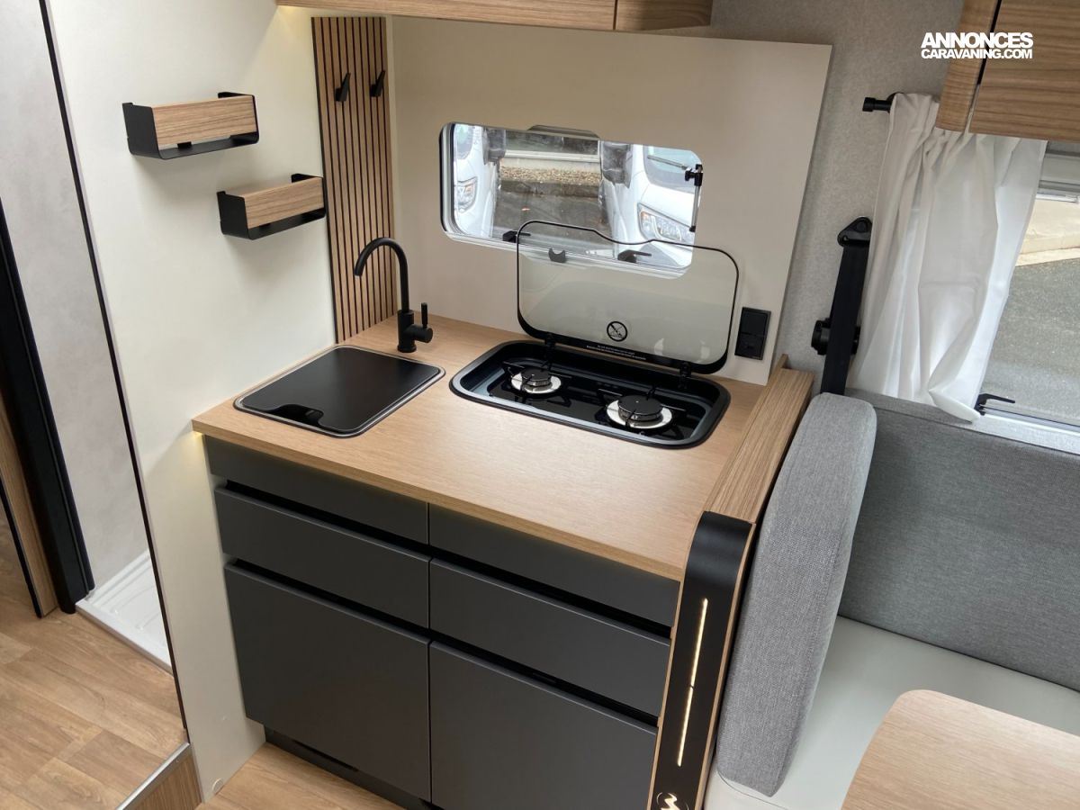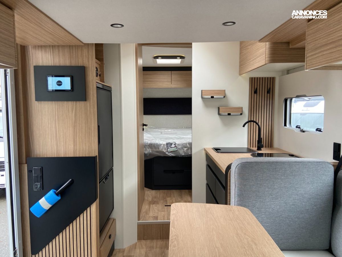 BOITE AUTOMATIQUE, CABINE NOIRE, JANTES ALUMINIUM 16", VOLANT EN SIMILI, REFRIGERATEUR A COMPRESSION THEDFORD, STORE EXTERIEUR, TIROIR BAS DE CAISSE, SERIE NOMADE COMPRENANT :, MOTORISATION 2.2L - 140 CH, CAMERA DE RECUL, DOUCHETTE DANS LA SOUTE ARRIERE, LIT DE PAVILLON ELECTRIQUE, 2 PANNEAUX SOLAIRES 100 W, AERATEURS GRIS ALUMINIUM, BOOSTER DE CHARGE, CHAUFFAGE HYBRIDE TRUMA D 6 E (DIESEL / 230 V), BATTERIE LITHIUM 210 Ah, AUTORADIO 7" PIONEER AVEC DAB ET APPLECAR / ANDROID AUTO