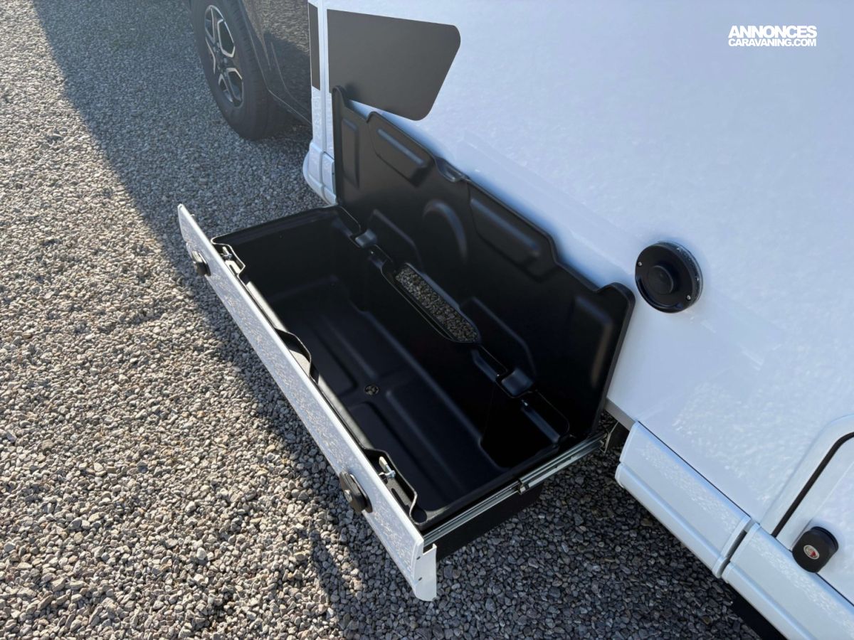 REFRIGERATEUR A COMPRESSION, STORE EXTERIEUR, LITHIUM 200A + 2 PANNEAUX SOLAIRE, PACK JANTES, RESERVOIR CARBURANT 90 L, TIROIR BAS DE CAISSE, DOUCHE EXTERIEURE, LIT PAVILLON, CALANDRE NOIRE, AUTORADIO 7 CAMERA DE RECUL, TRUMA COMBI DIESEL 6E