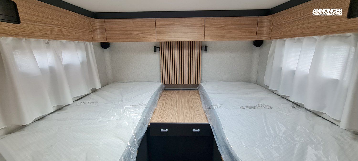 PORTE DE CELLULE VITREE, PANNEAU DE COMMANDE X PERIENCE, BOITE AUTOMATIQUE, ABS+ASR+ESP+TRACTION + AVEC CONTROLE DE VITESSE EN DESCENTE, CABINE NOIR, MARCHE PIED ELECTRIQUE, DOUCHETTE EXT EAU CHAUDE+ EAU FROIDE, LIT DE PAVILLON ELECTRIQUE, REFRIGERATEUR 158 LT A COMPRESSION, COMPLEMENT DE COUCHAGE ENTRE LITS JUMEAUX, SELLERIE BI TON ET BI MATIERE SIMILI ET TISSU, BAS DE CAISSE ALUMINIUM, PARE CHOC AVANT PEINT COULEUR CARROSSERIE, FEUX ANTIBROUILLARDS ET FEUX DIURNES, CERCLAGE DES OPTIQUES ET CALANDRE NOIR, SKID PLATE (PLAQUE DE PROTECTION SOUS CALANDRE), JANTES ALLIAGE 16 + VOLANT EN CUIR +AERATEUR GRIS ALU, MOTEUR 140 CH, SIEGES AVANTS PIVOTANTS, PAVILLON POLYESTER ANTIGRELE, SKYDOME, VERROUILLAGE CENTRALISE ET VITRES ELECTRIQUES, MOQUETTE DANS LA CABINE, RETROVISEURS ELEVCTRIQUES ET DEGIVRANTS+ ANGLE MORT, ECLAIRAGES EXT ET INT A LED, PNEUMATIQUES 4 SAISONS (AVEC FLOCONS), KIT ANTICREVAISON, PACK AUTORADIO 7 " PIONEER ,DAB,CARPLAY /ANDROID AUTO, SUPPORT TV REGLABLE, COMBI D6E TRUMA 6000 KW, COFFRE A GAZ 2 BOUTEILLES 13 KG, BATTERIE LITHIUM 200 AMP + 2 PANNEAUX SOLAIRES 100 W, BOOSTER DE CHARGE, TIROIR BAS DE CAISSE, STORE EXTERIEUR, OCCULTATIONS DE LA CABINE, CALANDRE NOIR