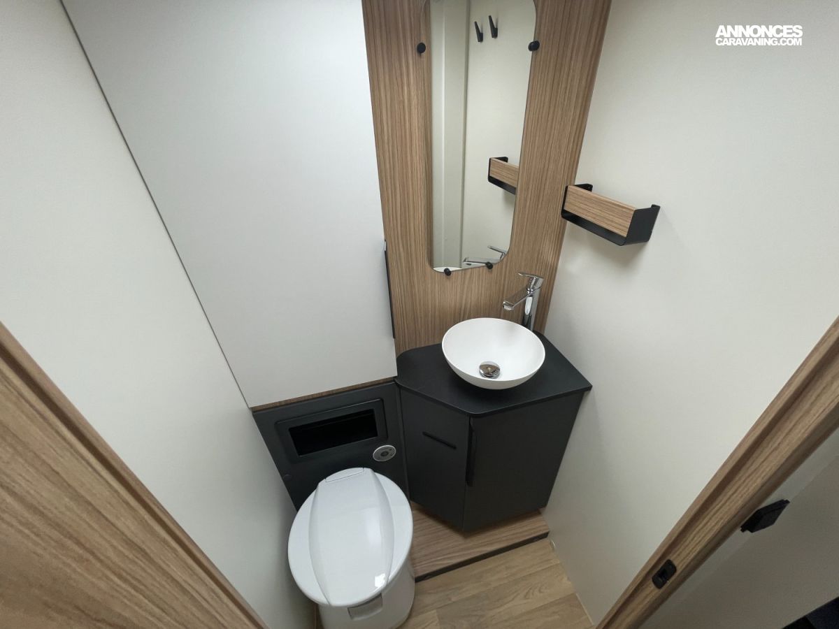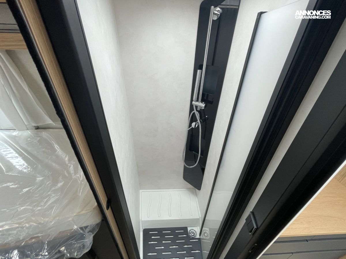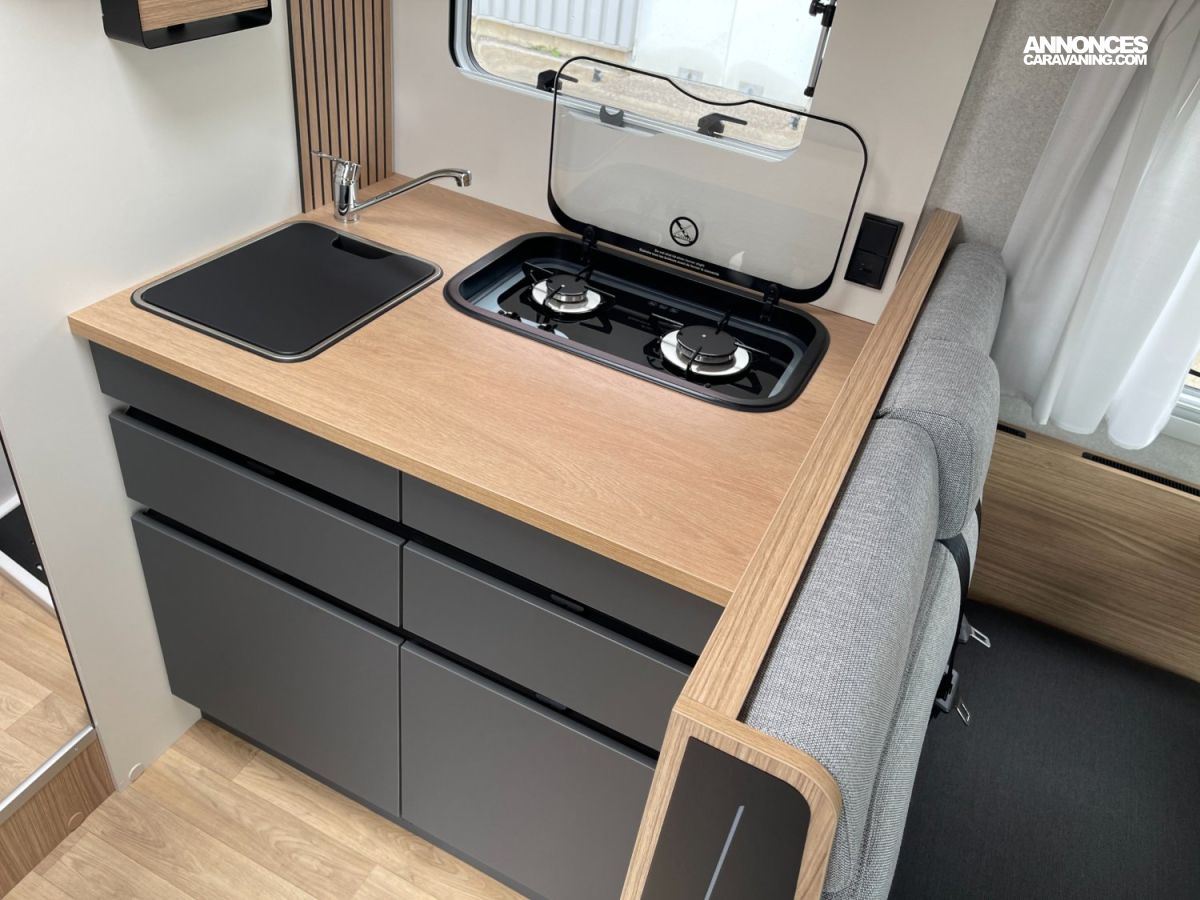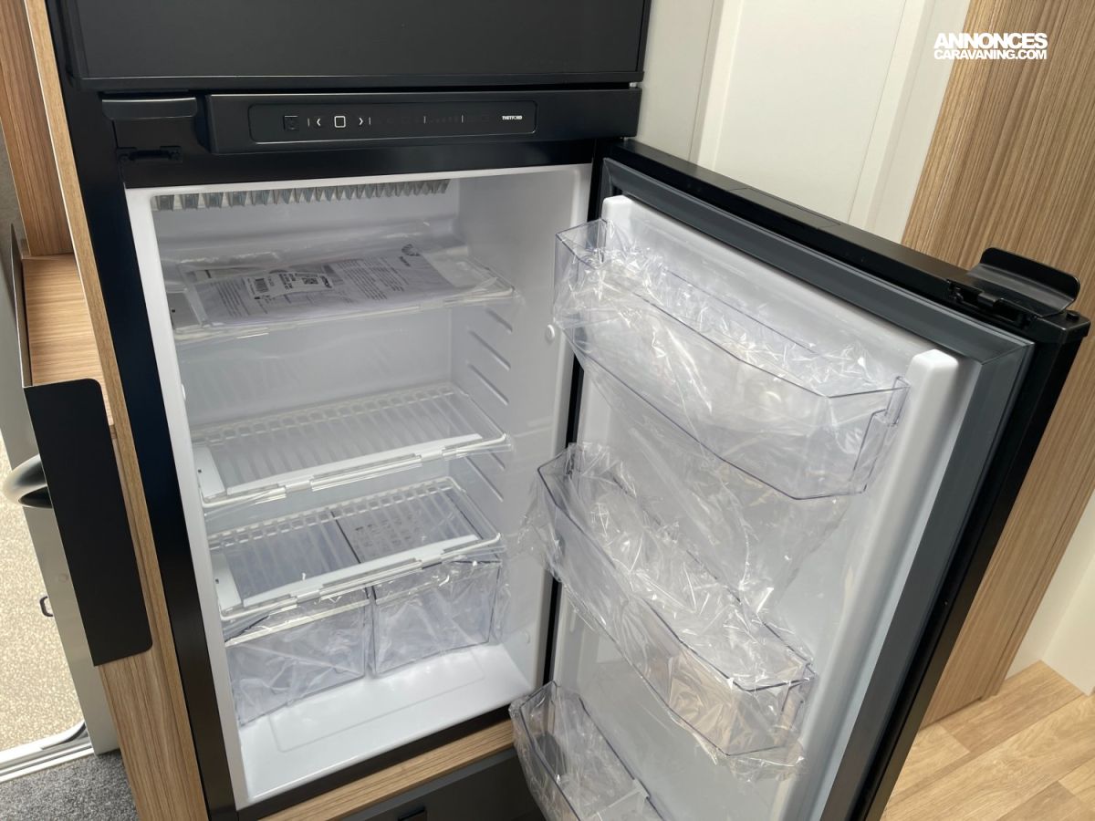 Réservoir gazole 90 L, Grand plan de travail, Structure renforcée permet charge lourde, Double cloisonement, Lanterneau salle de bain, Chauffage Truma Combi 6, Feux haute puissance, Salle d'eau traversante, Grande soute traversante par 2 portillons latéraux, Prises 230V et USB en chambre