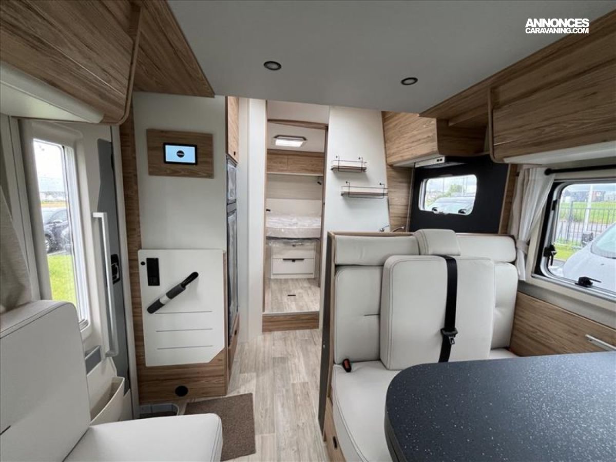 Compact et raffiné, le Bavaria?T?746?C Unik?2024 (7,45?m) offre un lit central arrière accessible sur trois côtés, un salon convivial 4 places, une cuisine fonctionnelle et une salle d’eau séparée. Parfait pour les couples ou familles voyageant avec élégance et confort.