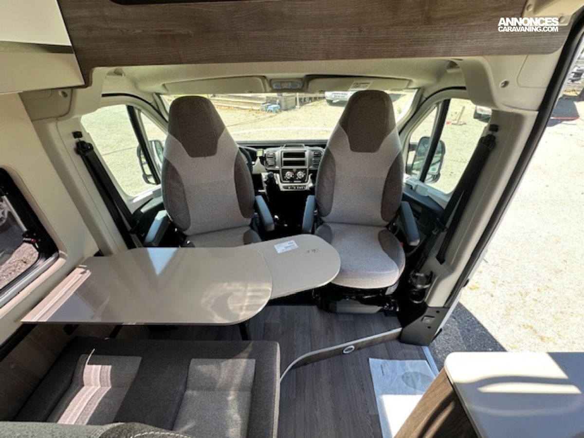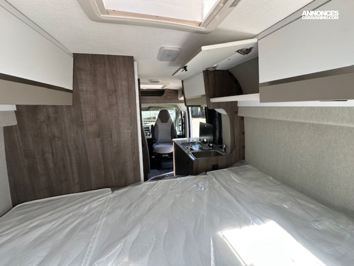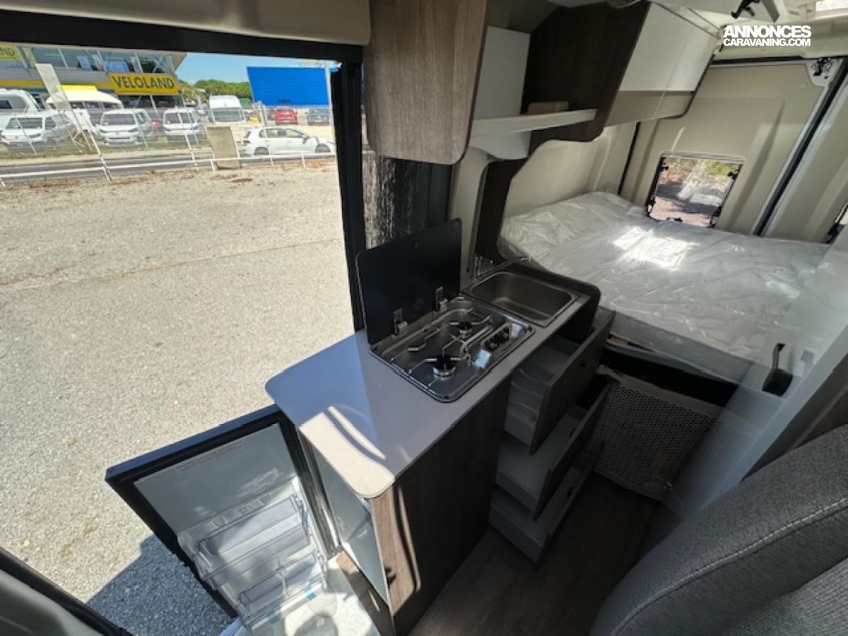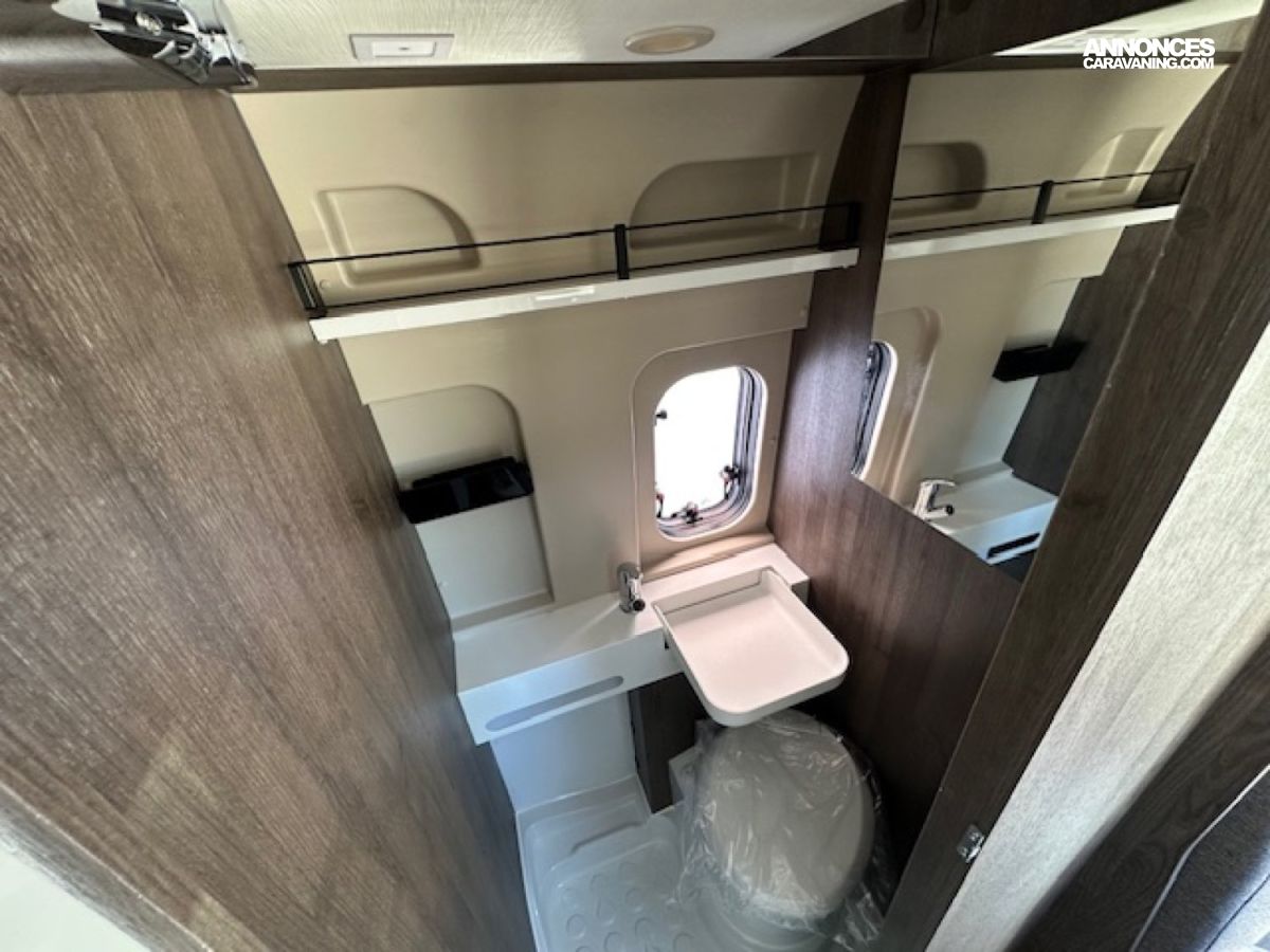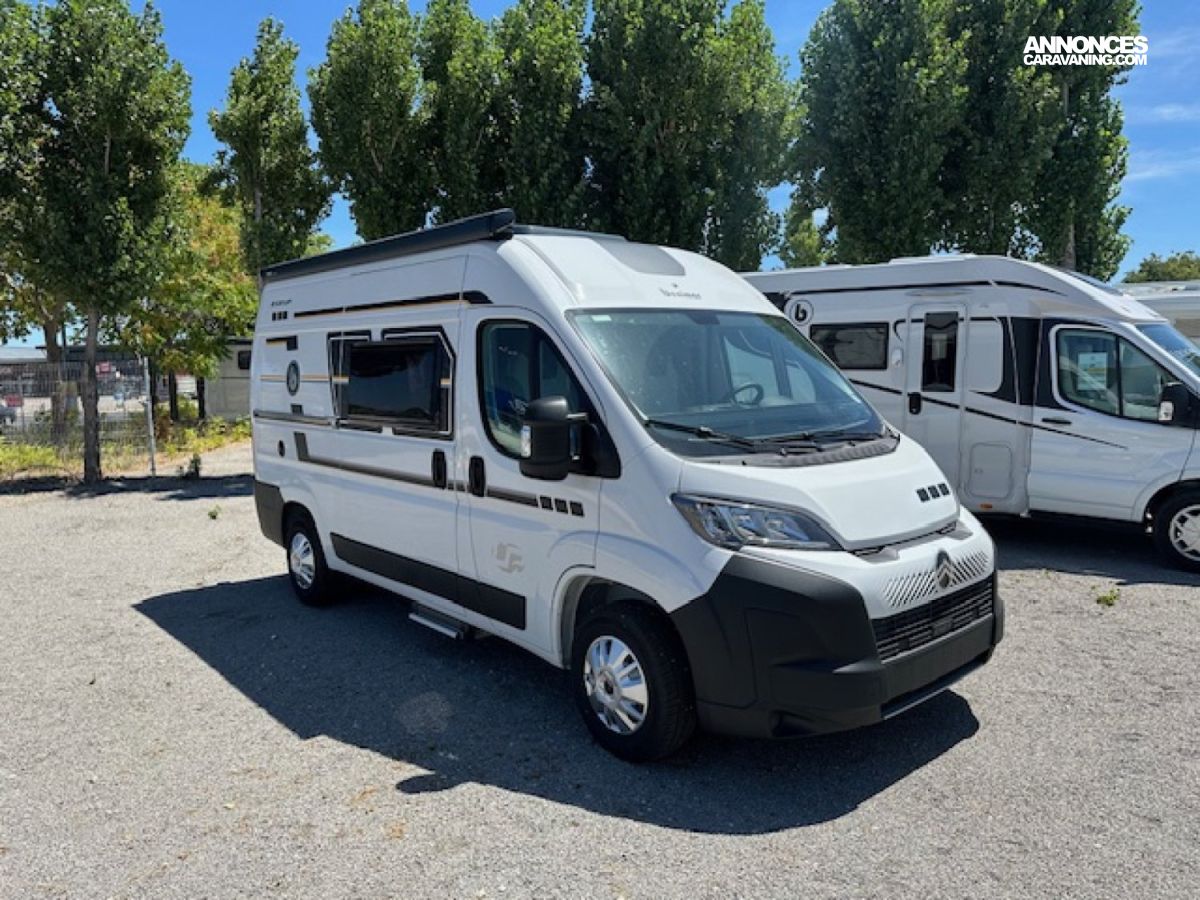 Entièrement prêt à partir avec store extérieur, panneau solaire 200 W, moustiquaire de porte, rideaux occultants… Il dispose d un lit transversal confortable, d une douche spacieuse avec rangements et de tout ce qu il faut pour voyager en toute liberté.