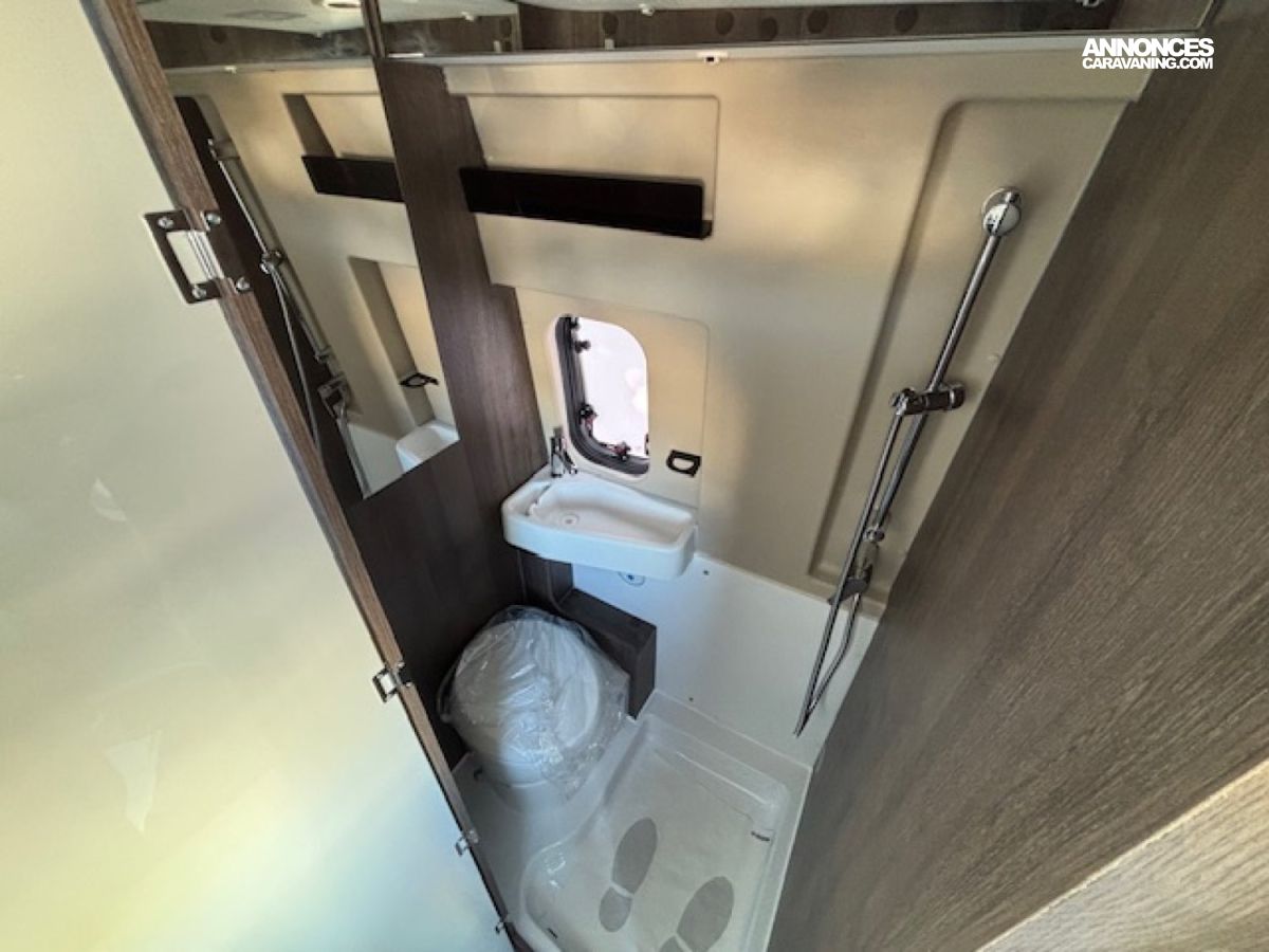 Entièrement prêt à partir avec store extérieur, panneau solaire 200 W, moustiquaire de porte, rideaux occultants… Il dispose d un grand lit transversal confortable, d une salle de bain confortable avec fenêtre, d'un réfrigérateur dans l'entrée de 84 l et de tout ce qu il faut pour voyager confortablement en toute liberté.