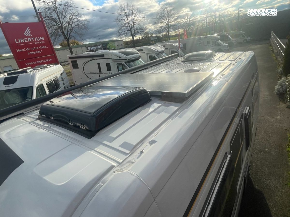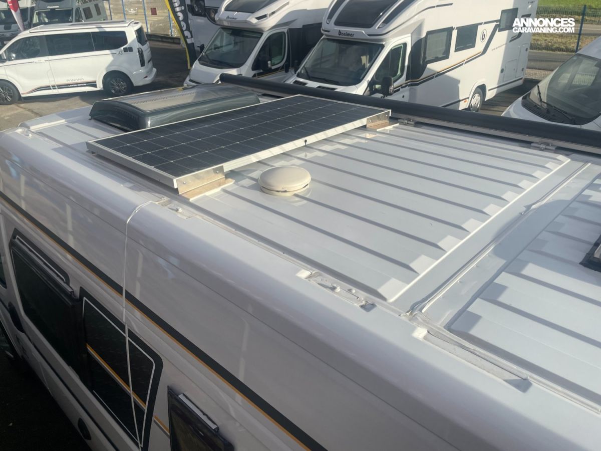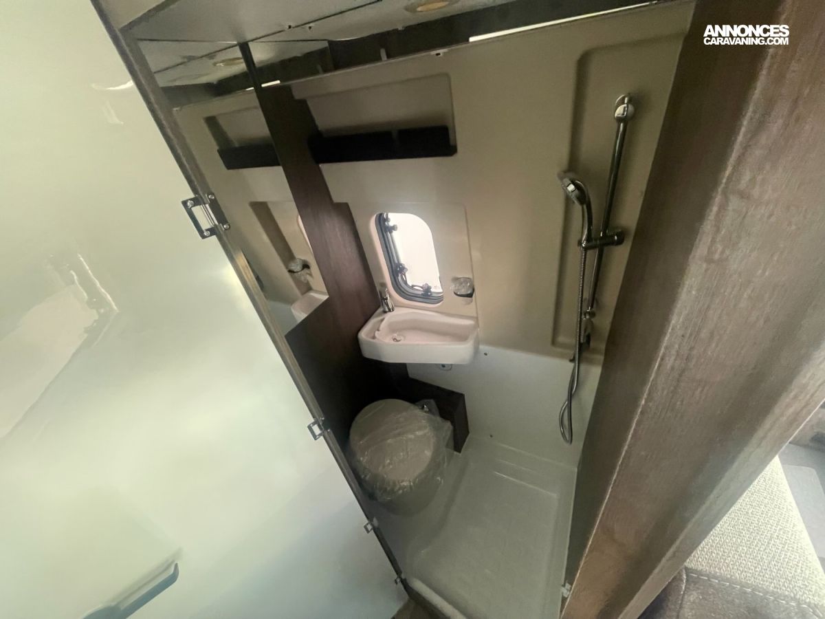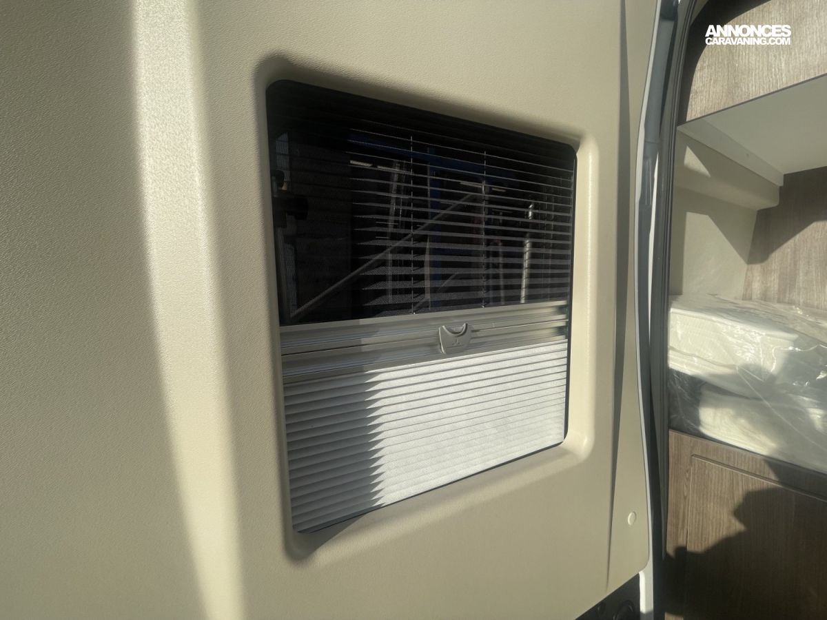 Réservoir 90 l, Nouveau moteur CITROEN Euro 6 - 2,2 l 140, Rideaux occultation vitres cabine, FINITION UP :, - Rideaux occultation vitres cabine, - Grand lanterneau au-dessus dinette, - Moustiquair plissée sur la porte latérale, - Store extérieur, Nouveau tissu celulle « TRIESTE », Table avec rallonge, ISOFIX dans la salle à manger, Réfrigérateur à compression 84 l, Evier et réchaud 2 feux encastrés, Salle de bain avec fenêtre, Combine chauffage / chauffe-eau diesel Truma - 4000 W, - Isofix, CHAUFFAGE avec KIT ALTITUDE, - Panneau solaire 200 W, - MPPT, - Marchepied electrique, - Rallonge table, - Housses de cabine, - Radar de recul, Commandes au volant de la radio, Traction Plus + Hill Descent Control, Régulateur de vitesse avec limiteur
