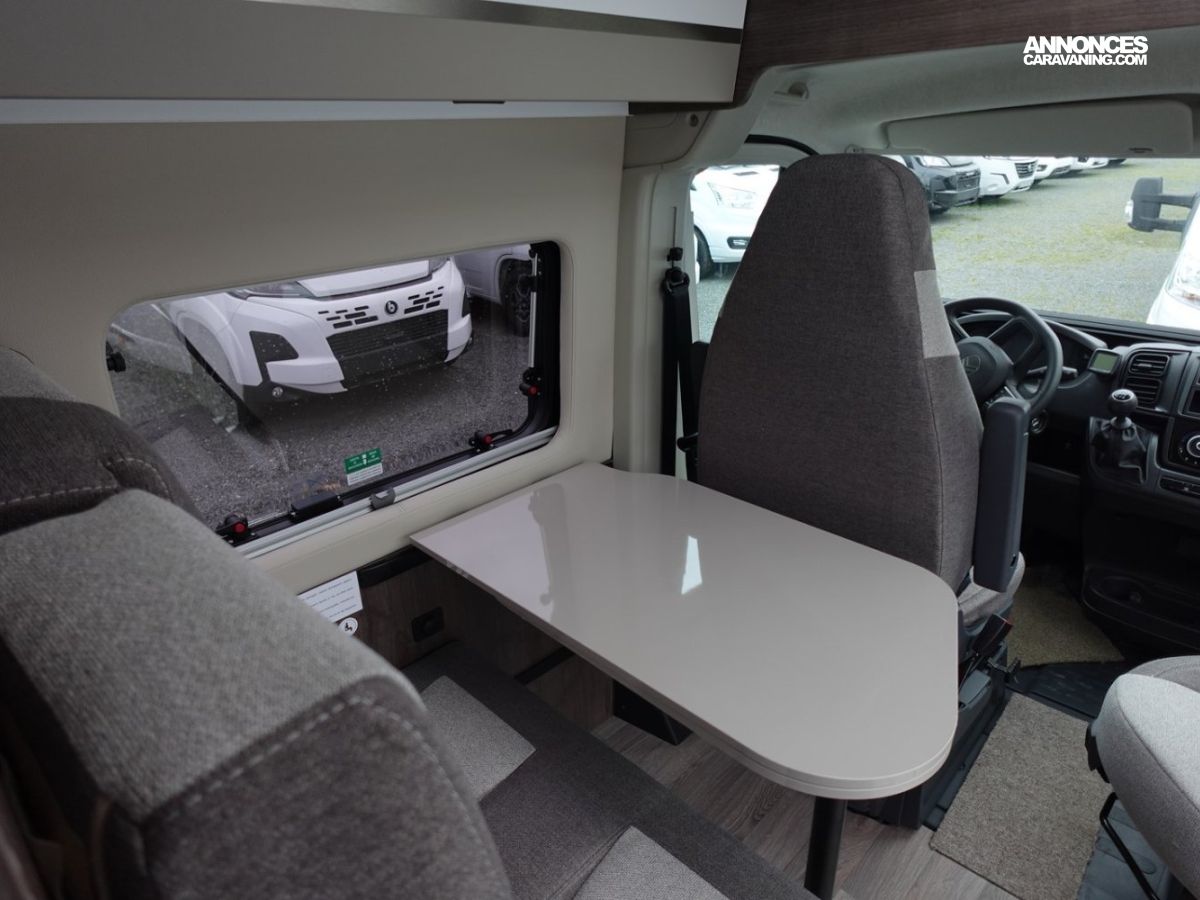 (Rideaux d’occultation vitres cabine, Isofix, Radars de recul, Panneau solaire, Marchepied électrique, Rallonge de table, Housses de sièges cabine, Grand lanterneau au-dessus de la dinette, Moustiquaire plissée sur porte latérale, Store extérieur)