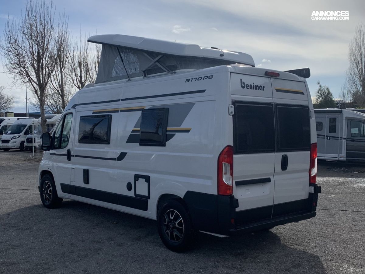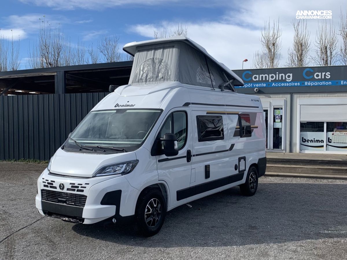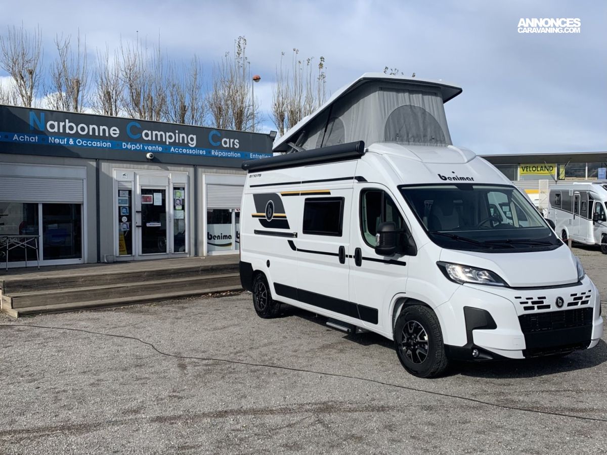 NARBONNE CAMPING-CARS est ravi de vous présenter le BENIVAN 170 Plus de BENIMAR : Un fourgon compact (5,99 m) au rapport qualité/prix/équipements exceptionnel ! Avec ses 5 places carte grise et 5 couchages, son WC et sa douche séparée, il est le compagnon idéal pour vos aventures en famille, quelle que soit votre destination !