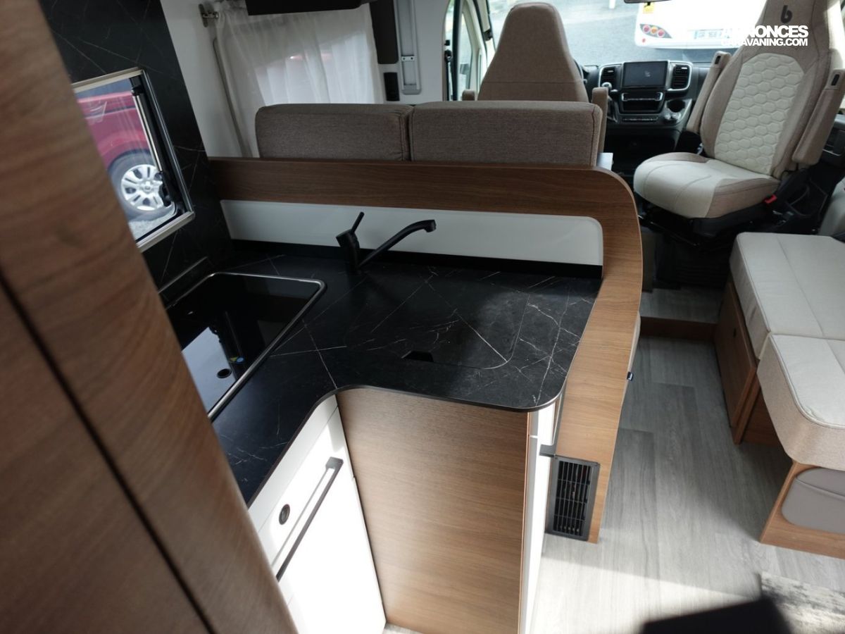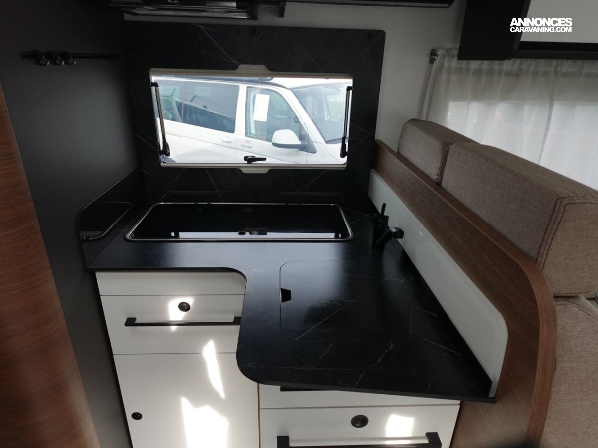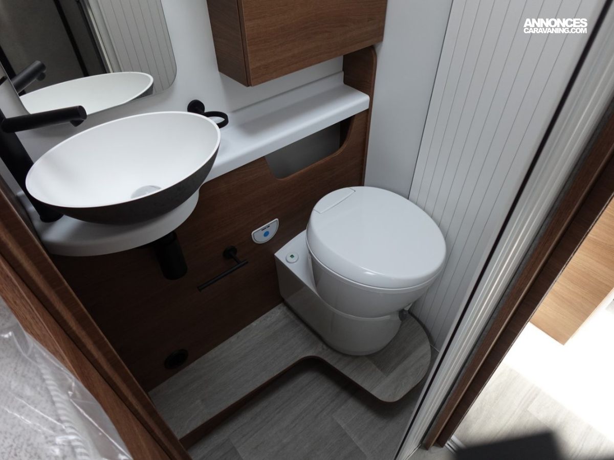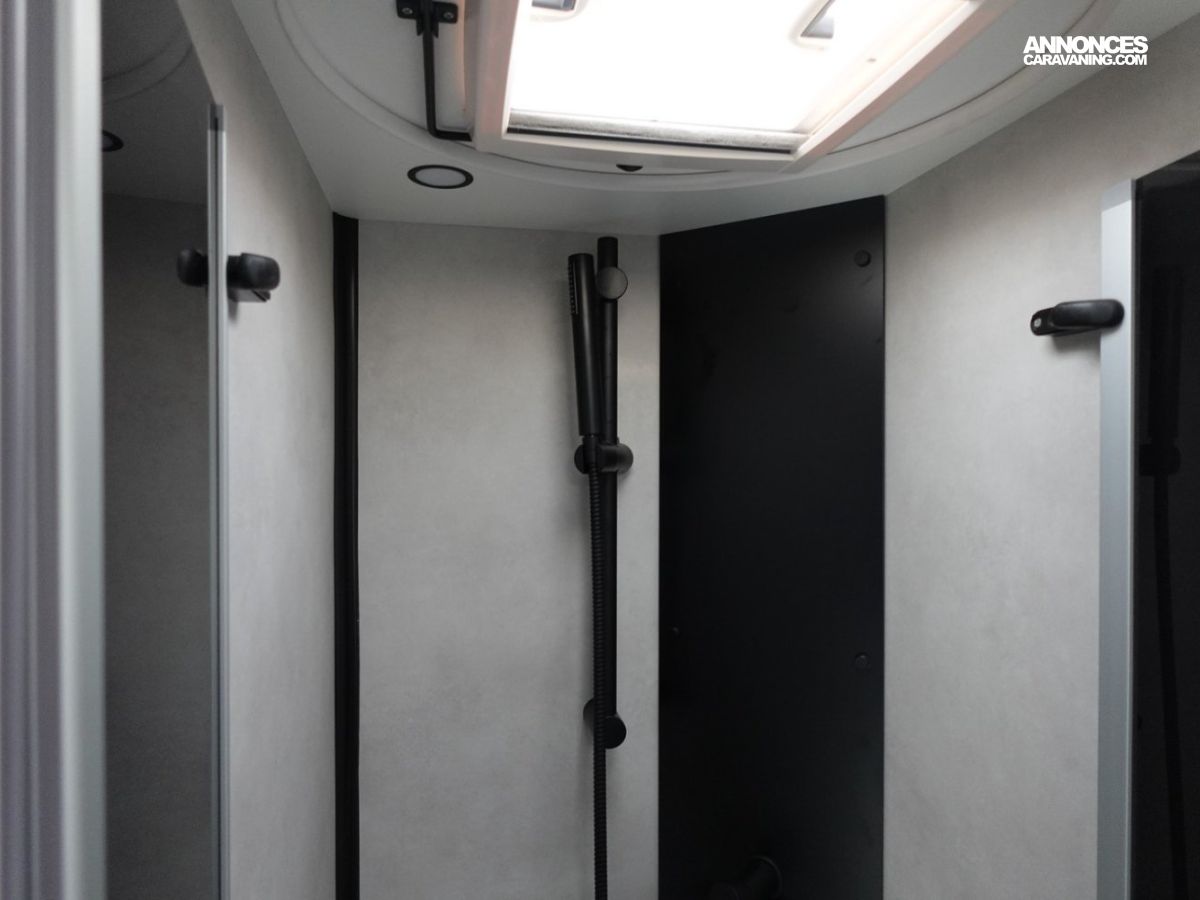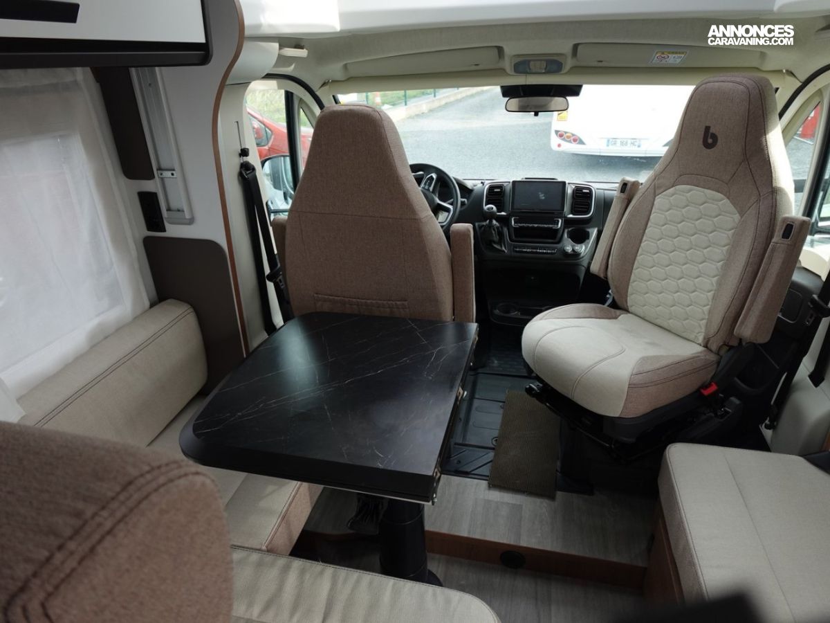 Magnifique profilé avec des lits jumeaux sur soute garage, une douche indépendante de l’espace WC, une cuisine avec de nombreux rangements, un lit de pavillon et un grand salon panoramique.