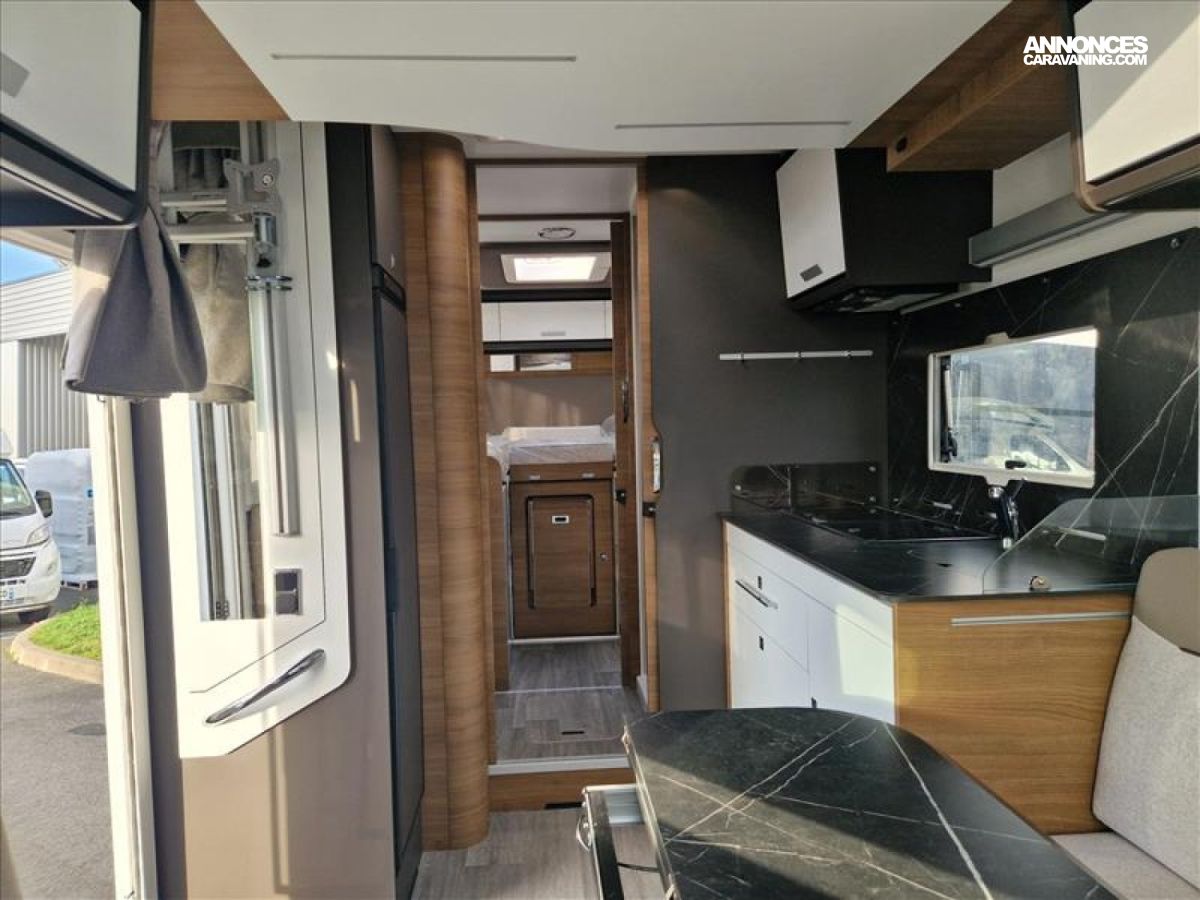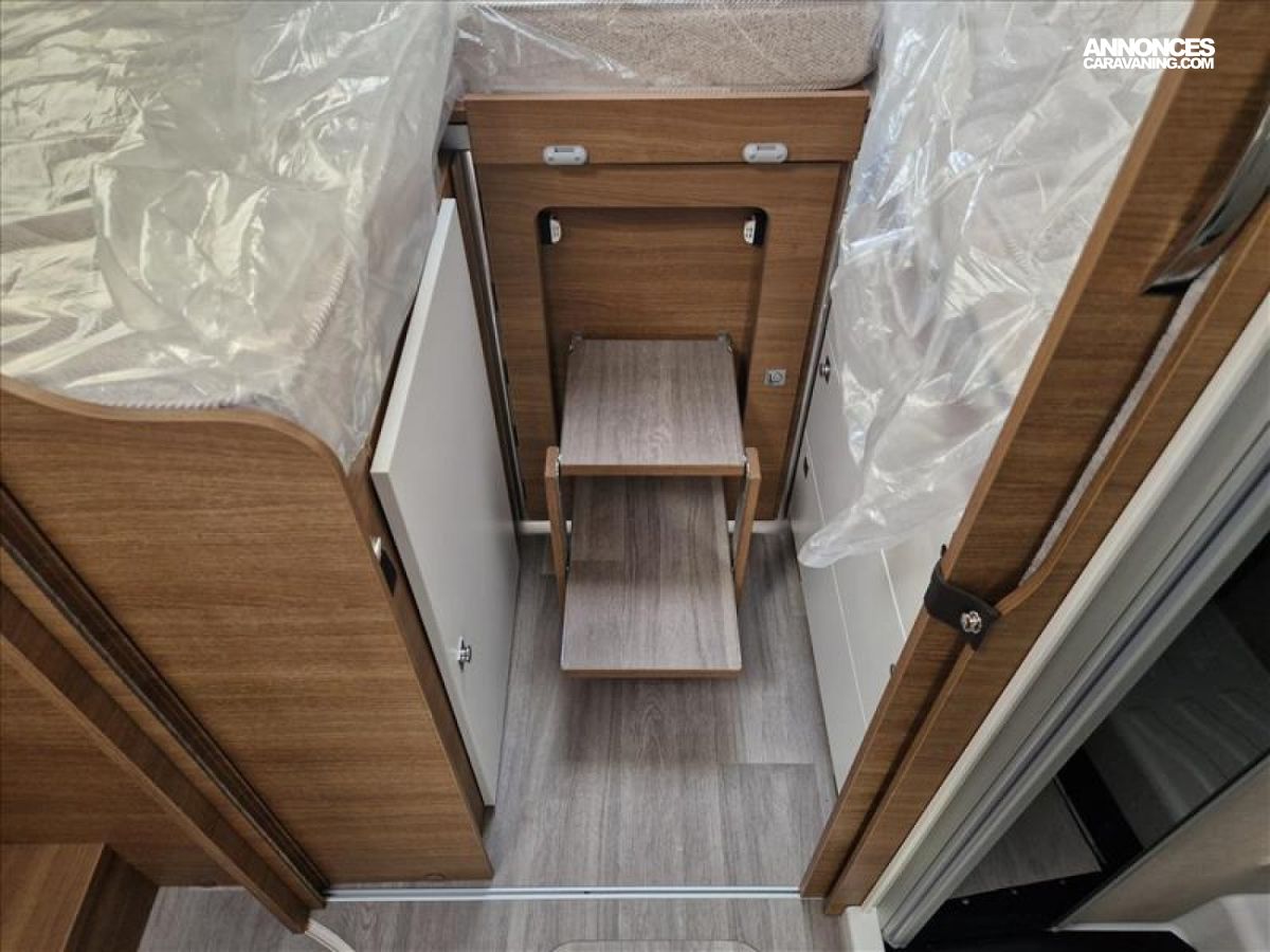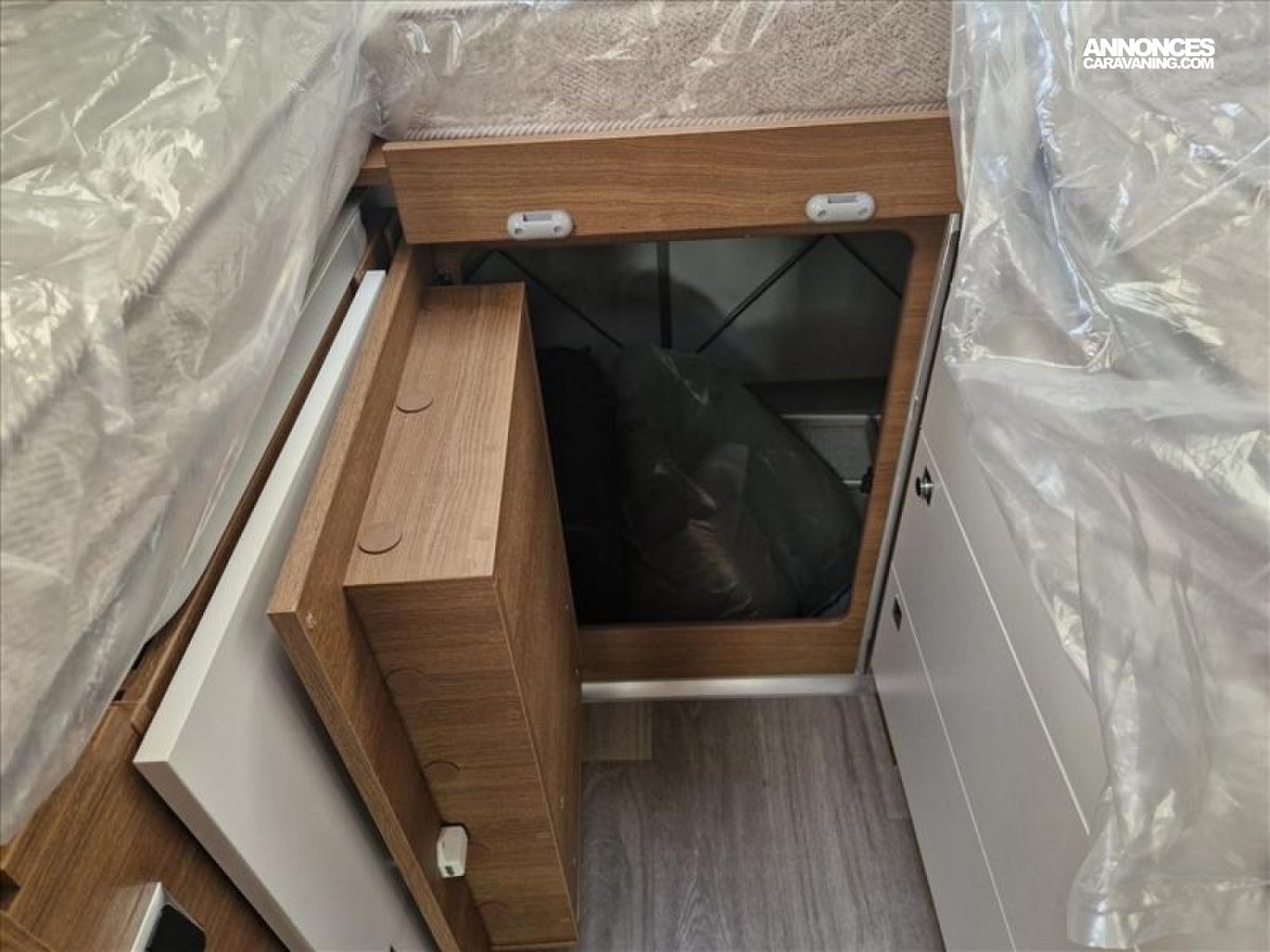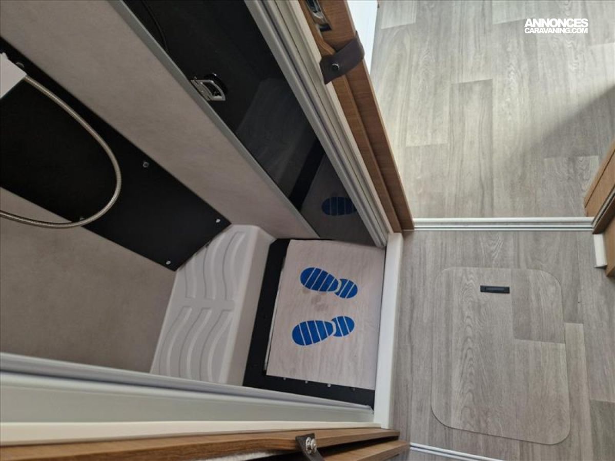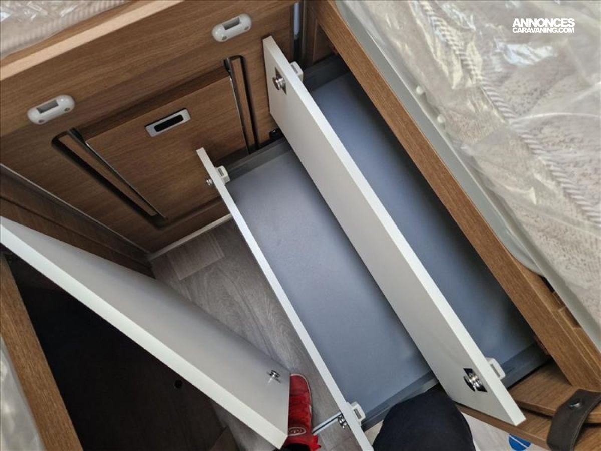 Combine chauffage / chauffe-eau gaz - 4000 W, Éclairage direct placards extérieur + intérieur LED, Éclairage d'ambiance placards supérieur + inférieur LED, Lit de pavillon électrique 2 places max 230 kg, Isofix sur sièges de salle à manger, Nouveau réfrigérateur à compression de 150 litres, Lits jumeaux transformables en lit de 170x210 cm, Grand garage avec 2 portillons et serrures type automobile, Haut-parleurs en cellule, Nouvelle porte de cellule électrique XL 2 points, fermeture