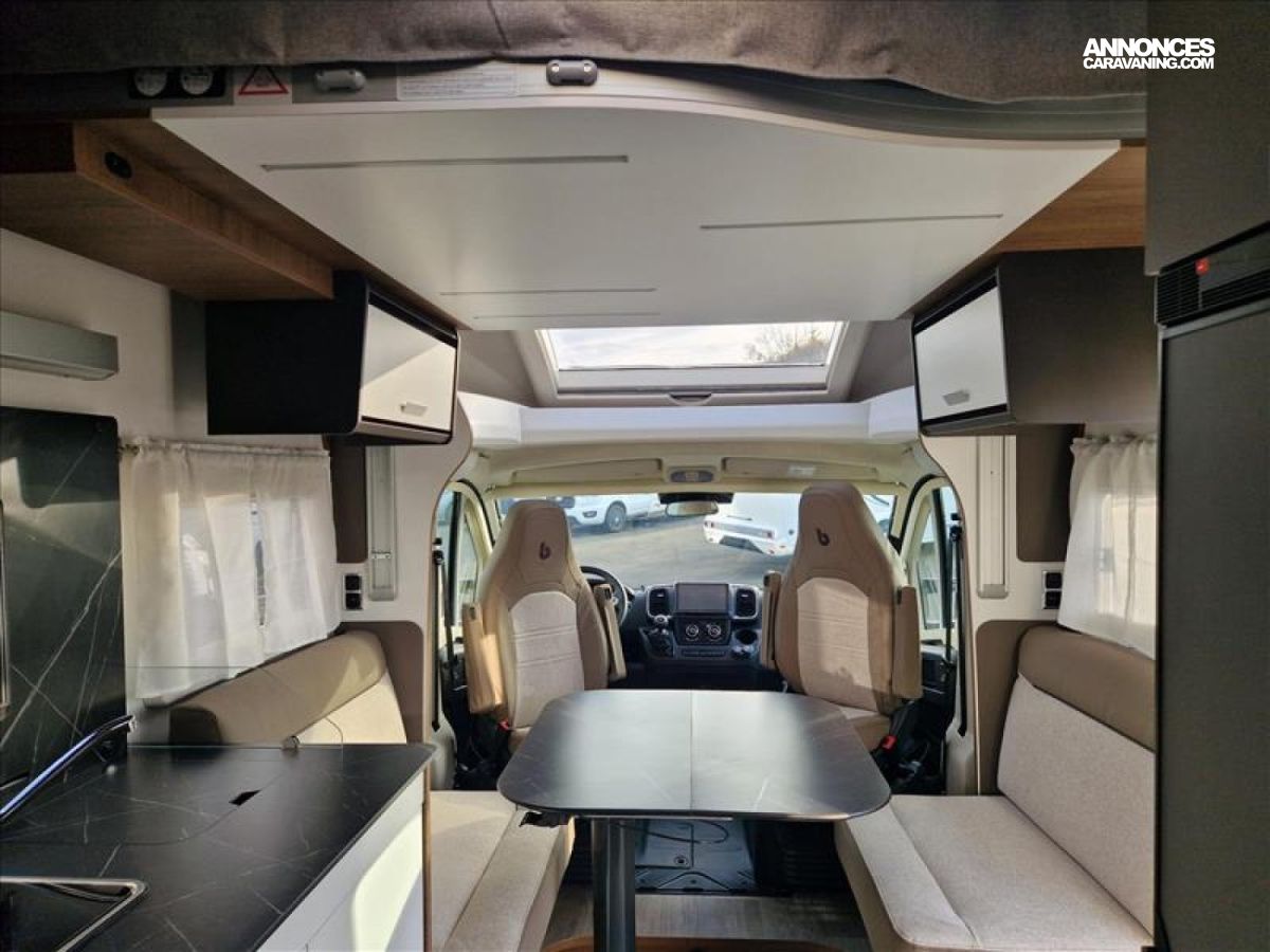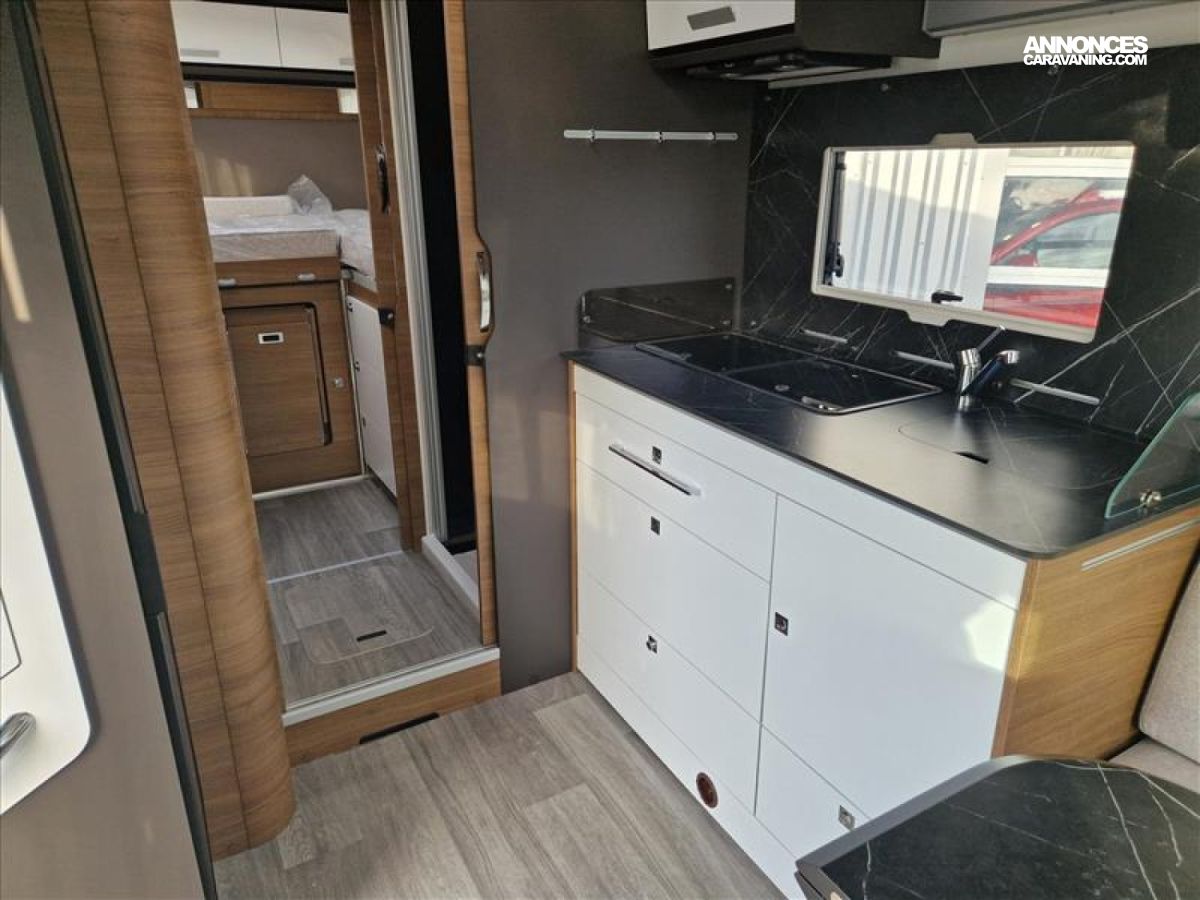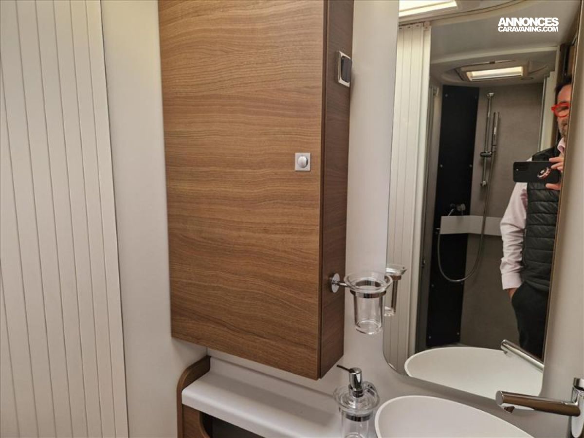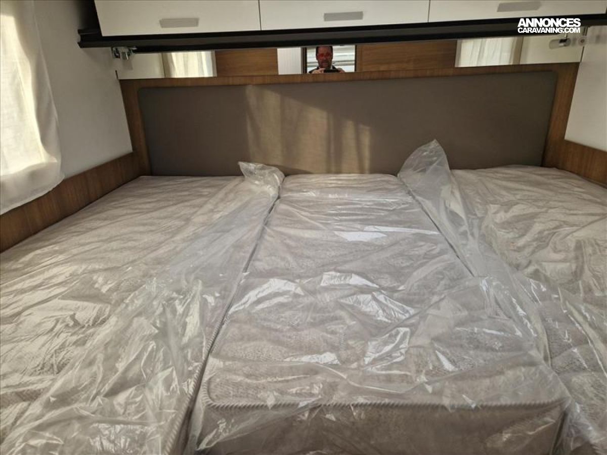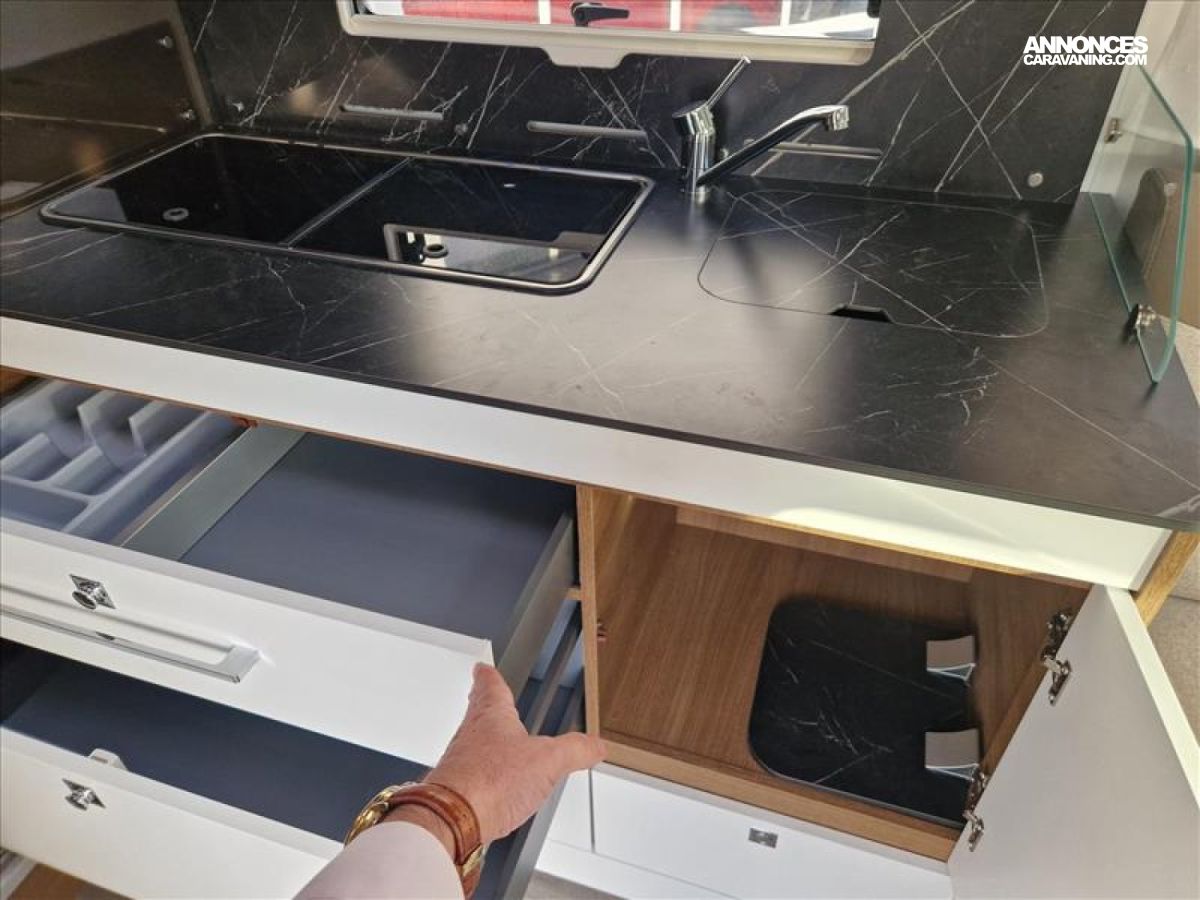 Combine chauffage / chauffe-eau gaz - 4000 W, Éclairage direct placards extérieur + intérieur LED, Éclairage d'ambiance placards supérieur + inférieur LED, Lit de pavillon électrique 2 places max 230 kg, Isofix sur sièges de salle à manger, Nouveau réfrigérateur à compression de 150 litres, Lits jumeaux transformables en lit de 170x210 cm, Grand garage avec 2 portillons et serrures type automobile, Haut-parleurs en cellule, Nouvelle porte de cellule électrique XL 2 points, fermeture