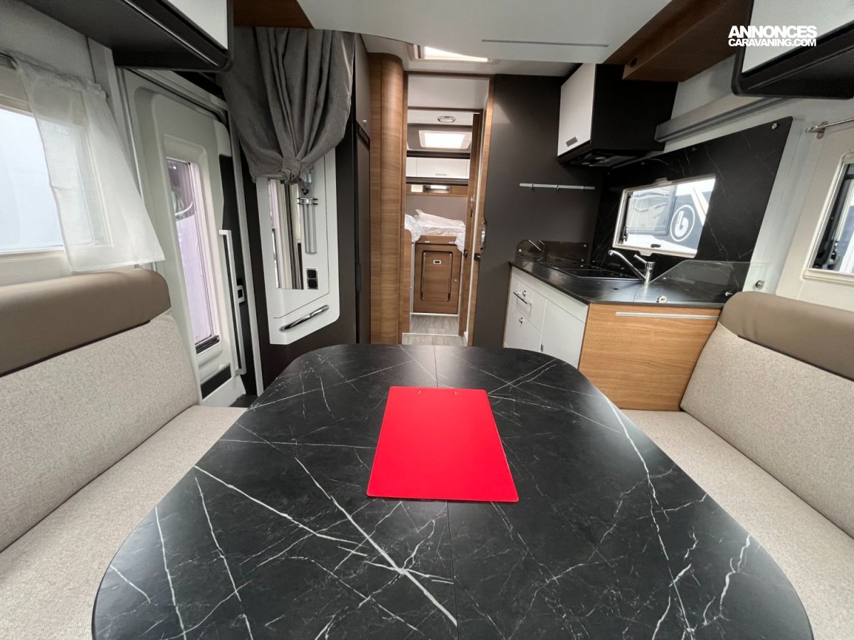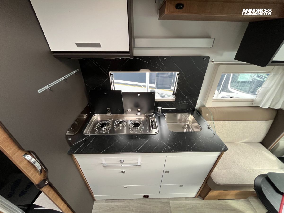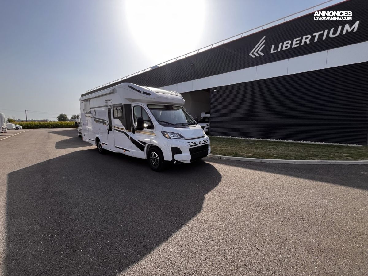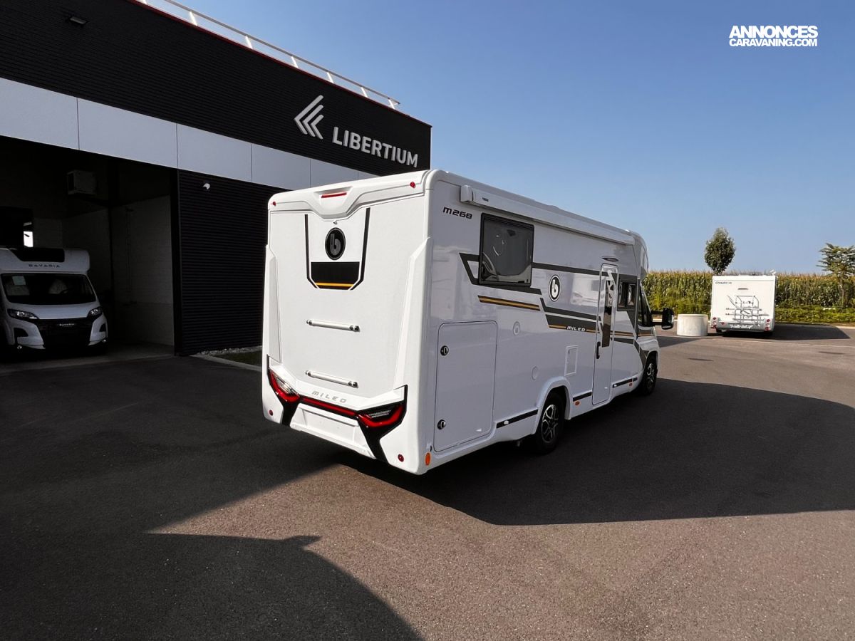Le Benimar Mileo 268 2025 (˜ 7,38 m × 2,30 m × 2,89 m) repose sur un châssis Fiat Ducato 2.2 L 140 ch, manuel. Il accueille 4 places carte grise et 4 couchages, avec des lits jumeaux arrière pour un sommeil confortable. Il séduit par son grand salon face-à-face, son lit de pavillon électrique, sa cuisine complète, ainsi que des équipements pratiques comme le toit ouvrant panoramique, la porte cellule XL, un réfrigérateur à compression 150 L et des sièges Isofix. Optionnel, le Pack Delivery ajoute un panneau solaire 200 W, un éclairage LED extérieur et des rideaux occultants.