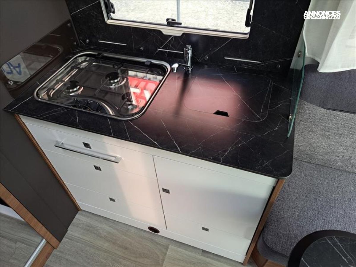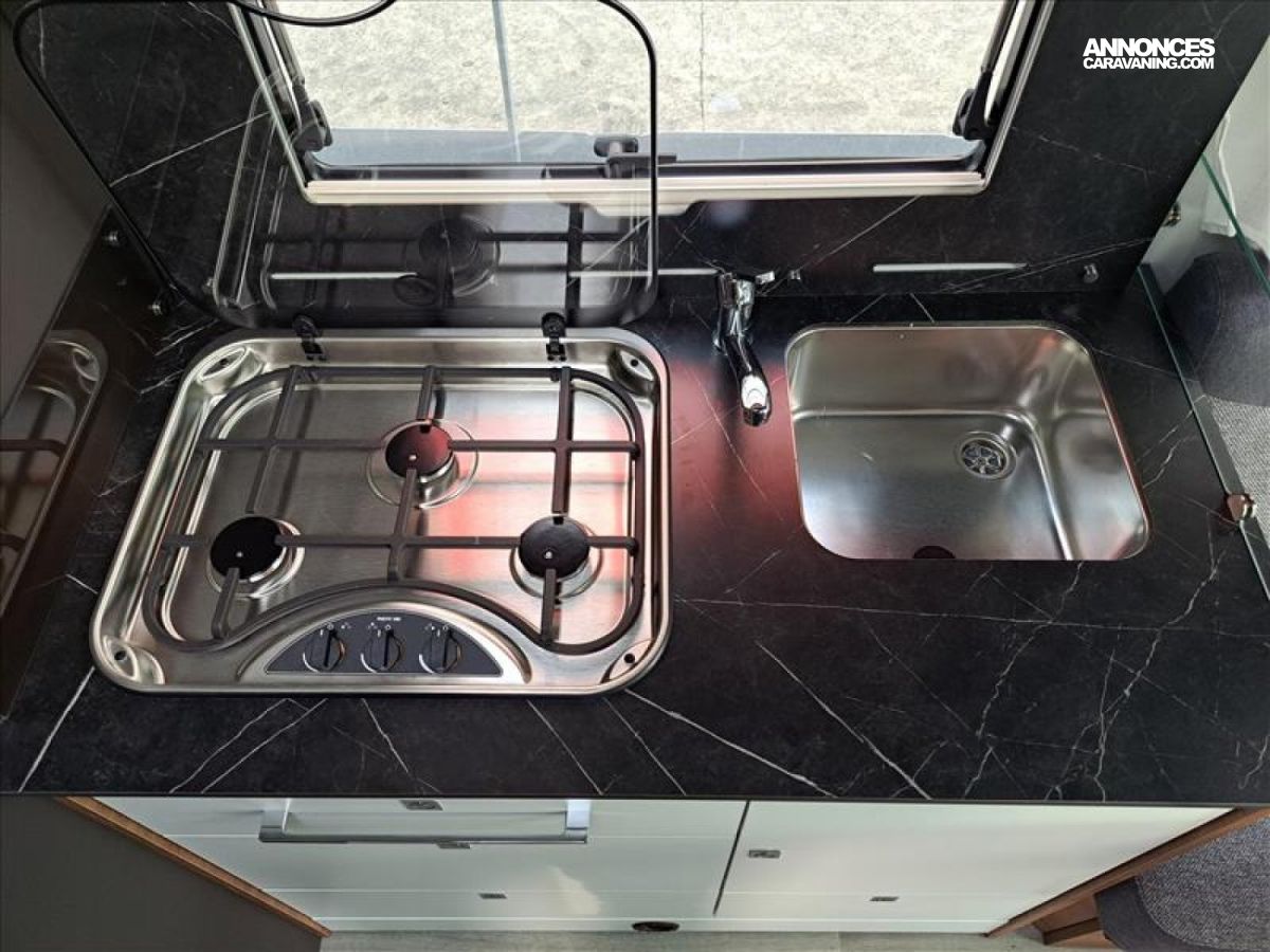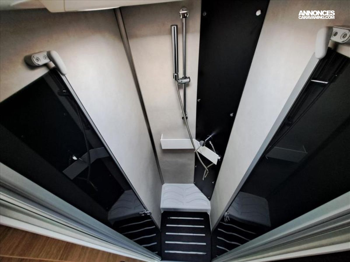 Phare antibrouillard avant, Pneus M+S, Porte cellule XL centralisé 2pts + moustiquaire + poubelle, Support Porte -Vélos, Support TV, Toit ouvrant panoramique cabine 71x105cm, Radar de recul, Combiné chauffage / chauffe-eau gaz 4000W, ISOFIX sur siège de salle à manger, Jantes alu 16"