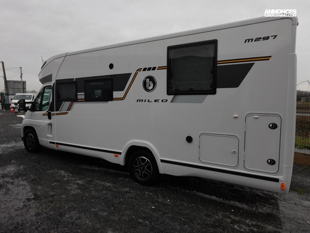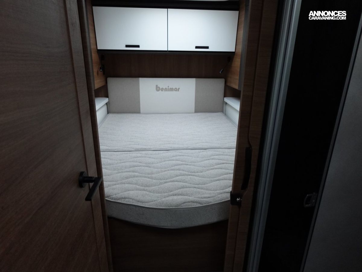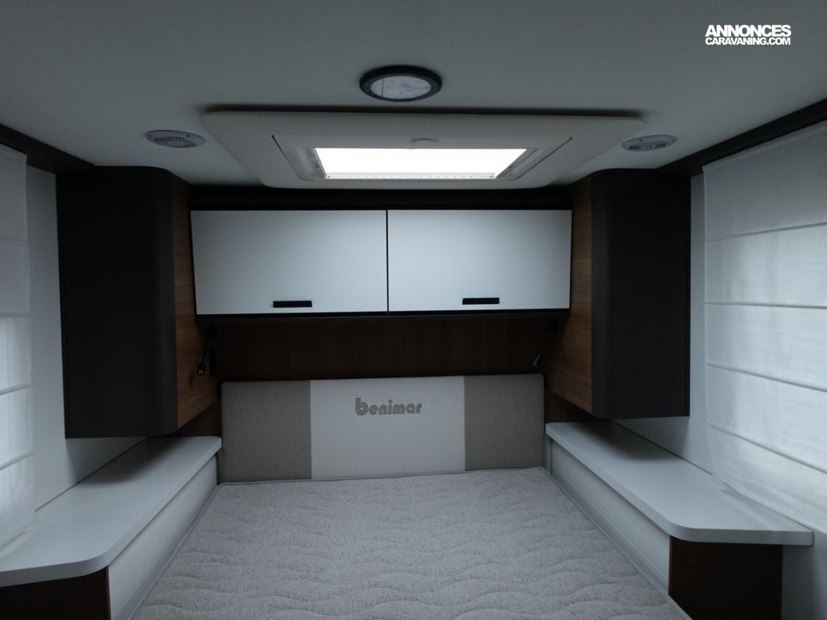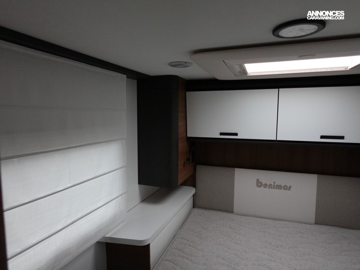 Magnifique profilé avec un lit central réglable en hauteur sur soute garage, une douche indépendante de l’espace WC, une cuisine avec de nombreux rangements, un lit de pavillon et un grand salon panoramique avec banquettes face/face.