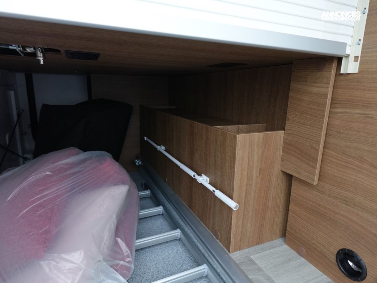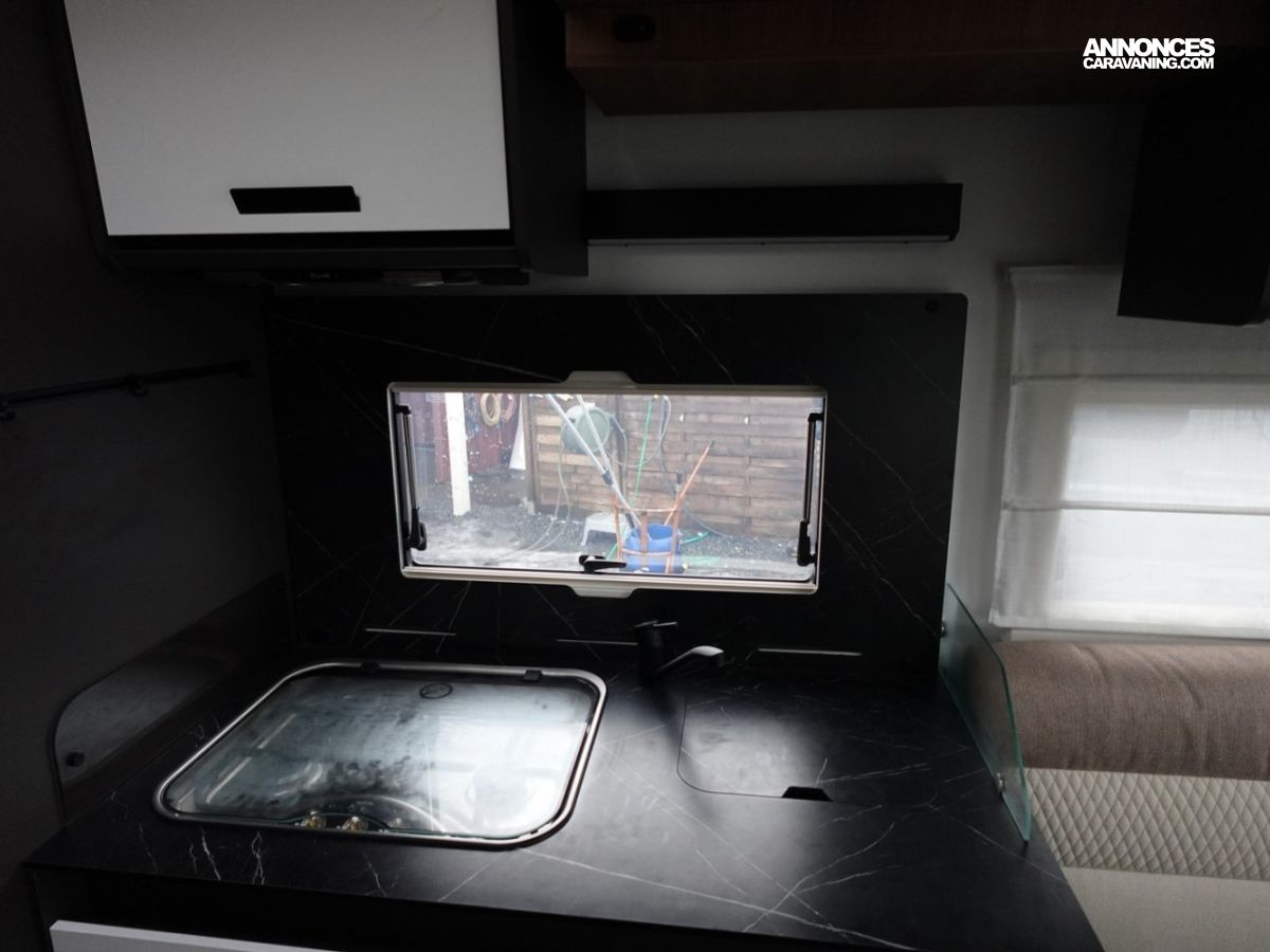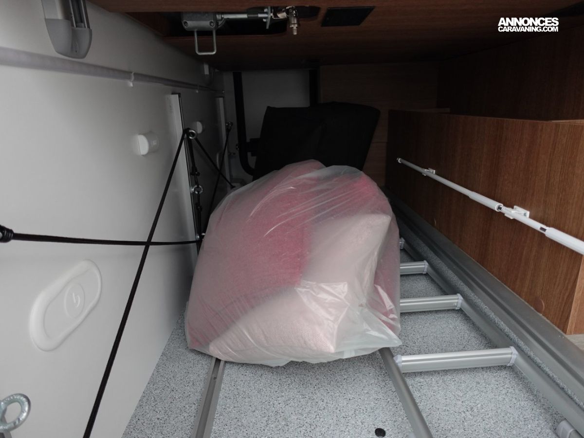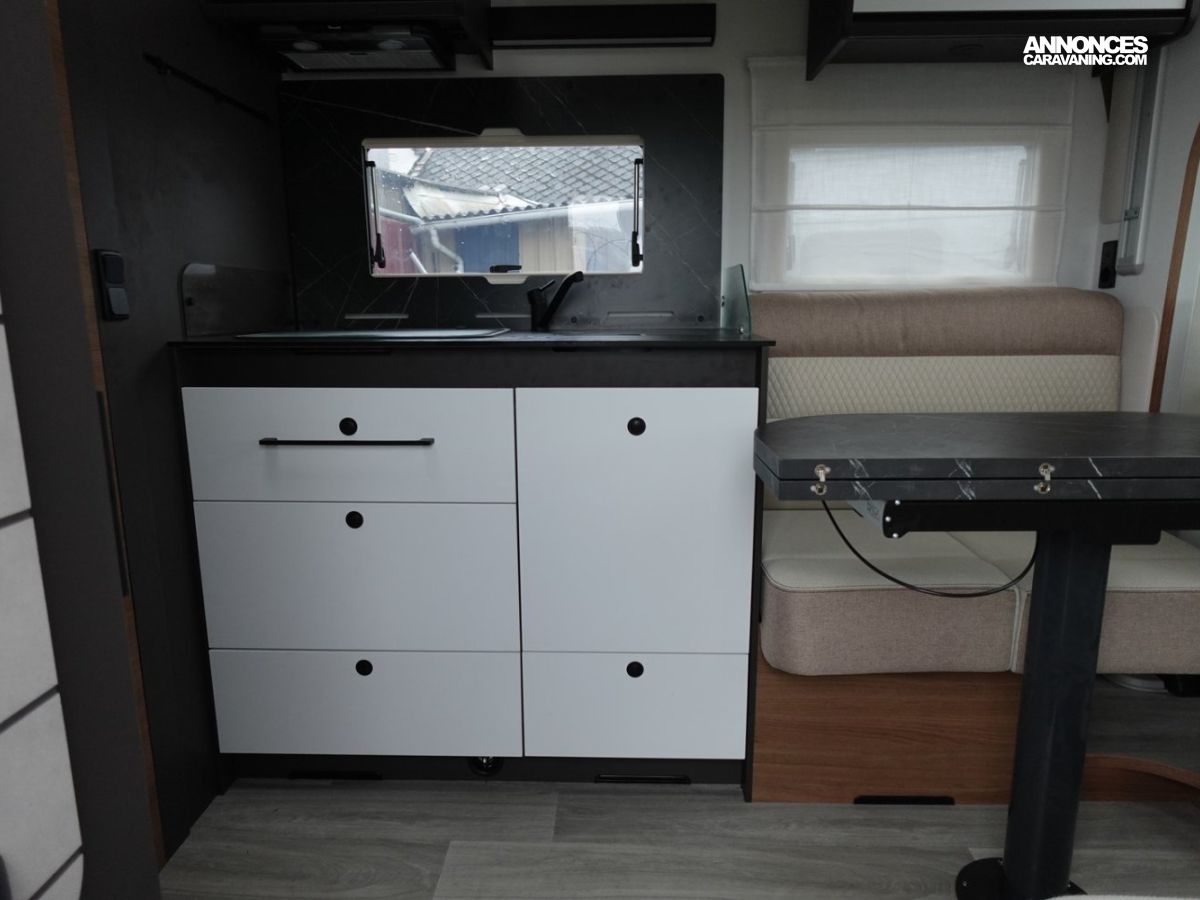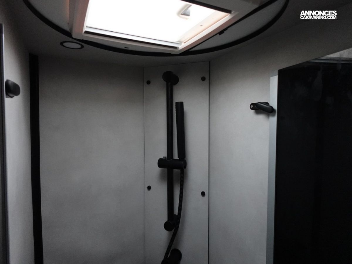 (Frein de stationnement électrique, Jantes en aluminium 16 pouces, Volant et pommeau de levier de vitesse gainés cuir, Radars de recul, Porte cellule XL centralisée avec 2 points + fenêtre + poubelle + moustiquaire, Radio DAB Pioneer avec écran tactile 9 pouces, Caméra de recul, Panneau solaire 200 W, Lumière extérieur LED, Rideaux occultation vitres cabine, Housses de sièges cabine, Skyview, Eclairage intérieur placard, Système de fixation bagages et rails dans le garage, Pneus 4 saisons, Isifix, Stores vénitien, Pré-installation 2ème batterie, Marchepied cellule électrique)