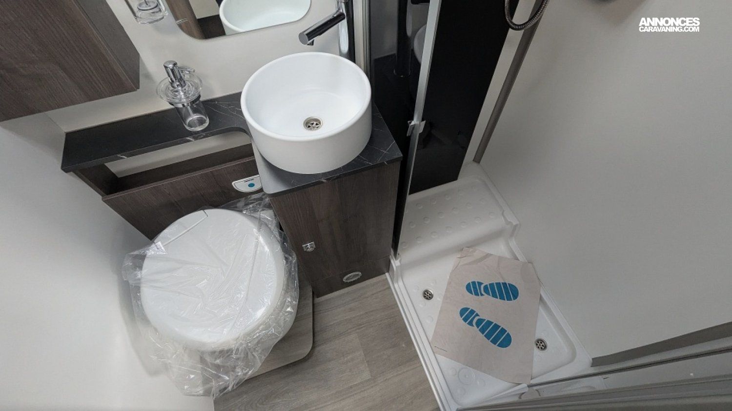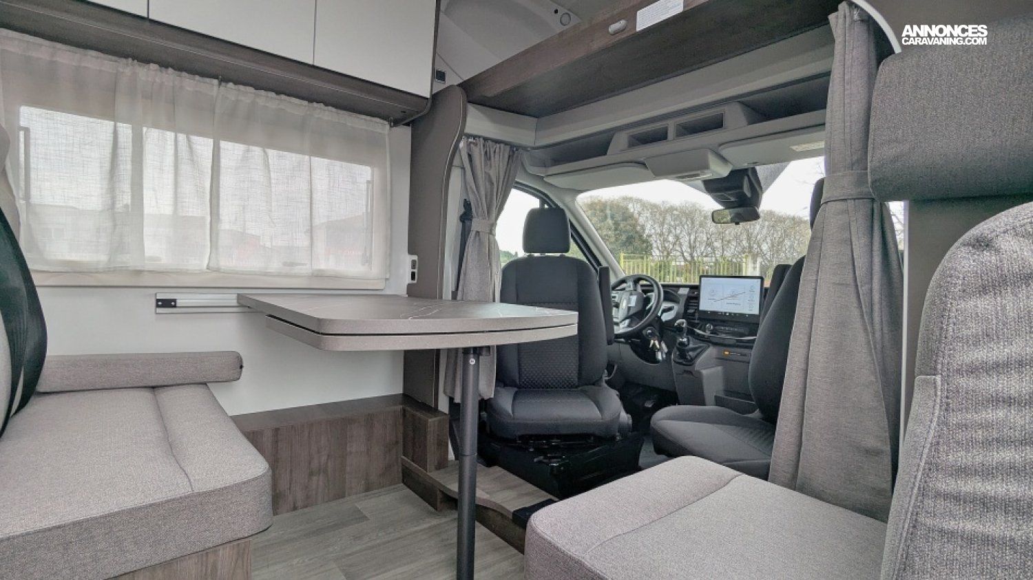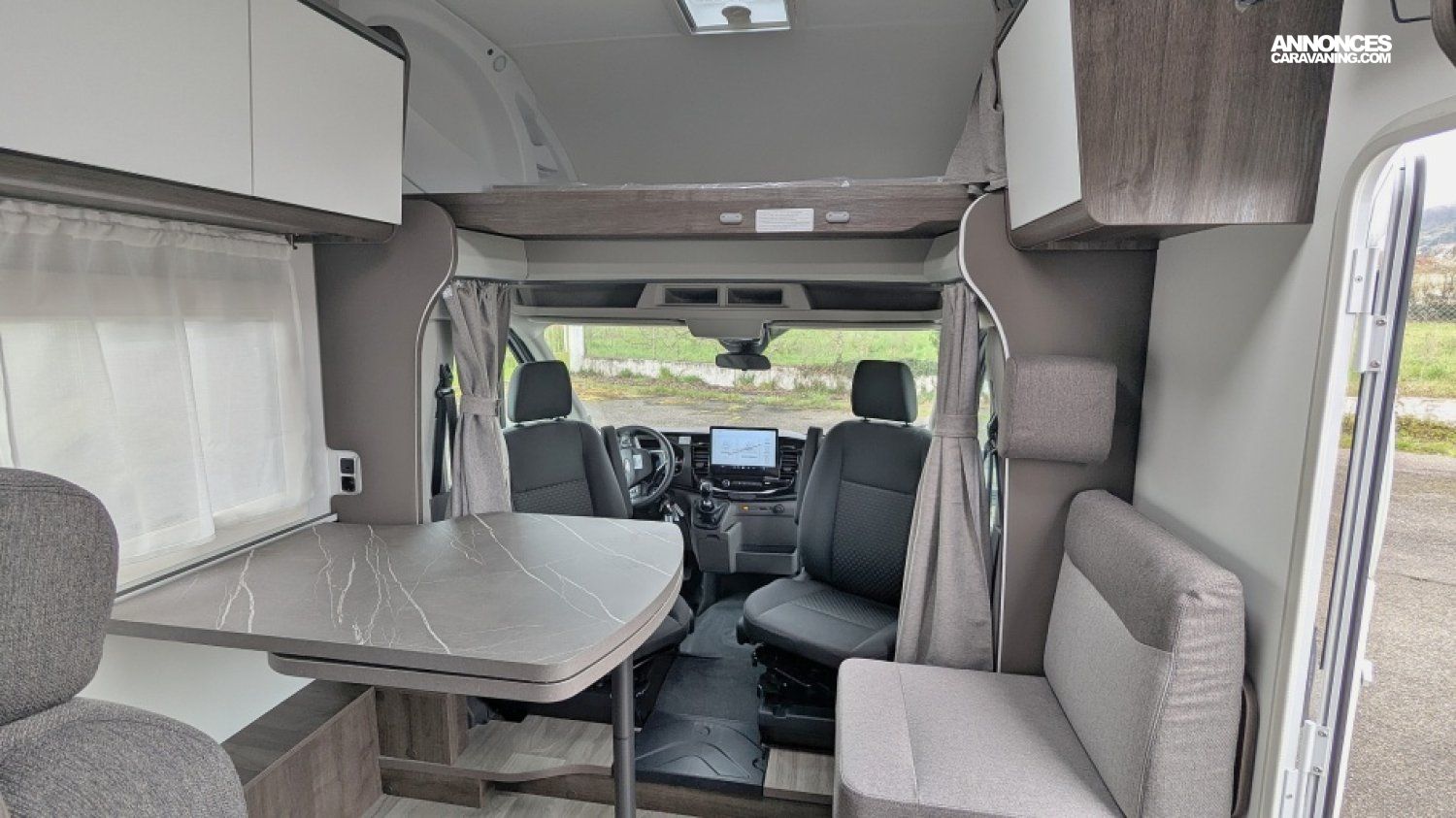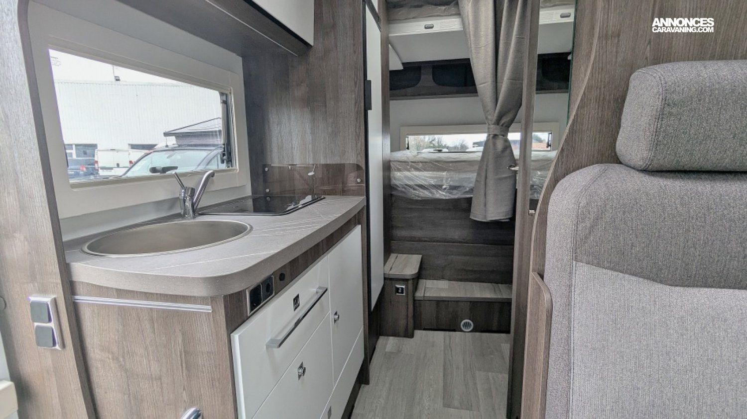 Atouts inclus : Carrosserie polyester, TECHNOLOGIE SANS BOIS ISB (inserts polyuréthane + XPS), Fenêtres double vitrage D-Lux affleurantes, Réfrigérateur/congélateur (140l) AES+ tiroir 9 bouteilles 1,5l, Chauffage 4000 w, Fenêtre et moustiquaire sur porte cellule, Lit pavillon électrique, ABS, ESP, Traction +, airbag conducteur et passager, régulateur/limiteur de vitesse, sièges conducteur et passager tournants, accoudoirs réglables, volant gainé cuir et réglable, Phares antibrouillard, rétroviseurs électriques et dégivrants, frein à main électrique, systèmes avancés d'aide à la conduite, contrôle de la pression des pneus, climatisation cabine automatique, combiné multimédia DAB Android/Apple Carplay 12" avec caméra de recul et commandes tableau de bord semi-numériques, radar de recul, sièges isofix,