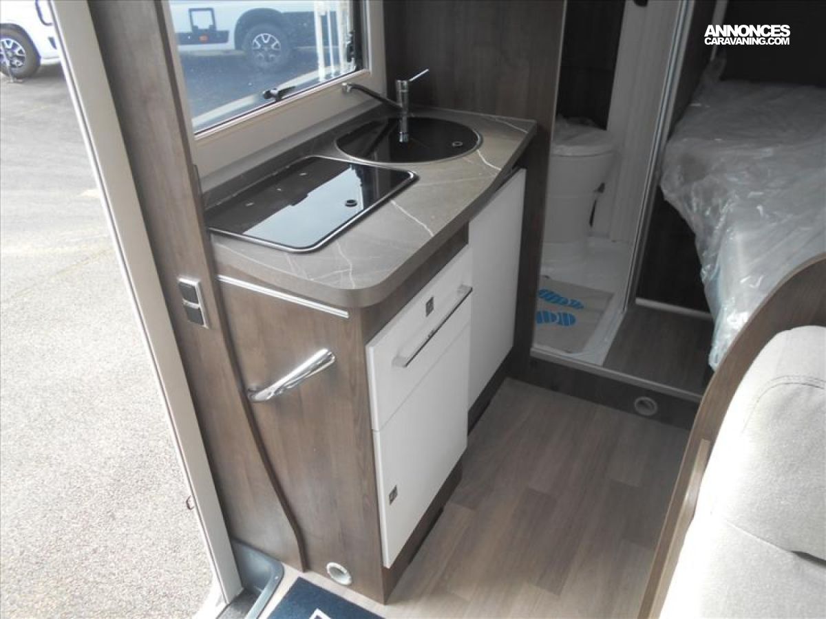 Garage avec capacité pour des vélos pliants, ABS-ESP, Traction PLus, Toit ouvrant panoramique cabine avec store et moustiquaire, Fermeture centralisée à télécommande, Régukateur et limiteur de vitesse, climatisation cabine, Tiroirs à fermeture ralentie, prise USB tête de lit, Rétroiviseurs électriques dégivrants, vitres sélectriques, Rallonge du plan de travail, Fenêtres double vitrage Dometic, Isofix sur dièges de salle a manger, Évier et réchaud 2 feux encastrées avec allumage electrique, Garnd réfrigérateur/congélateur 140L, AES avec tiroir 9 bouteilles 1.5L