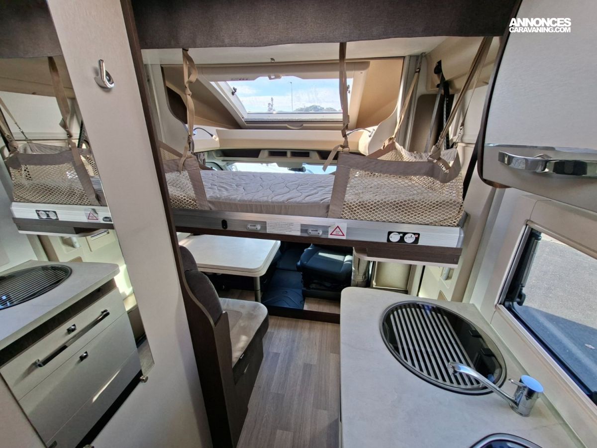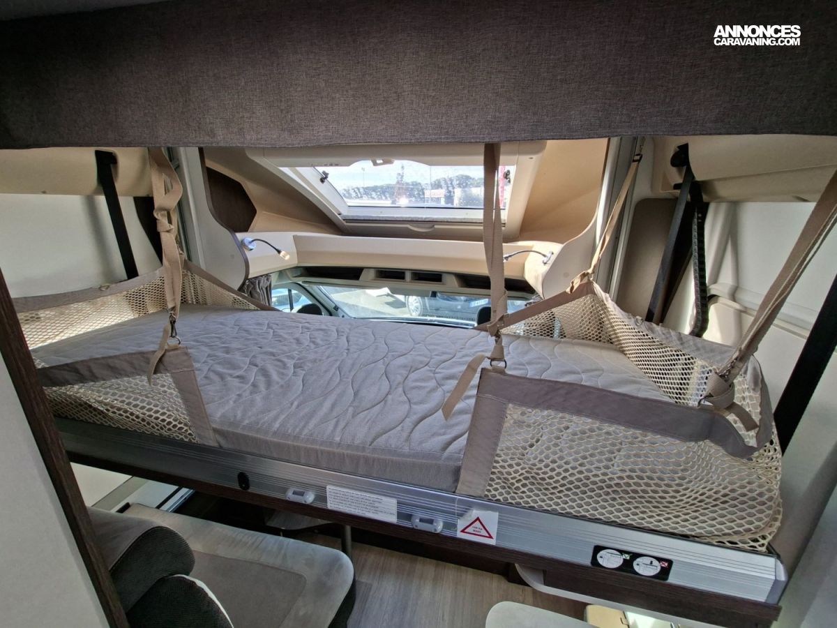 STORE EXTERIEUR, PANNEAU SOLAIRE 140W, ANTENNE OMNIDIRECTIONNELLE, TV, RADARS DE RECUL, LIT AR REGLABLE EN HAUTEUR, AUTO RADIO BLUETOOTH, COUCHAGE DINETTE 1 PLACE, TOIT PANORAMIQUE OUVRANT, STORES CABINE REMIS, CHAUFFAGE WEBASTO 400 W (GAZOIL), REFRIGERATEUR AES 140 L, LIT PAVILLON 1 PLACE