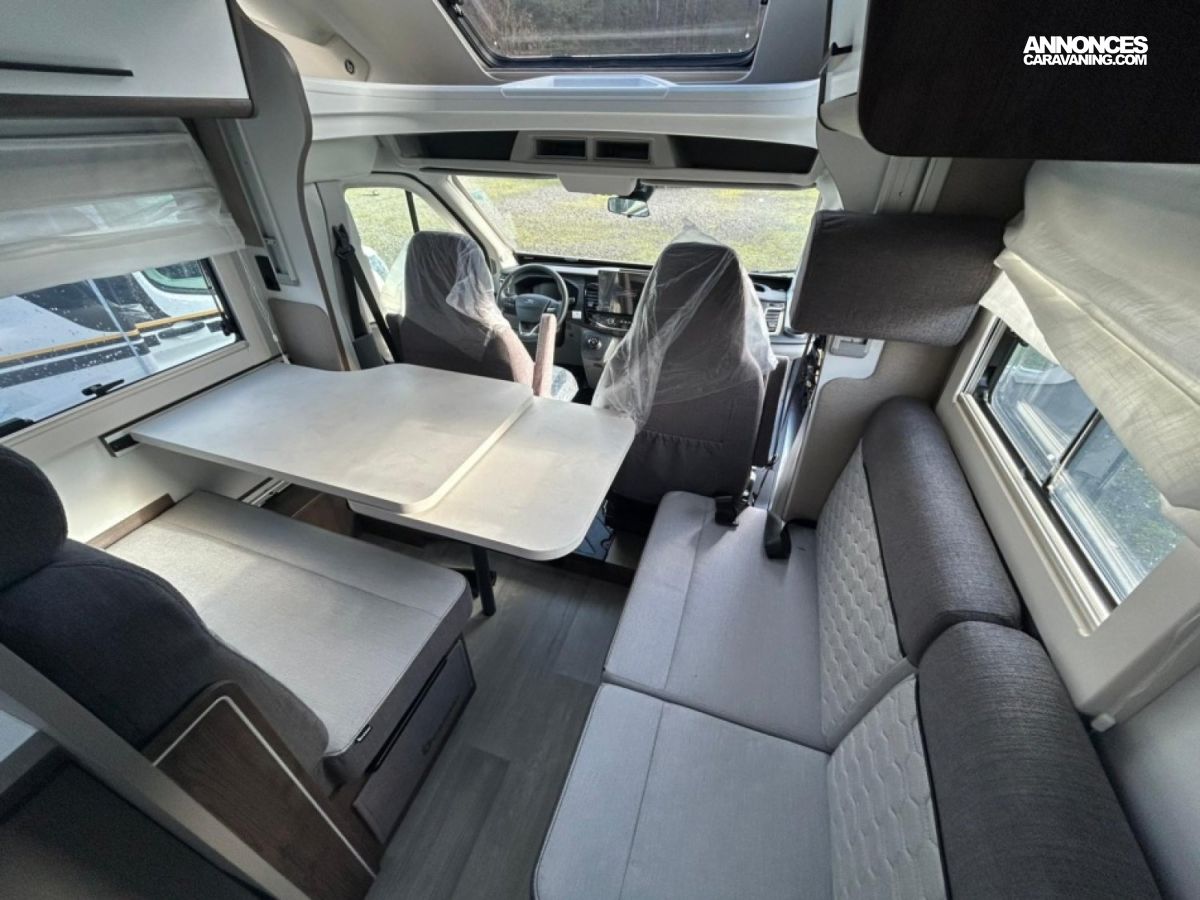 Idéal pour un couple ou une famille, ce profilé 4 places offre confort et praticité : lit jumeaux à l'arrière transformable en lit XXL et lit pavillon tout confort pour 2 adultes ou 2 enfants