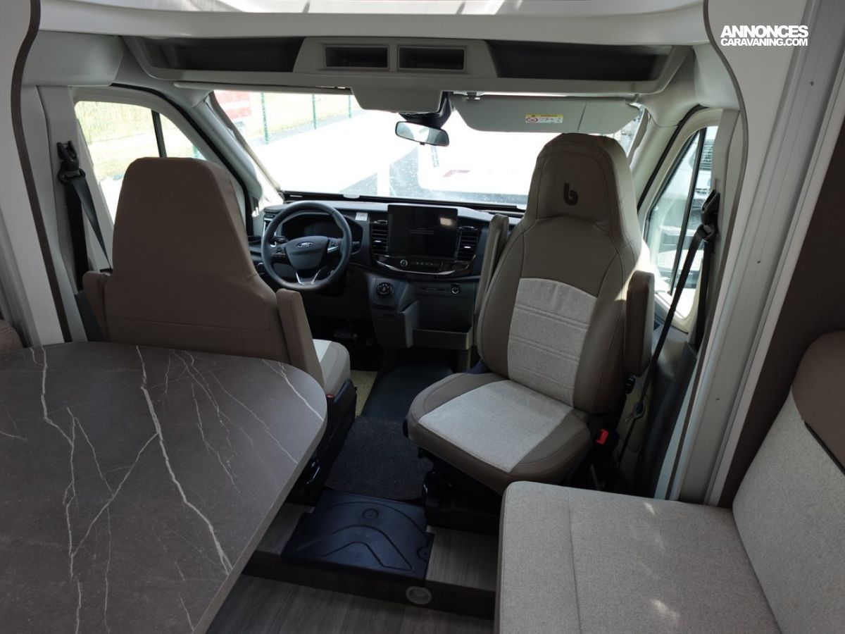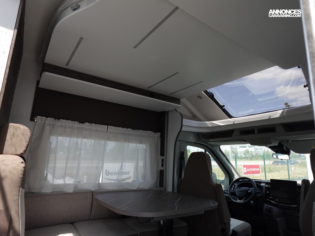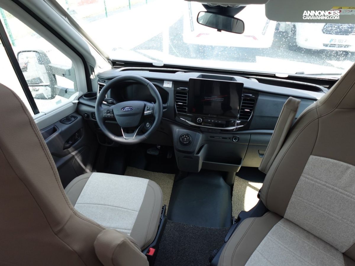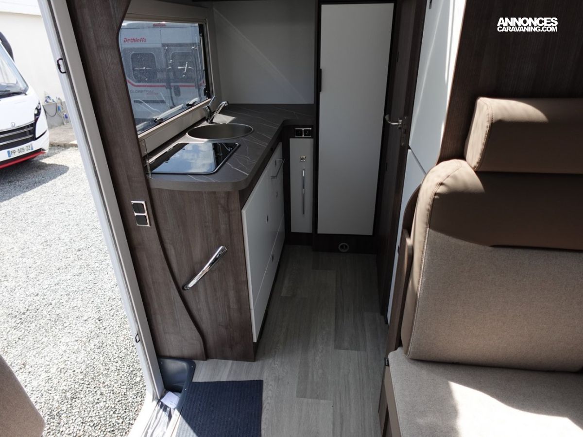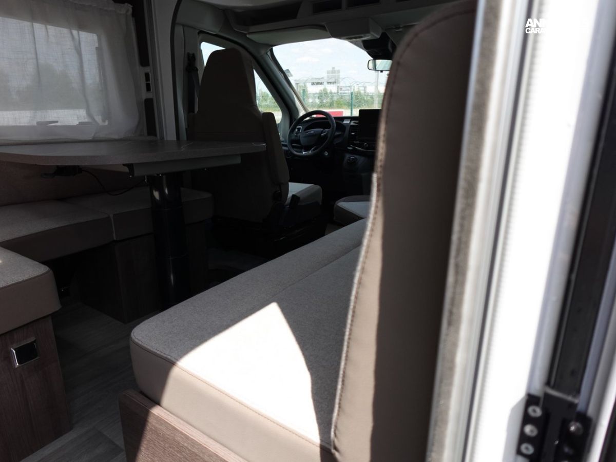 Magnifique petit profilé de moins de 6 mètres comprenant un grand salon avant panoramique avec banquette face/face, une douche séparée, un lit de pavillon électrique et une cuisine avec de nombreux rangements.