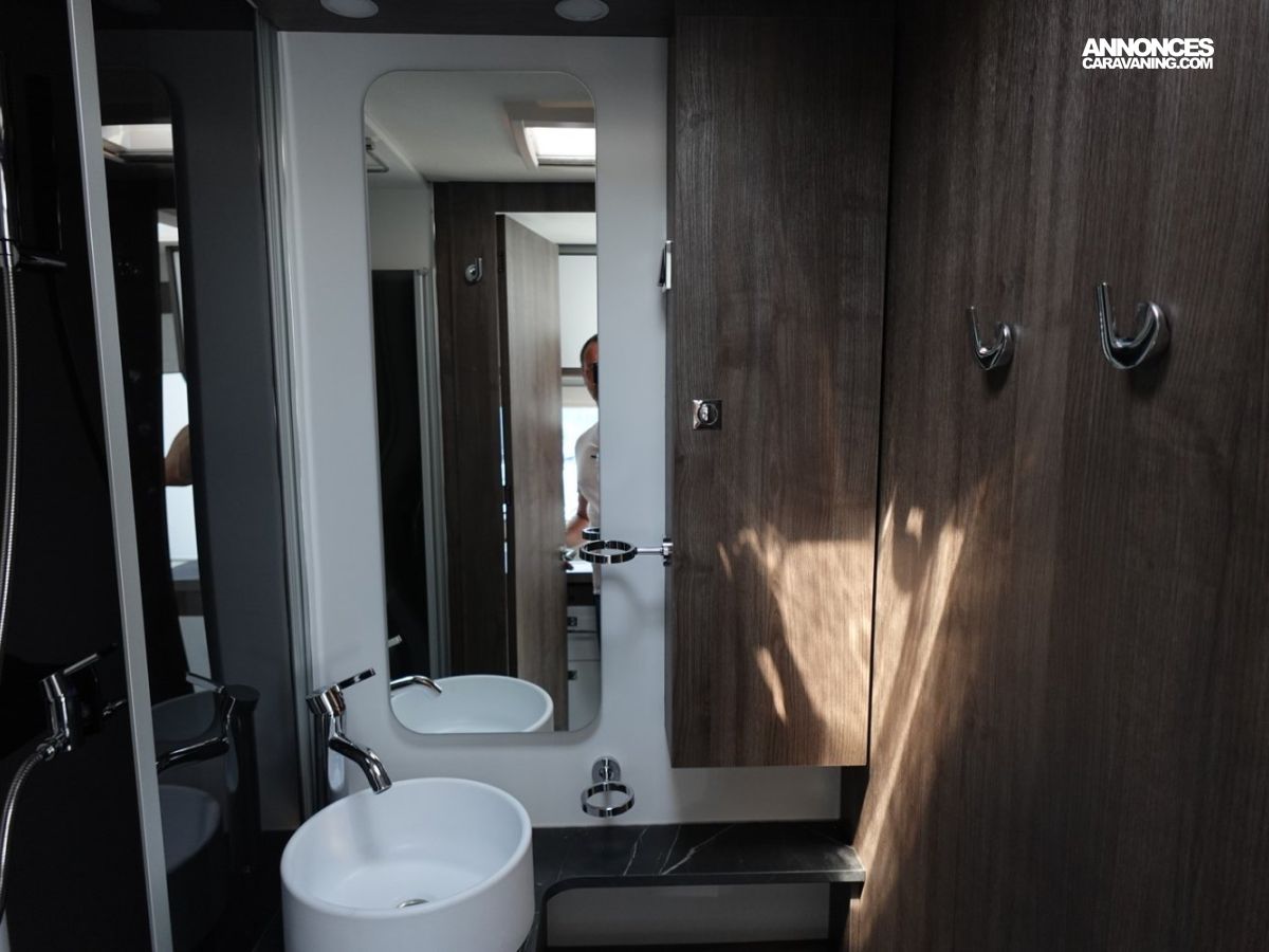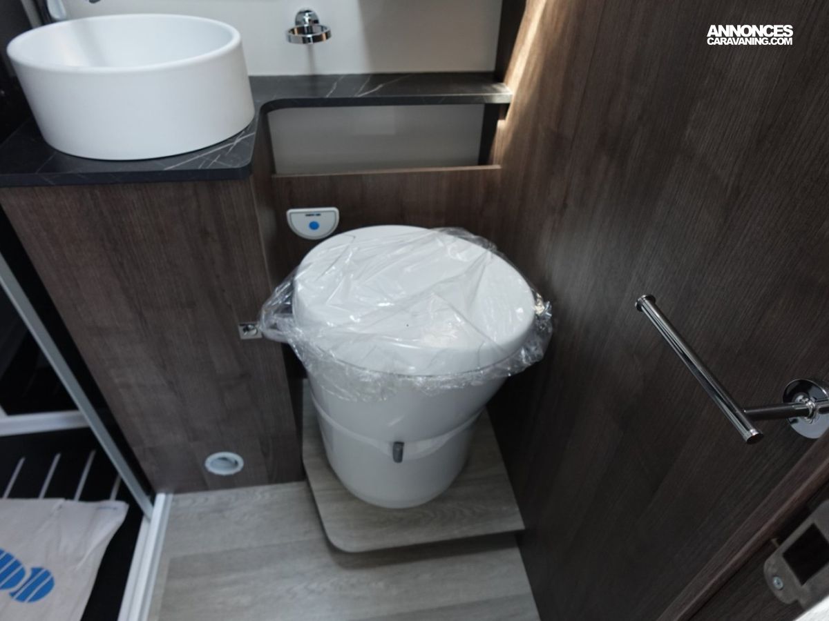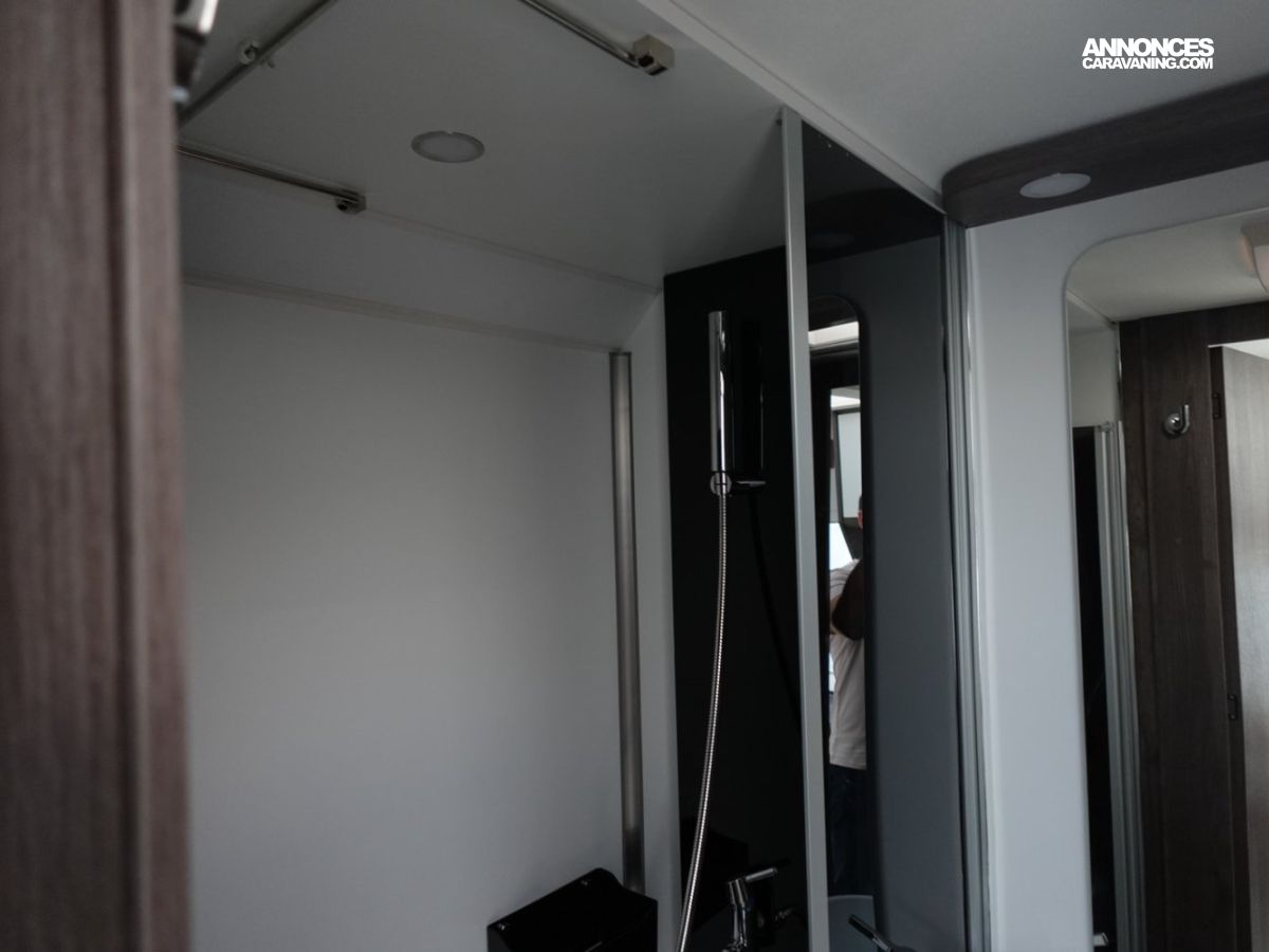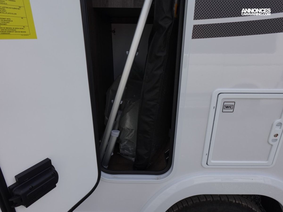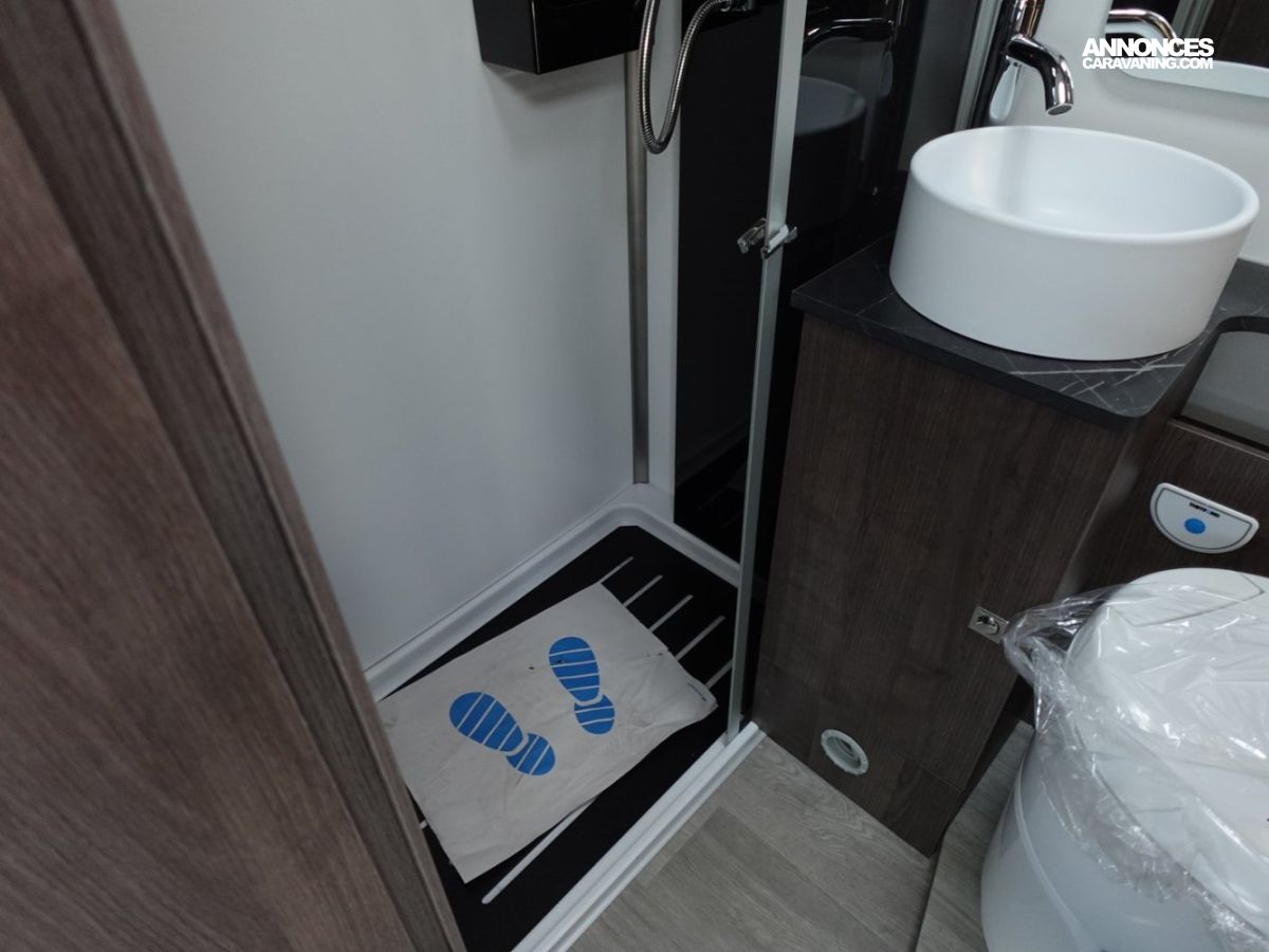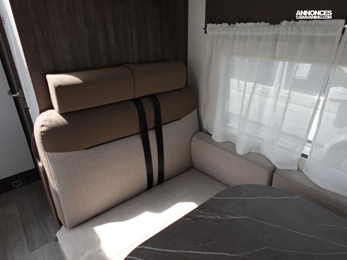 Magnifique petit profilé de moins de 6 mètres comprenant un grand salon avant panoramique avec banquette face/face, une douche séparée, un lit de pavillon électrique et une cuisine avec de nombreux rangements.