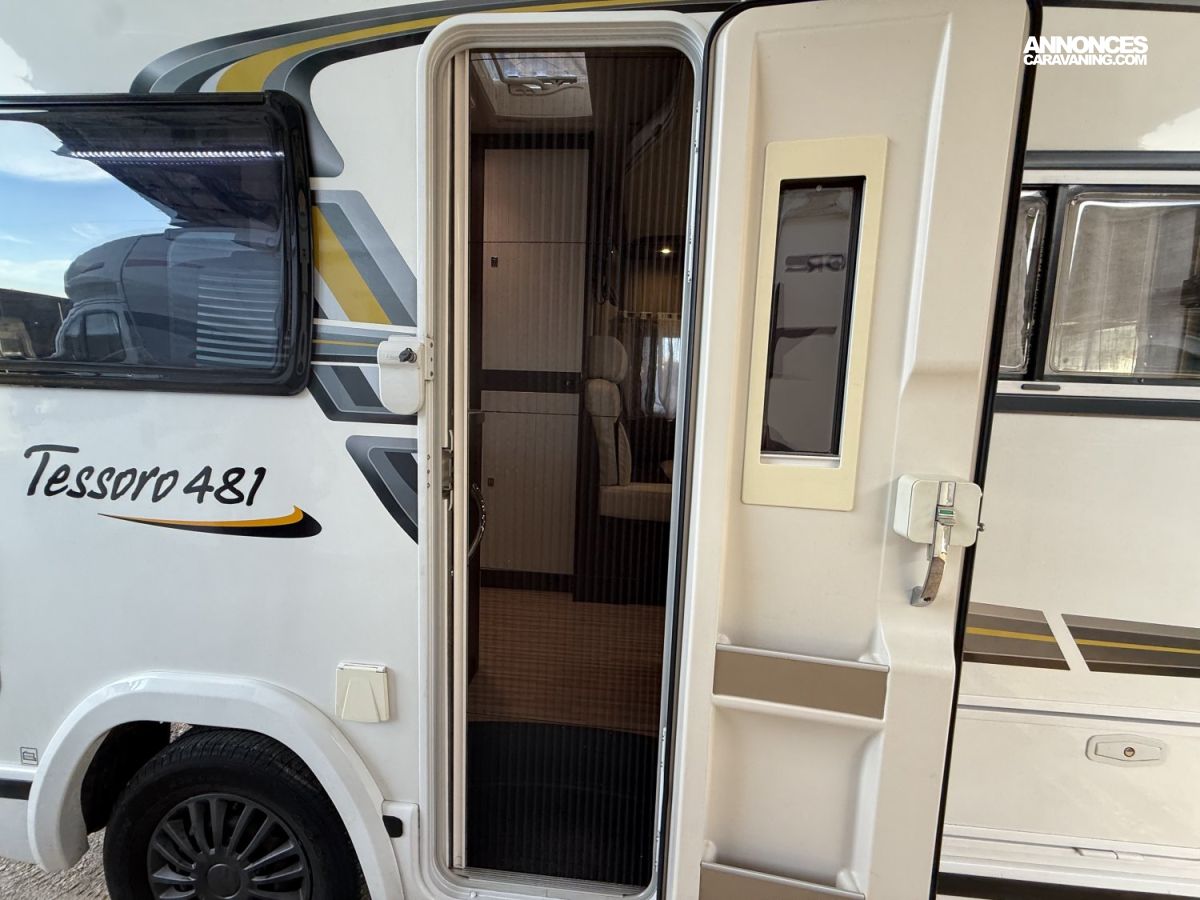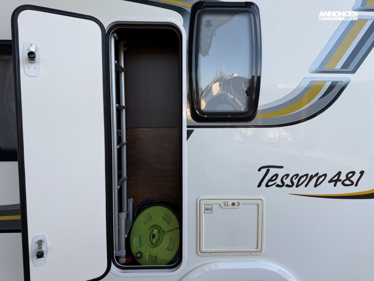 Côté châssis et sécurité, le Tessoro 481 dispose d’un équipement très complet de série : ABS, ESP, régulateur de vitesse, sièges cabine pivotants type Captain Chair, volant gainé cuir, vitres et rétroviseurs électriques, climatisation cabine, ainsi que de nombreux équipements de confort supplémentaires.