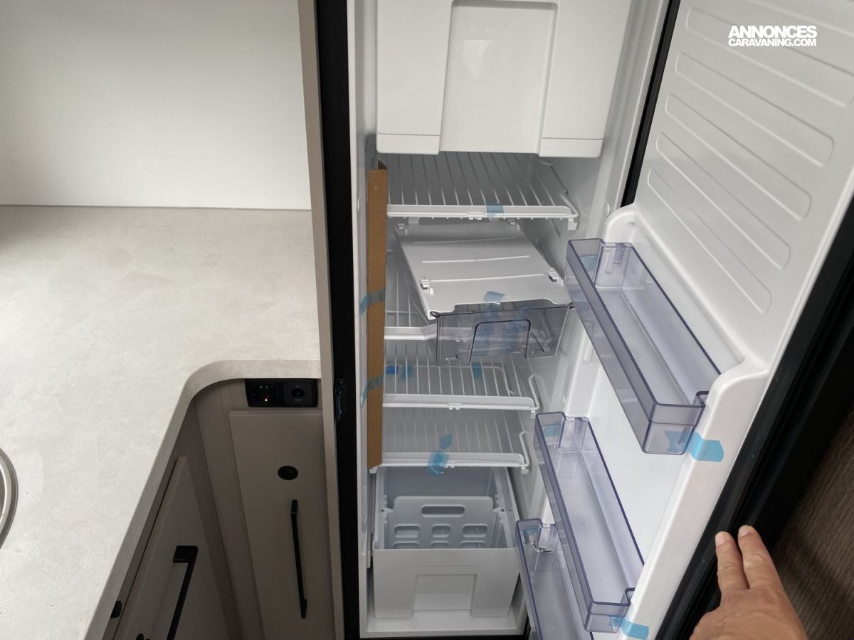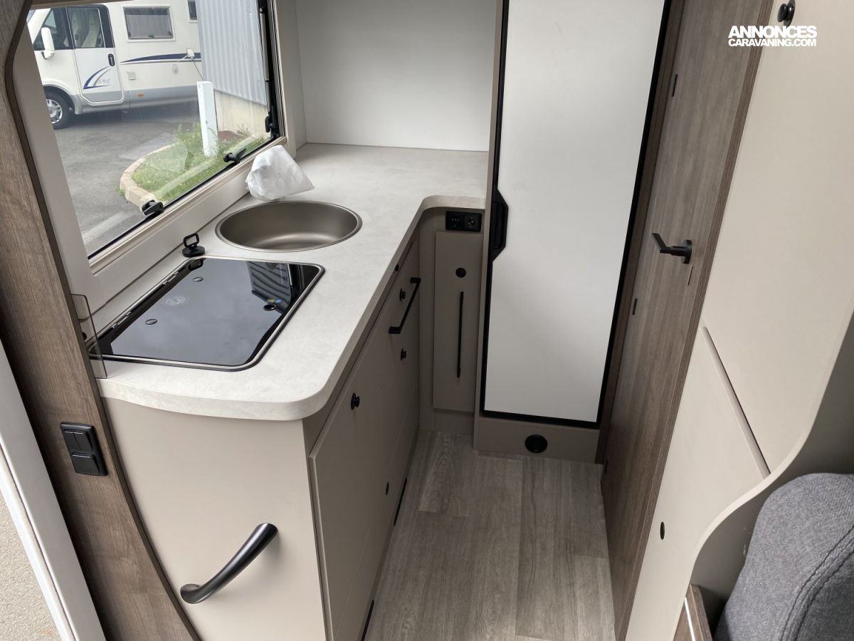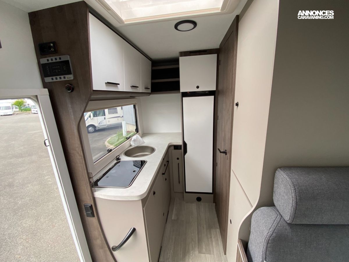 Espace pour bouteilles de gaz :1, Chauffe-eau gaz, Chaudière utilisant carburant véhicule Webasto - 4000 W, Prises 230 et 12 V dans le garage, Grand réfrigérateur / congélateur à compression 150 l, Porte cellule XL, ISOFIX sur sièges de salle à manger (Pack PLUS), Douche séparée, Grand salon en L, Pied de table électrique télescopique, Réfrigérateur à compression de 150 litres, Coffres sous le sofa et derrière l'armoire avec serrures